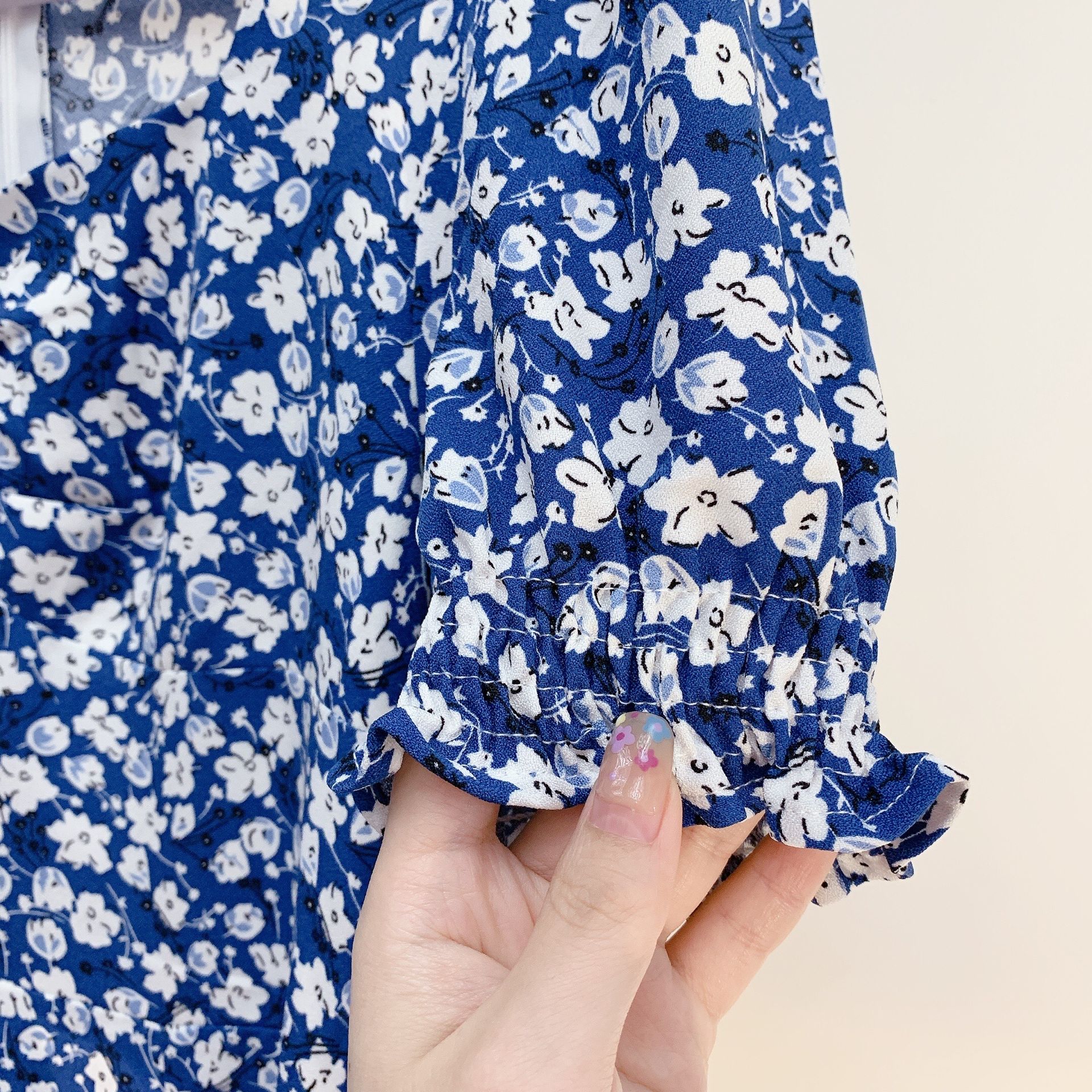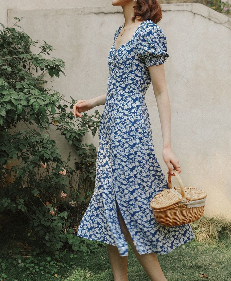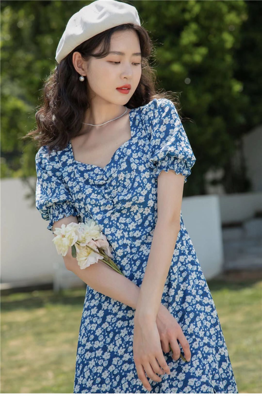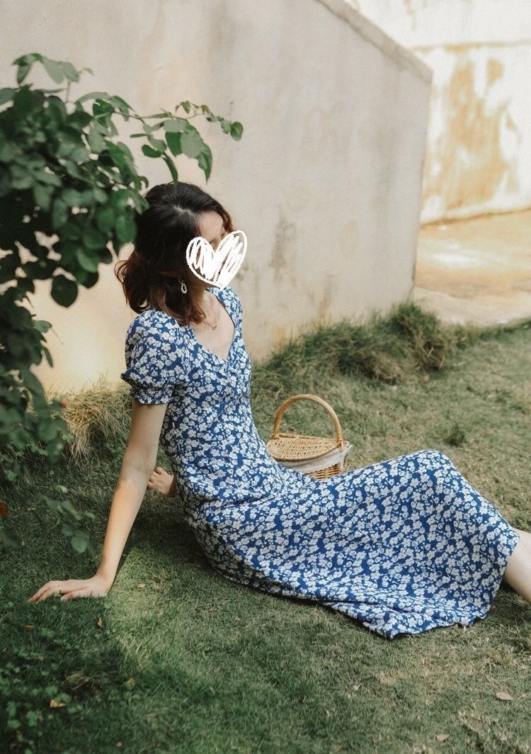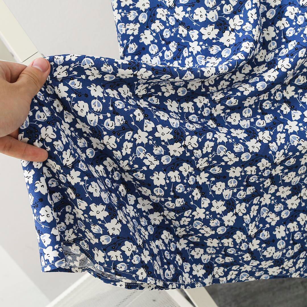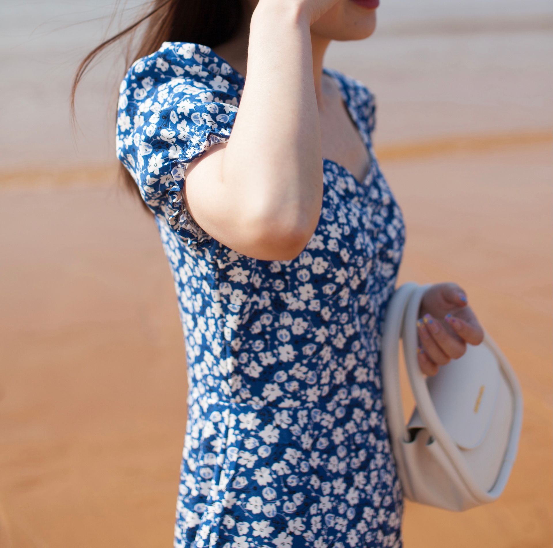 面料~进口高克重聚酯纤维面料,高密订纺,垂顺度极好,而且不易起褶,有质感有力量!蓝色碎花超级显白!典型的法式版型 搭配这个面料 真的绝!真的希望每个姑娘都拥有这么美好的裙裙~
