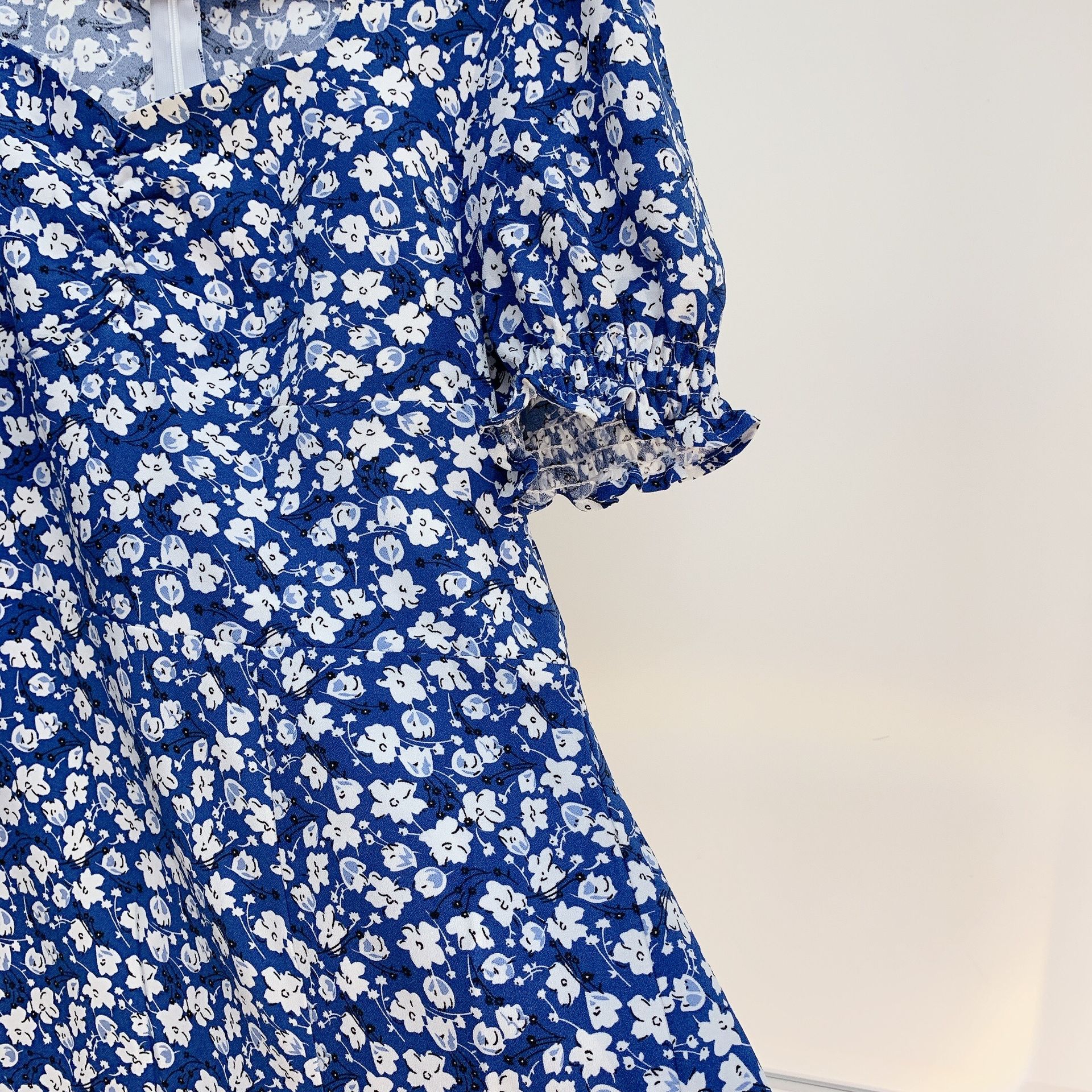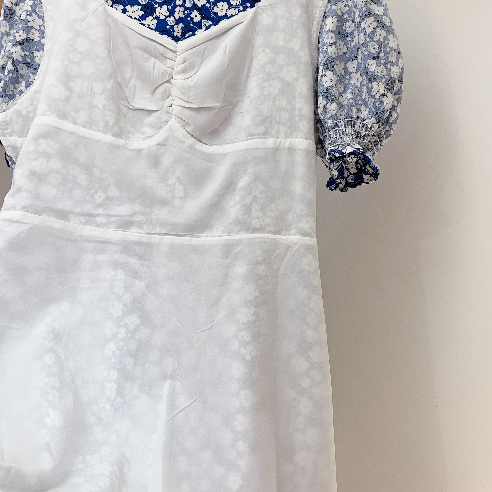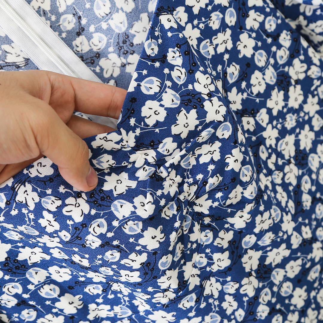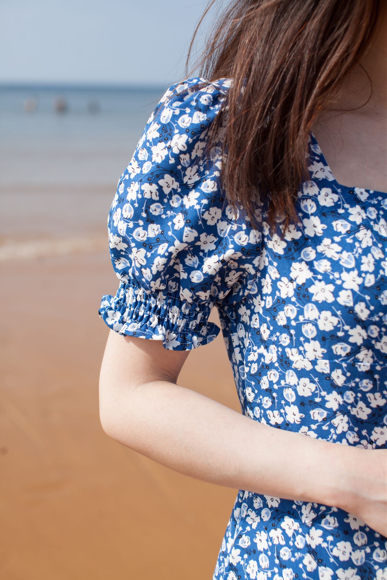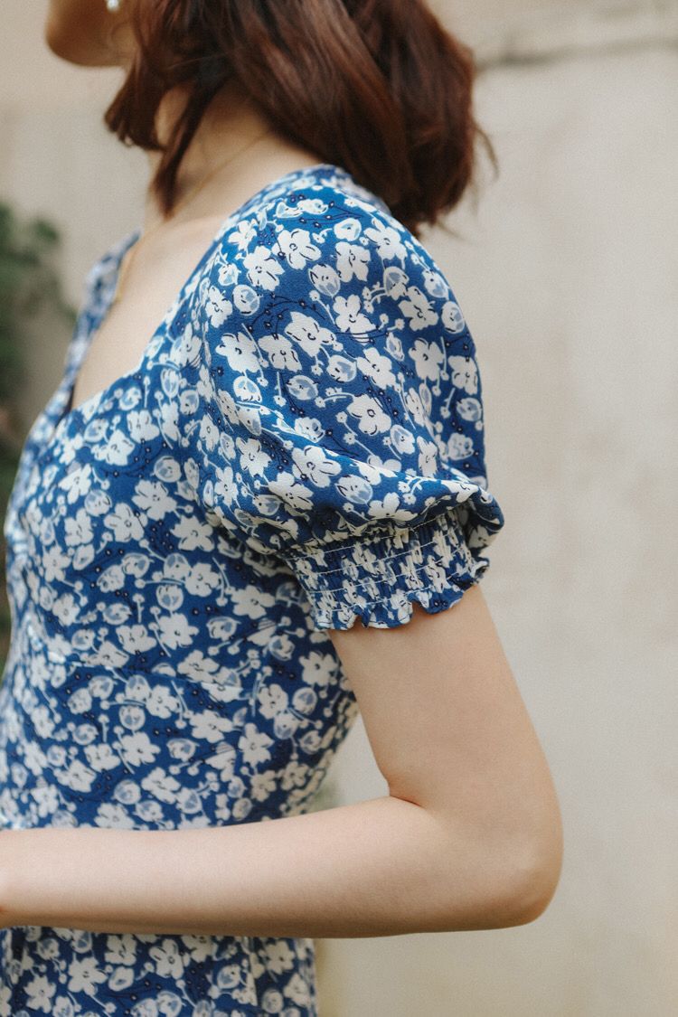 面料~进口高克重聚酯纤维面料,高密订纺,垂顺度极好,而且不易起褶,有质感有力量!蓝色碎花超级显白!典型的法式版型 搭配这个面料 真的绝!真的希望每个姑娘都拥有这么美好的裙裙~
