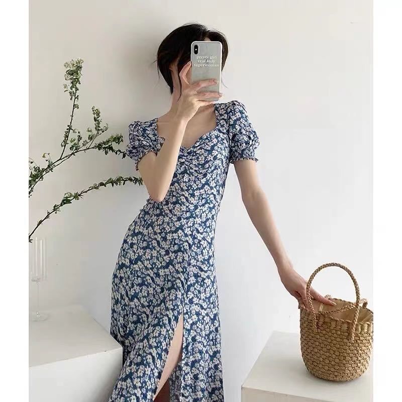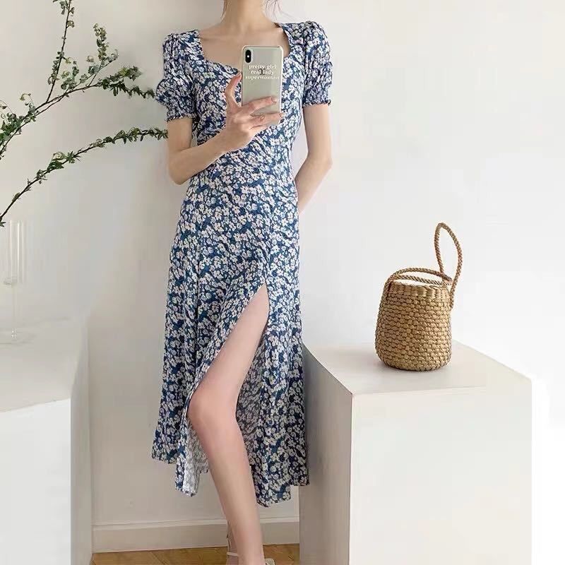版型~这个裙子整体的裙型特别漂亮,完全符合东方女性的形体曲线.领口炒鸡性感的方领设计,显瘦又显脸小,加上抽褶设计,能很好的展示锁骨线条,配上活泼复古的泡泡袖,衬的手臂炒鸡细,前幅下摆做了开叉设计,诠释法式优雅。