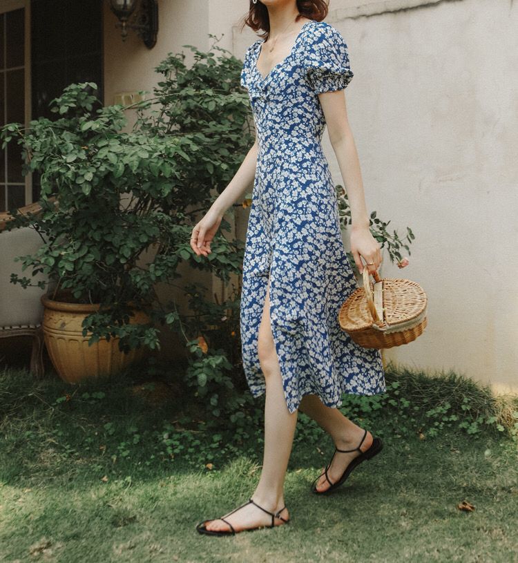 作为今年夏天最火的茶歇裙!这条裙子真的十穿九美!上身巨温柔!选用进口高克重印花面料!让裙子拥有高垂度,上身巨显瘦