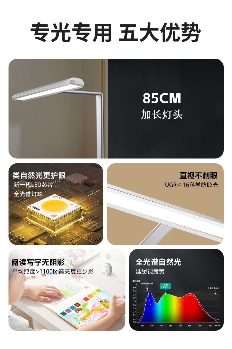 【多功能落地台灯】护眼教室灯,家庭必备!全光谱支架,智能调节。这款新国标照明,不仅可用于教室和客厅,在钢琴上也适用,玩乐两得其所!