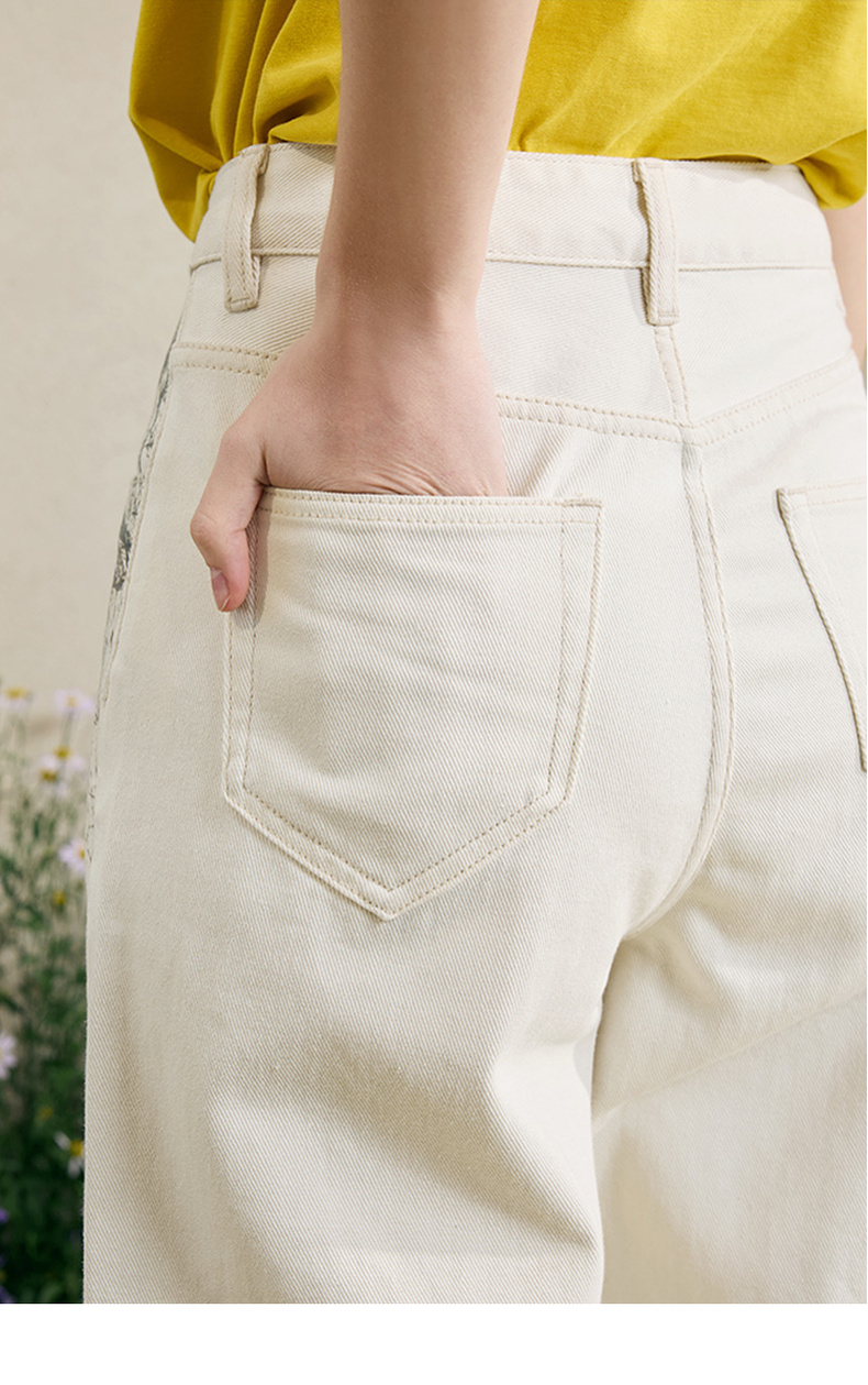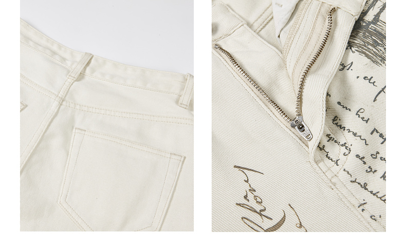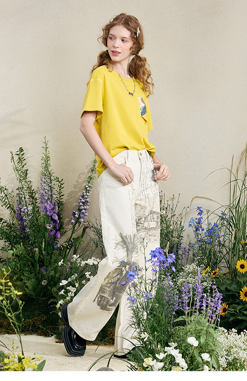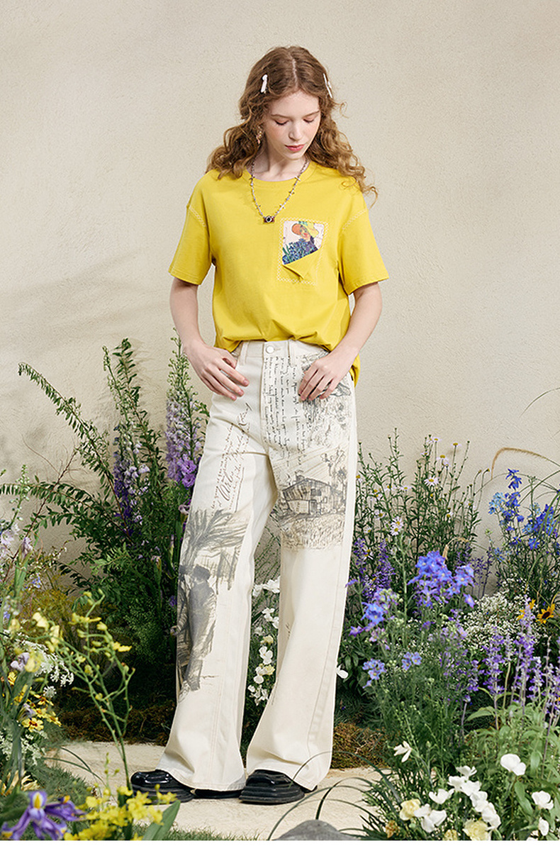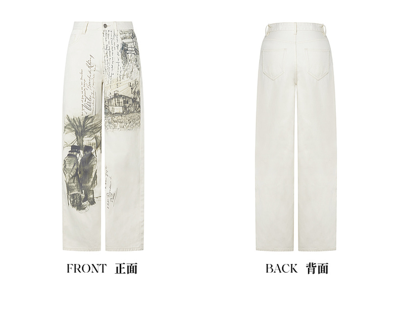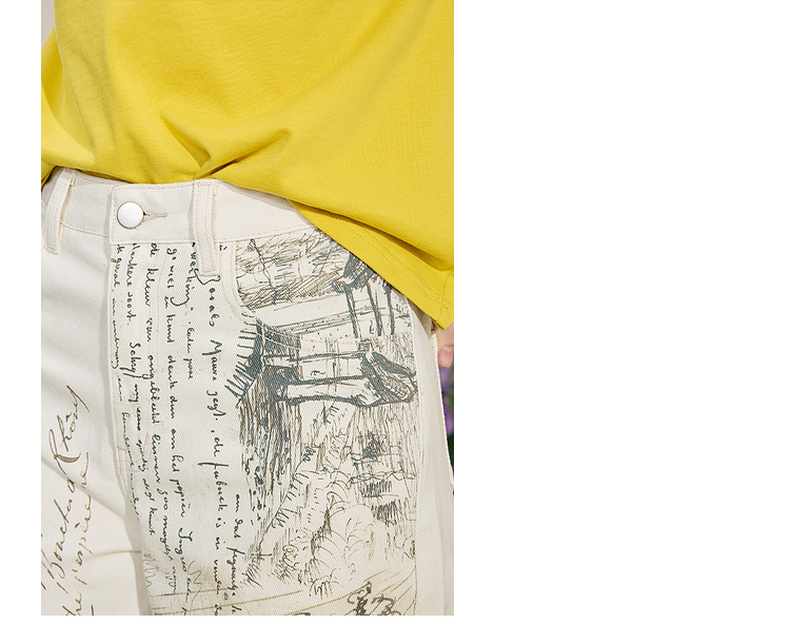 两三事梵高文艺 泛黄诗行 2025夏季新款文艺风印花阔腿牛仔裤女