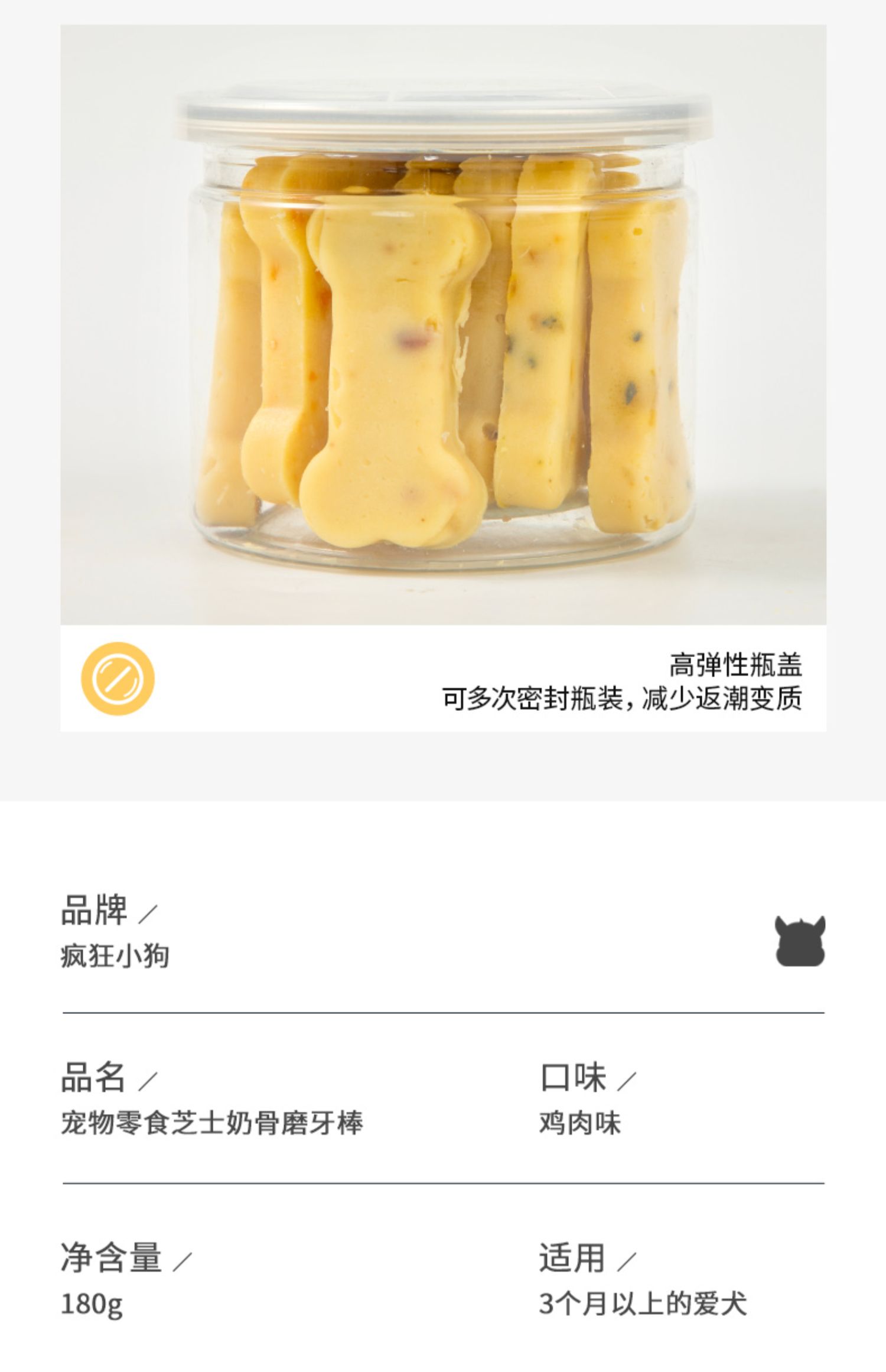 疯狂小狗 芝士奶棒洁齿骨/果蔬鸡肉粒 180g 狗零食