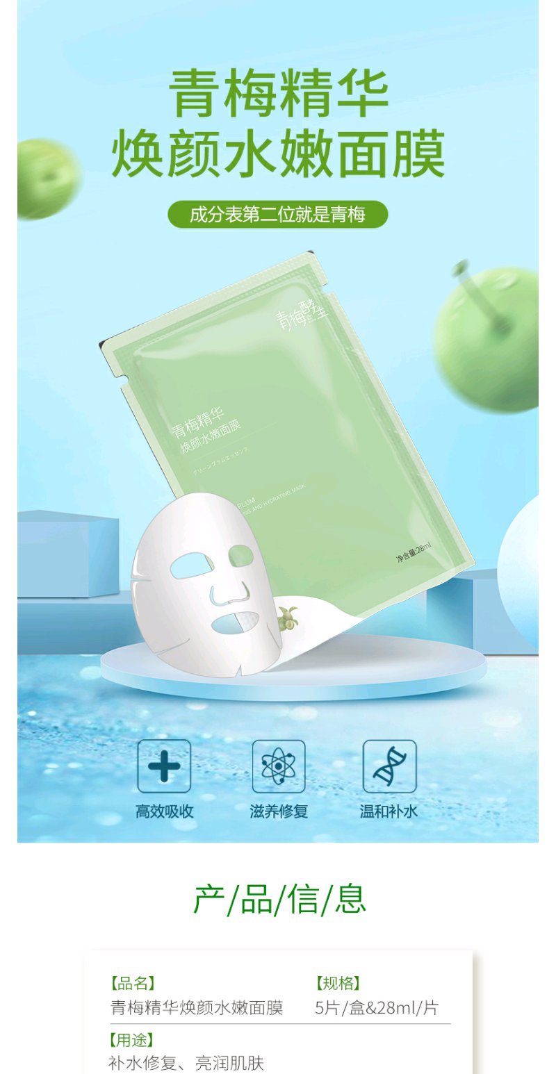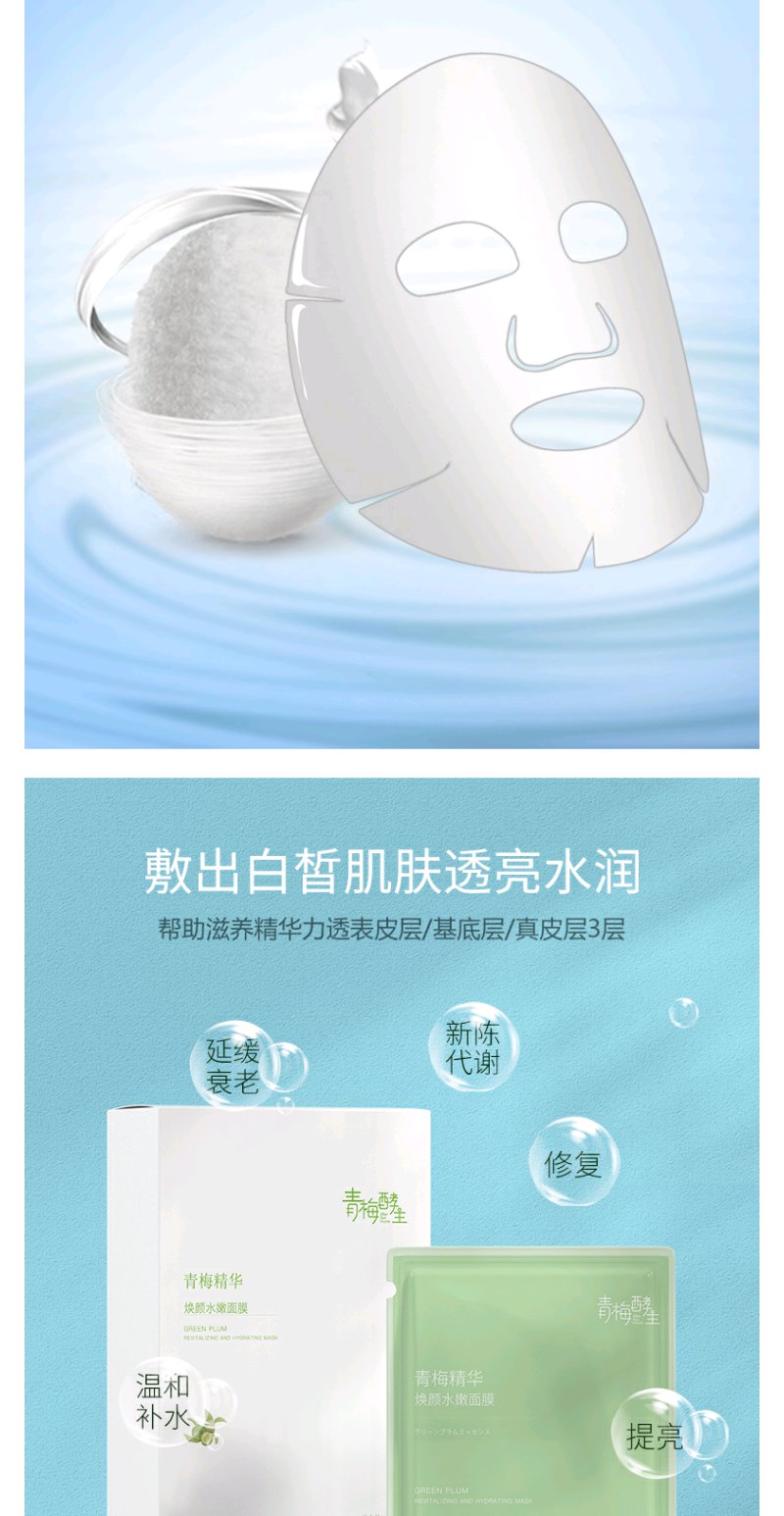 青梅酵主青梅精华焕颜水嫩面膜锁水贴片式透亮补水面膜