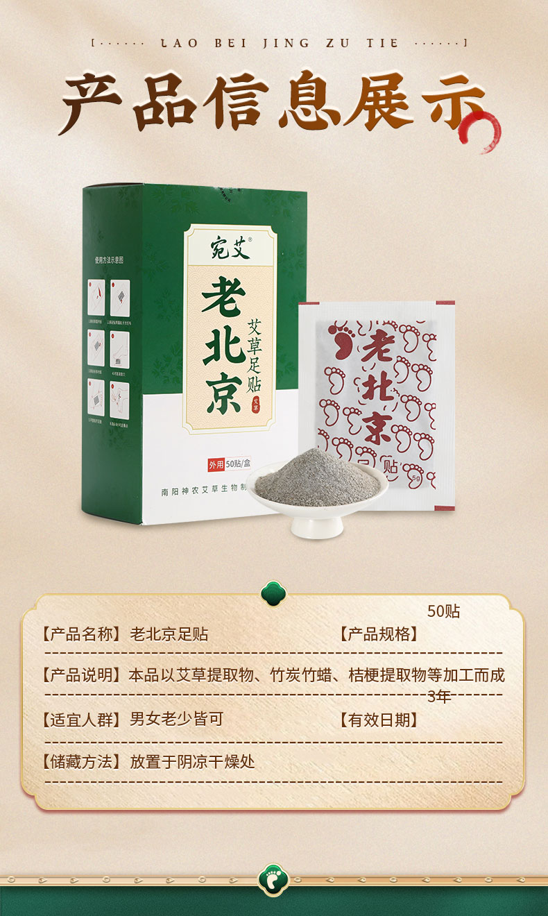 艾草足贴50贴盒装 脚部护理 老北京足底穴位艾灸贴