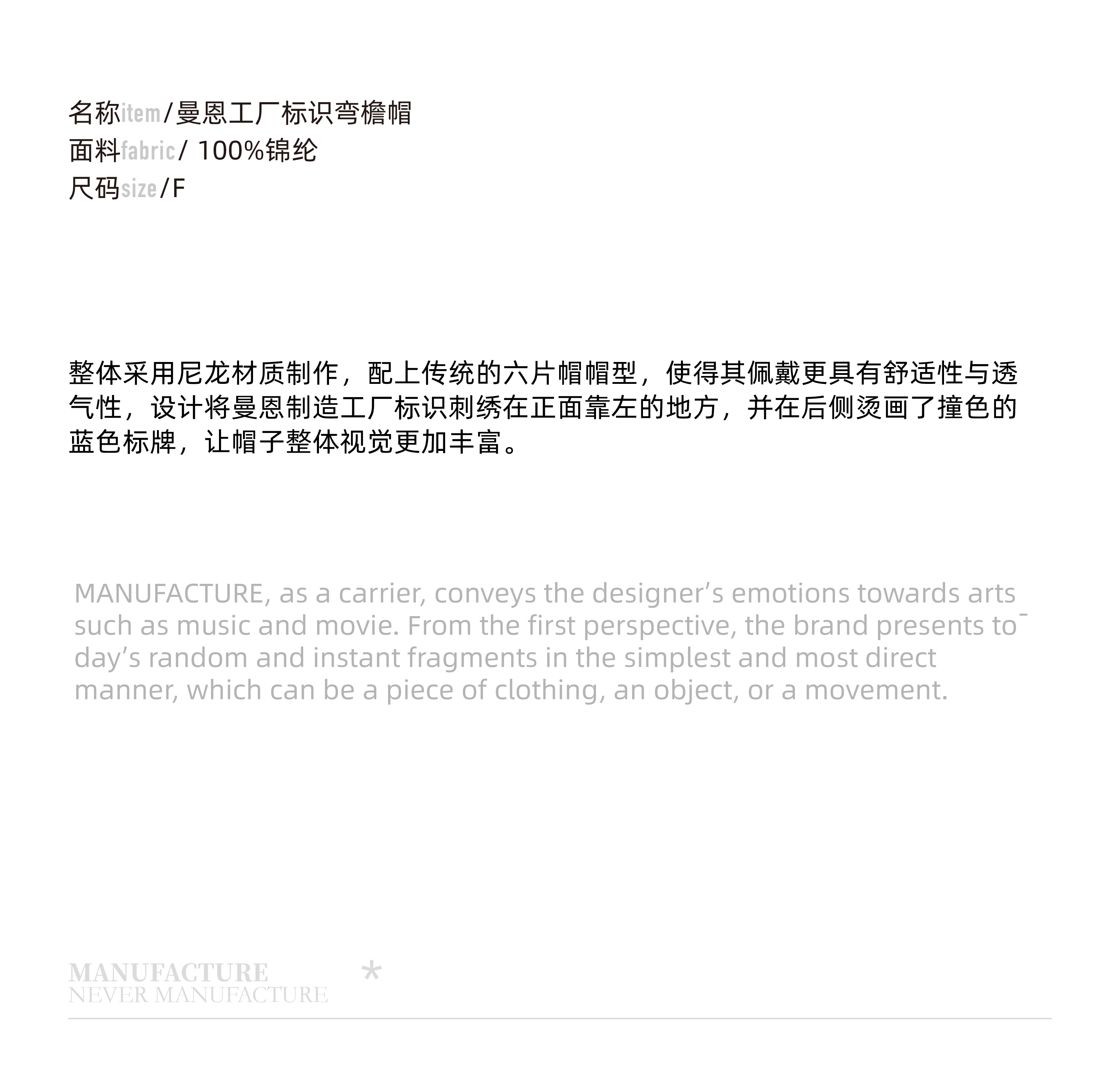 MANUFACTURE BY ATTEMPT 曼恩工厂标识弯檐帽