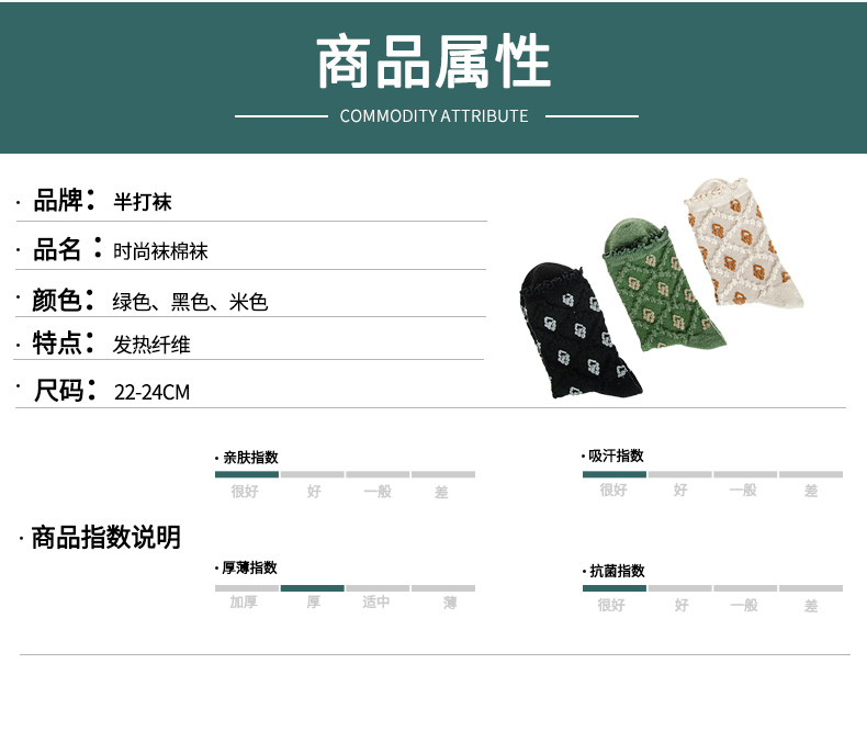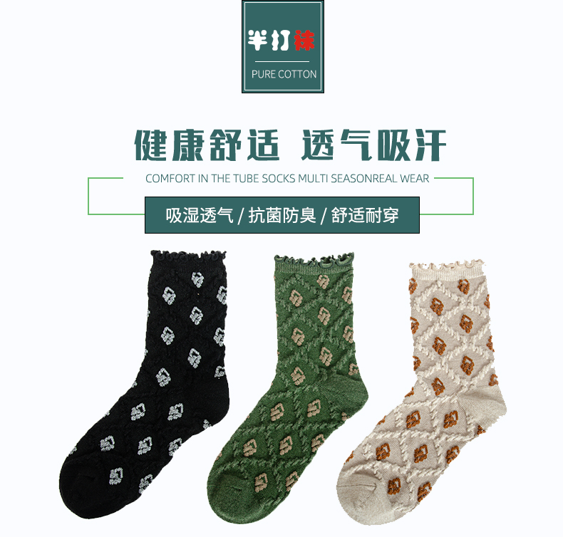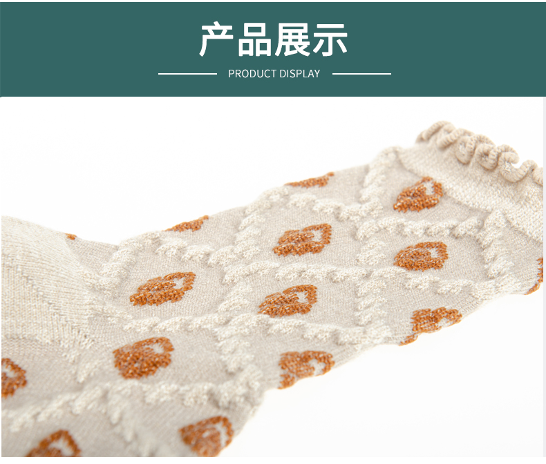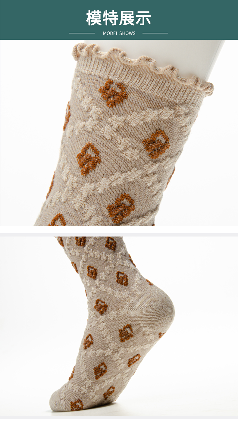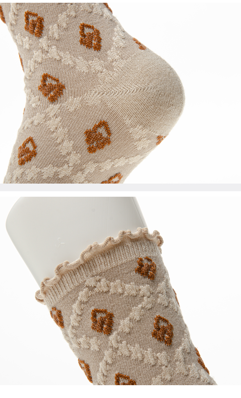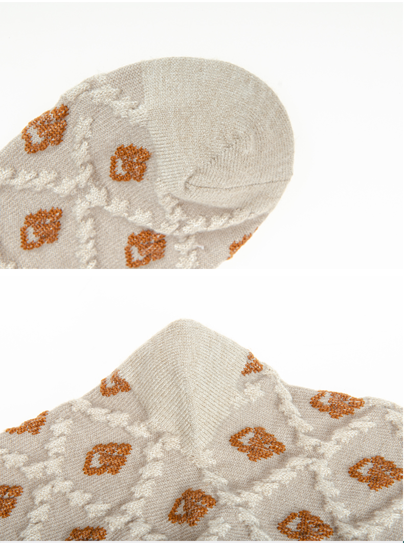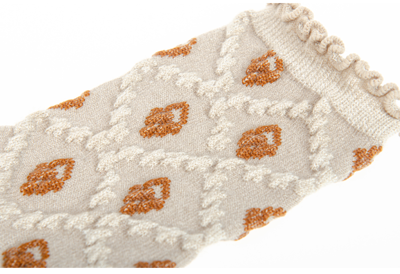 袜子女士 秋冬新款发热纤维菱形暗花女袜法式复古风花朵长筒袜【2222806】