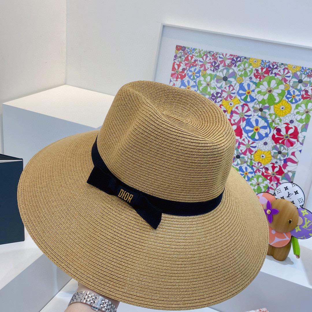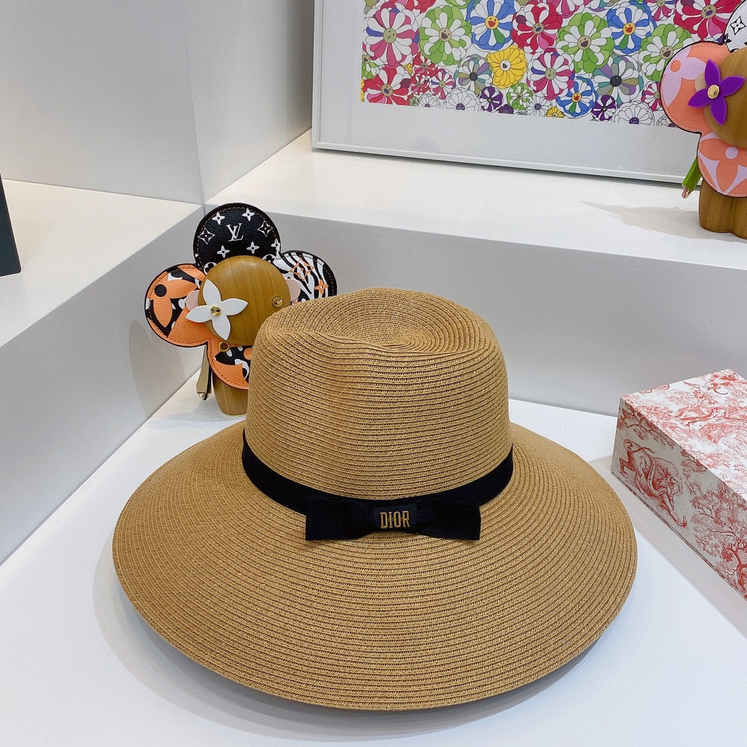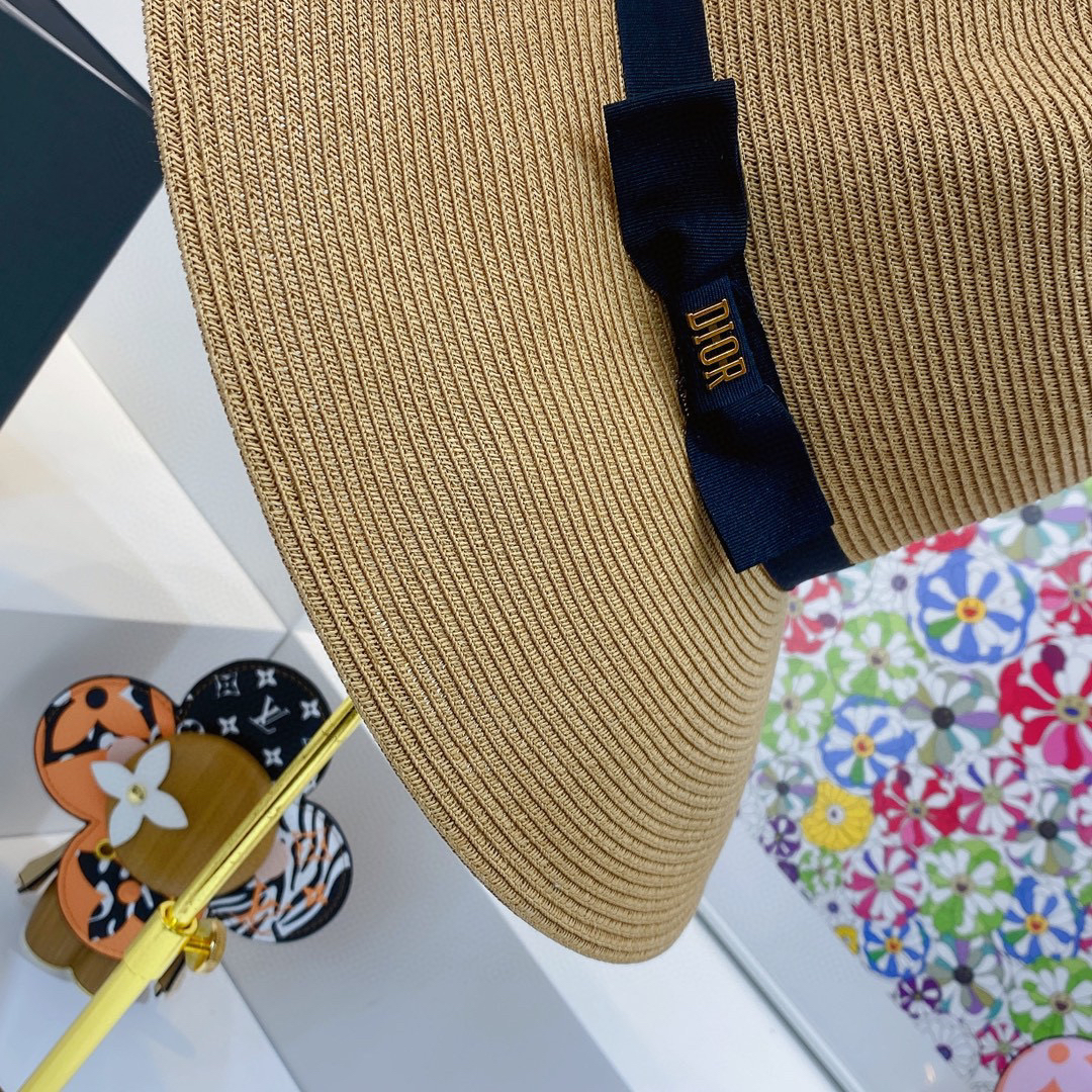 D!or春夏款PP草布遮阳帽太阳帽,台湾PP 草超轻材质,高级麻棉手工蝴蝶结,轻盈透气可折叠,携带方便,雅致大气,出游必备单品