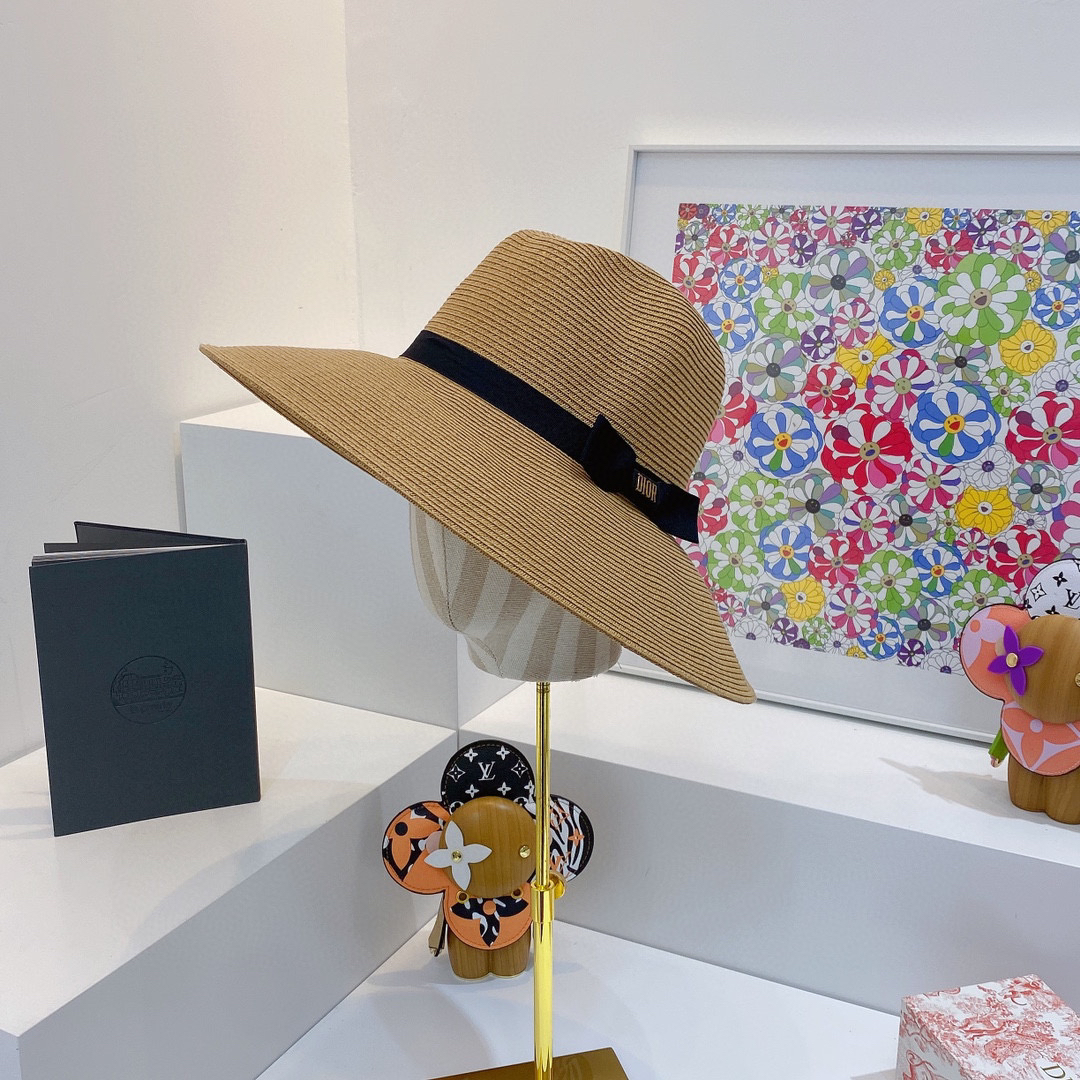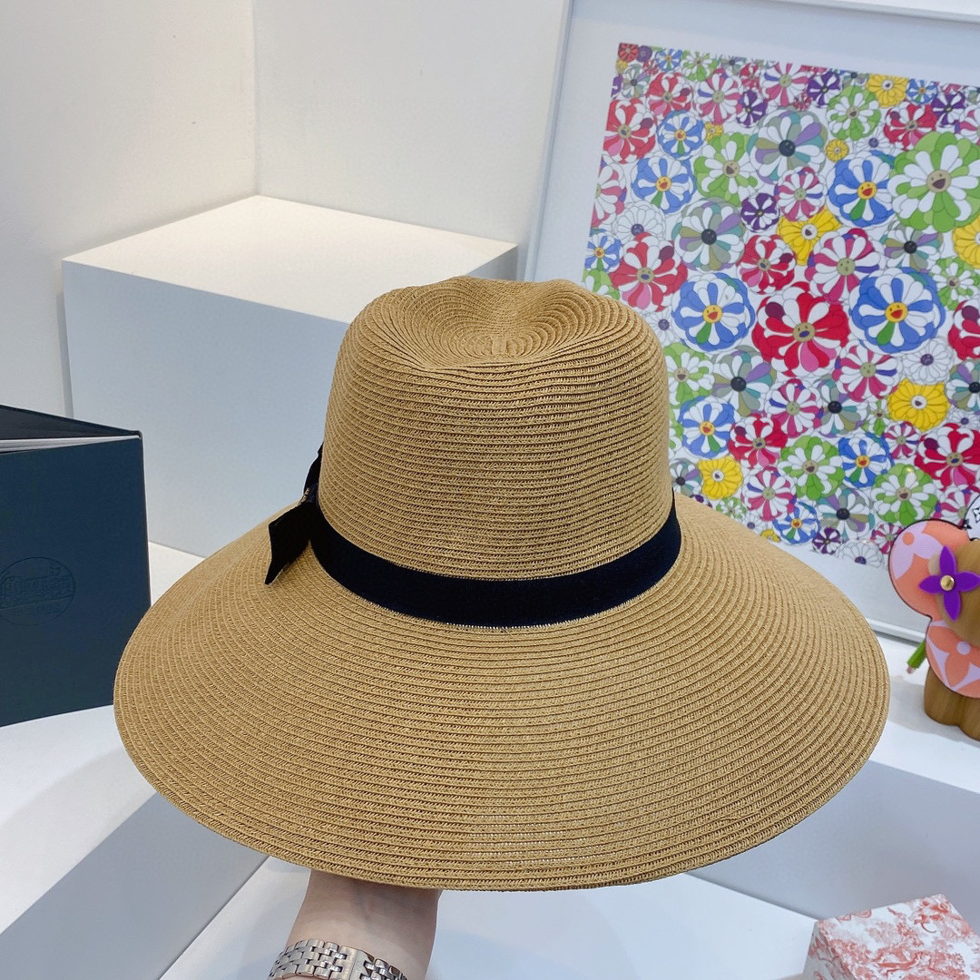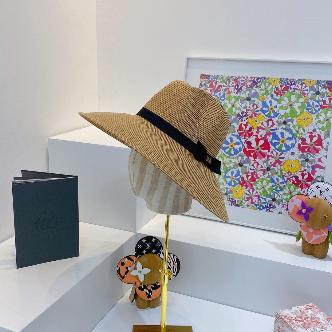 D!or春夏款PP草布遮阳帽太阳帽,台湾PP 草超轻材质,高级麻棉手工蝴蝶结,轻盈透气可折叠,携带方便,雅致大气,出游必备单品