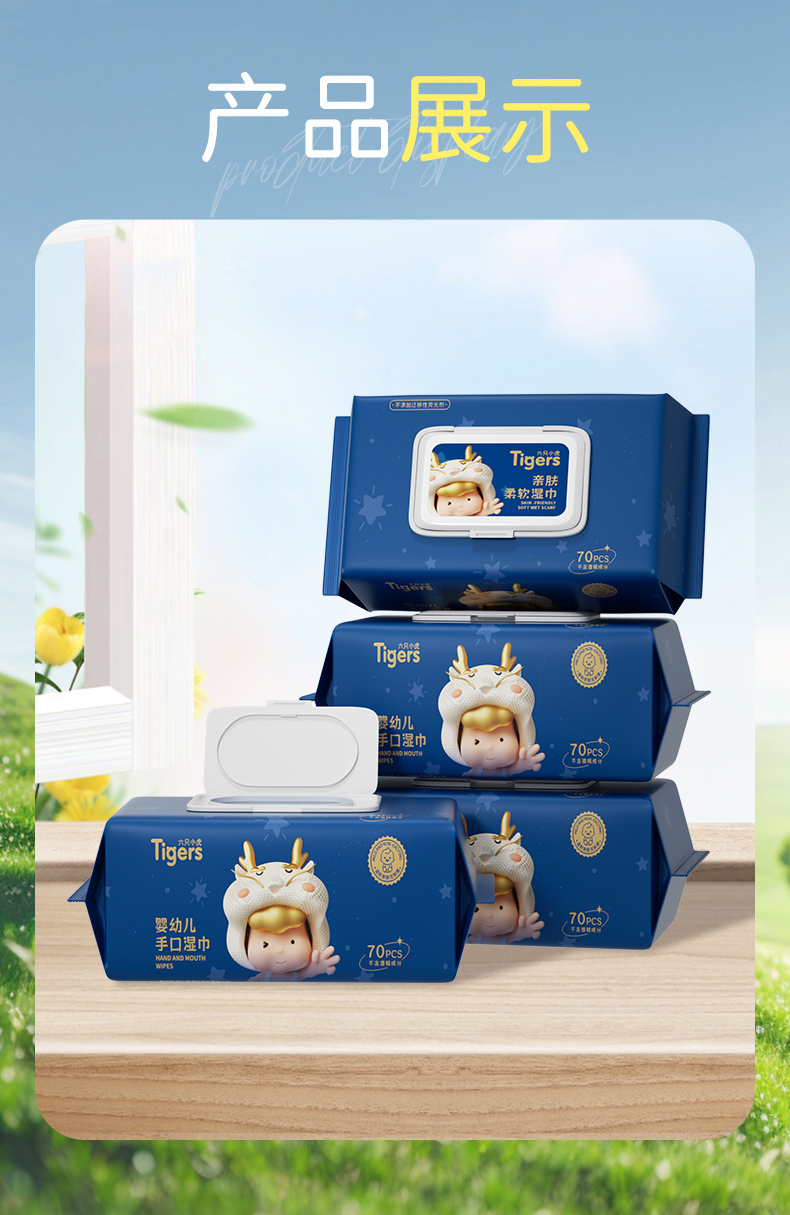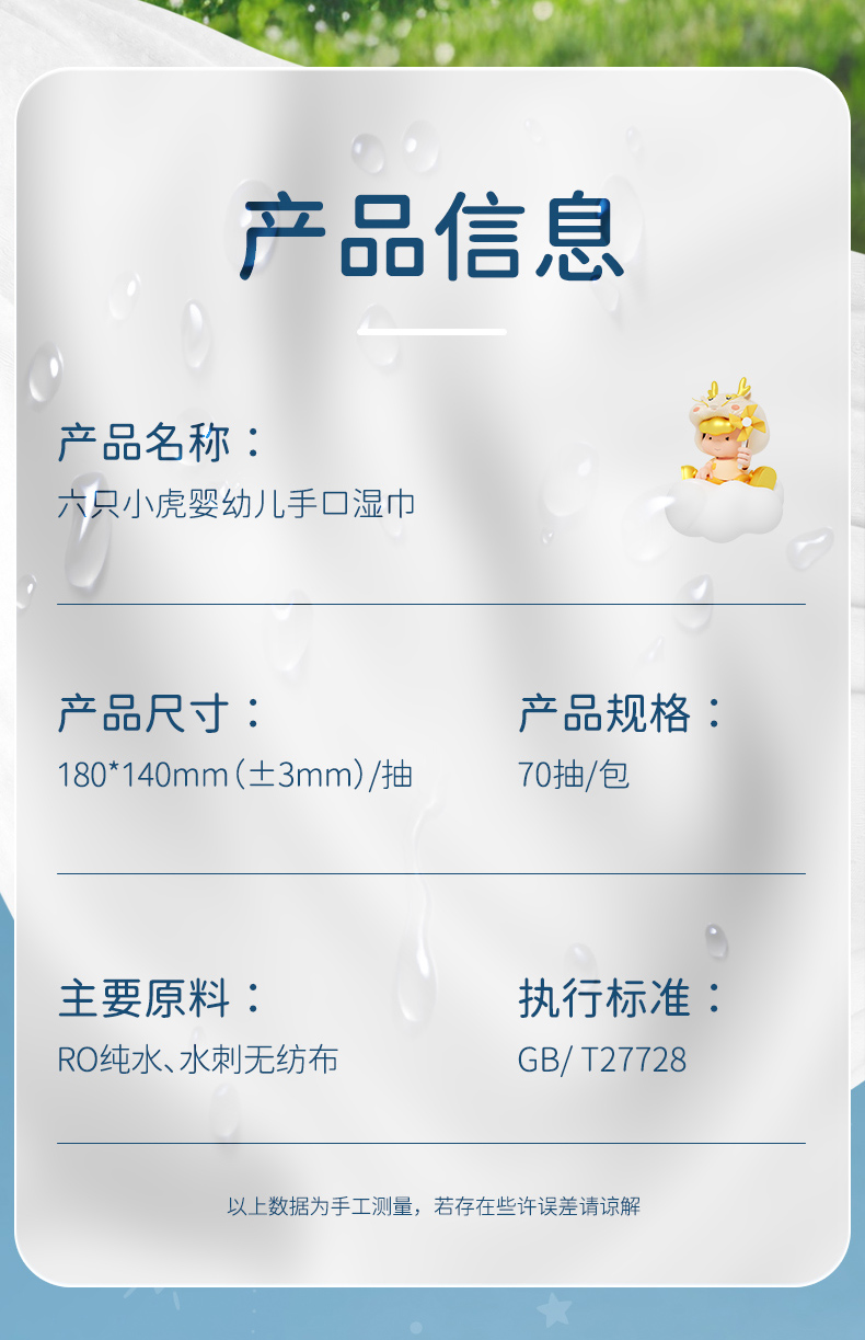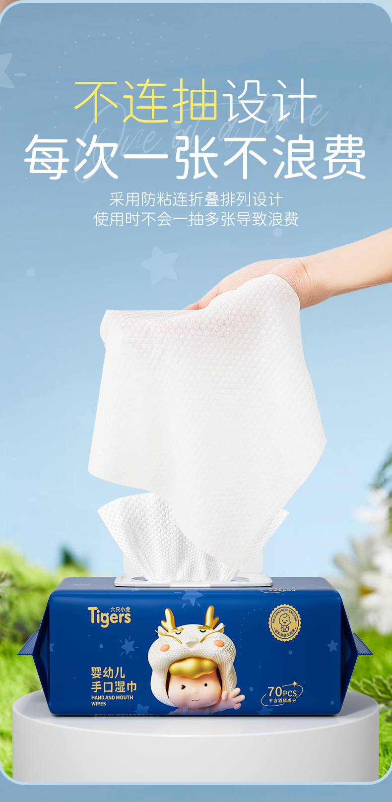 【自营】蓝漂六只小虎系列70片/包湿纸巾婴儿湿巾纸幼儿手口屁专用LZXH-52358-5
