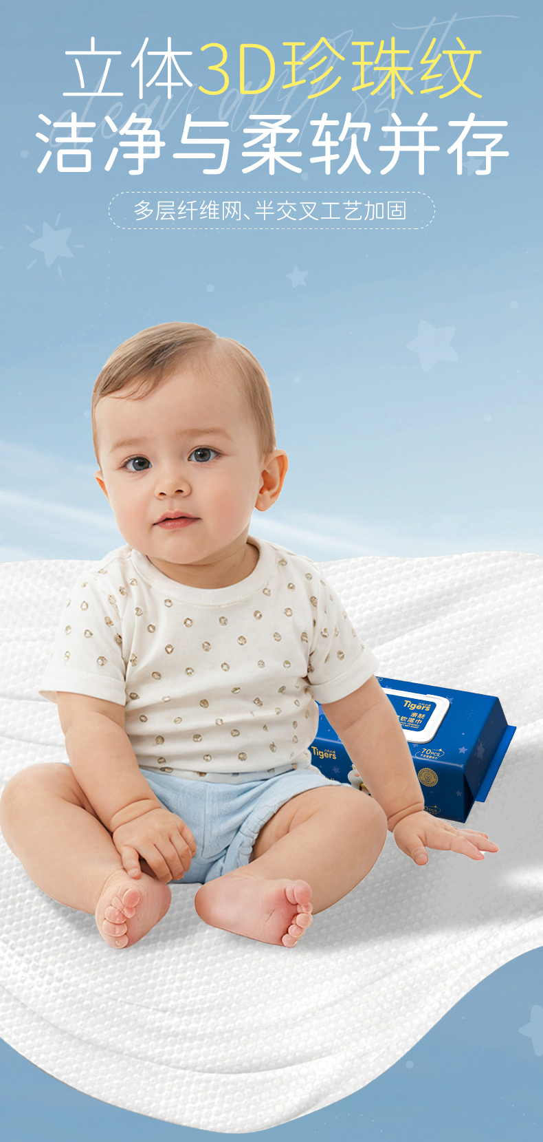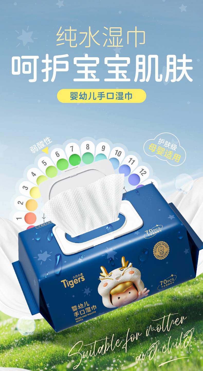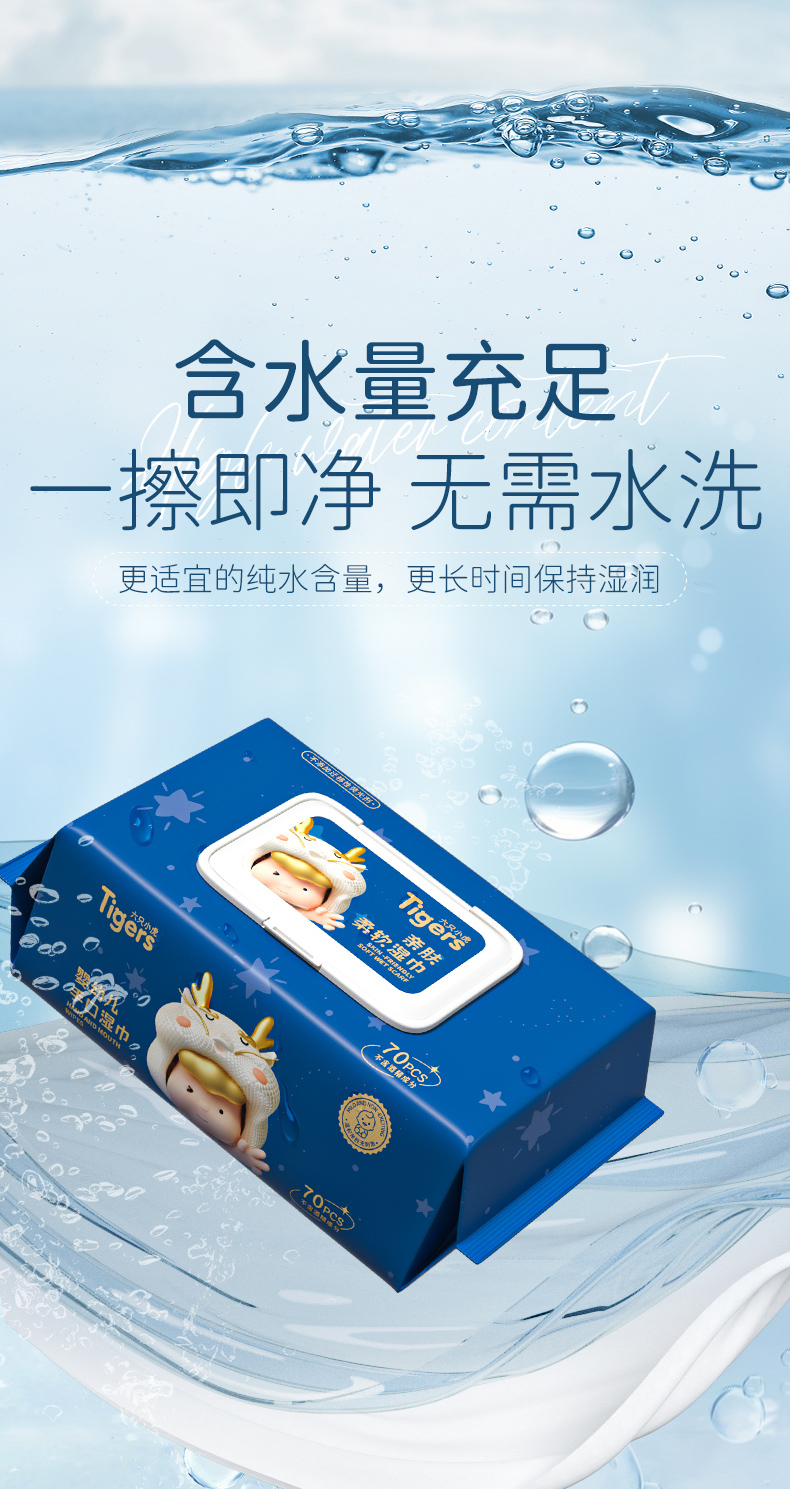 【自营】蓝漂六只小虎系列70片/包湿纸巾婴儿湿巾纸幼儿手口屁专用LZXH-52358-5