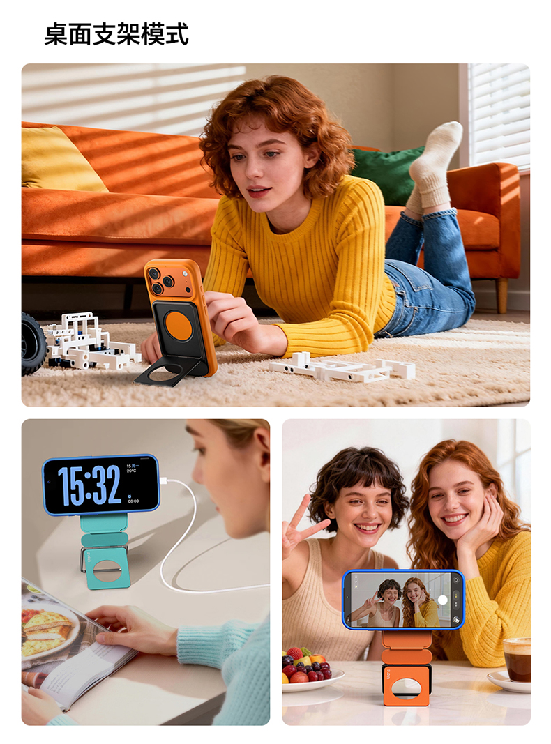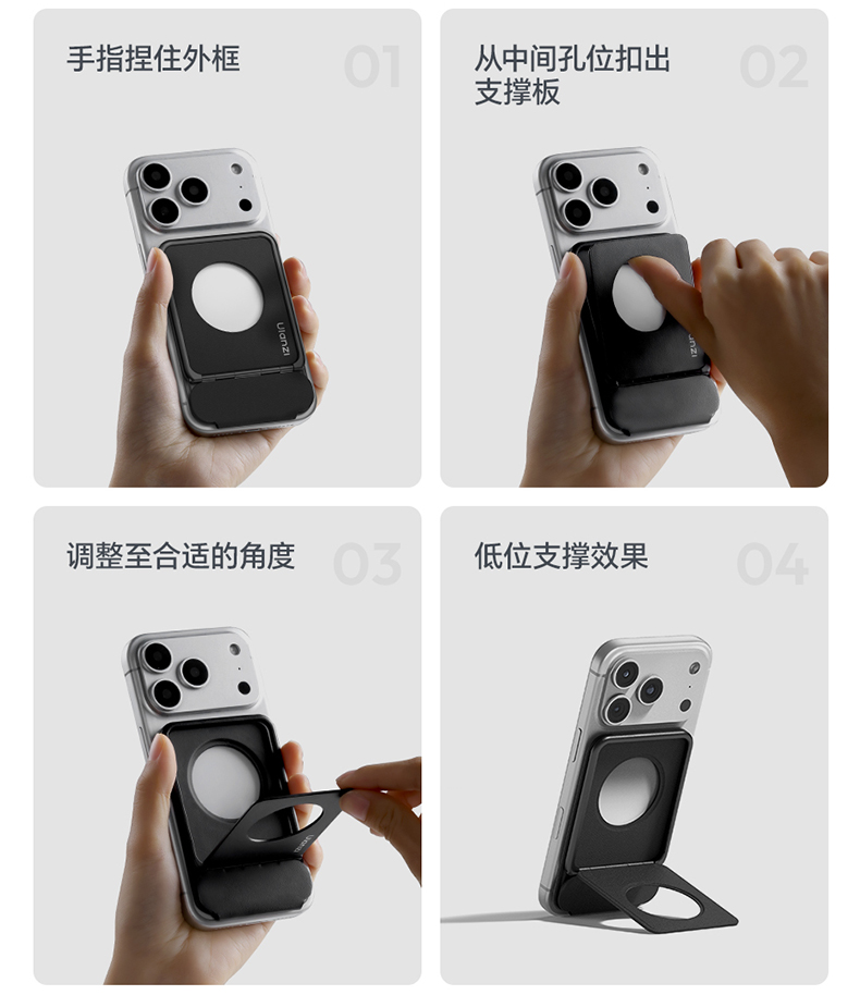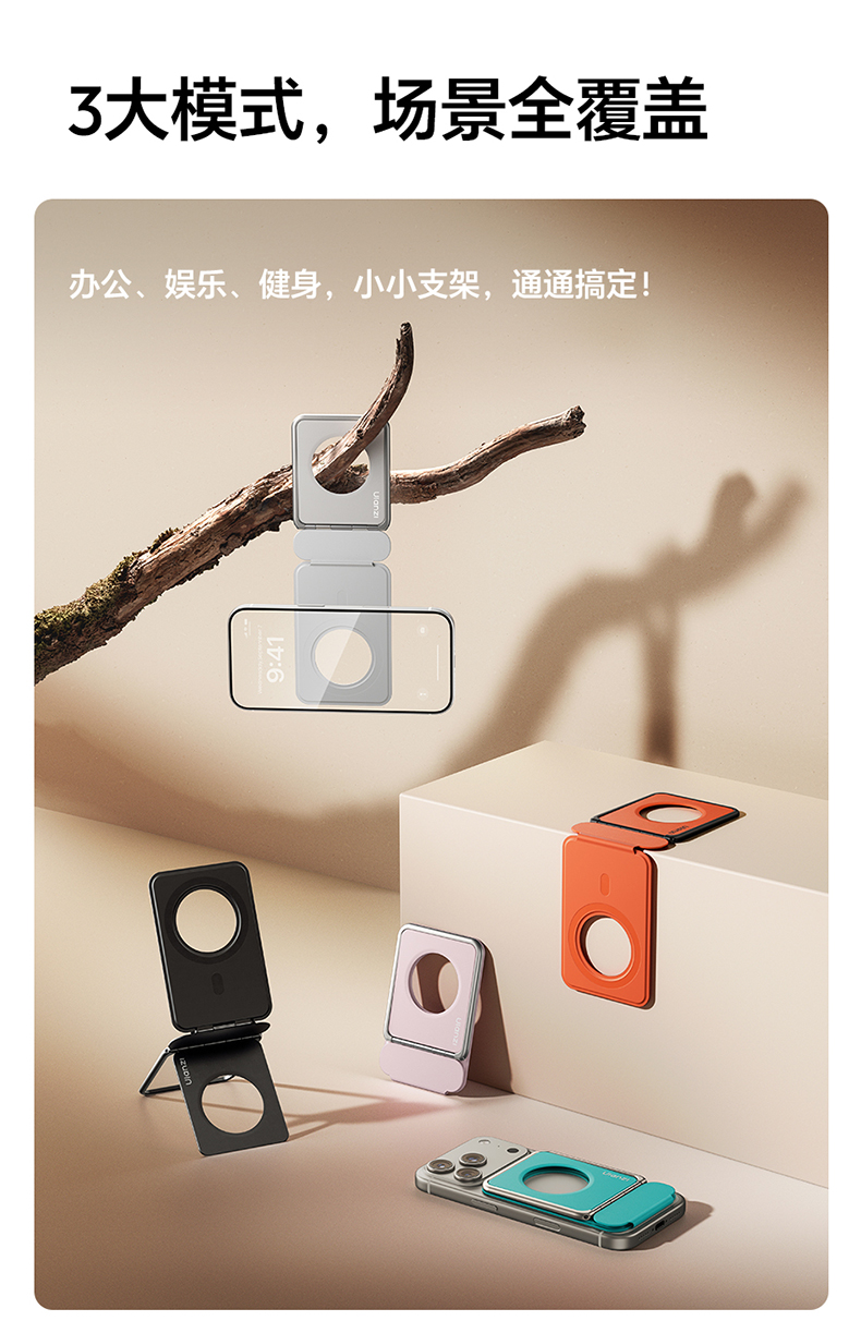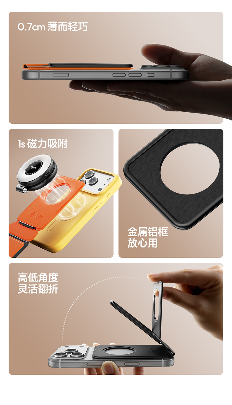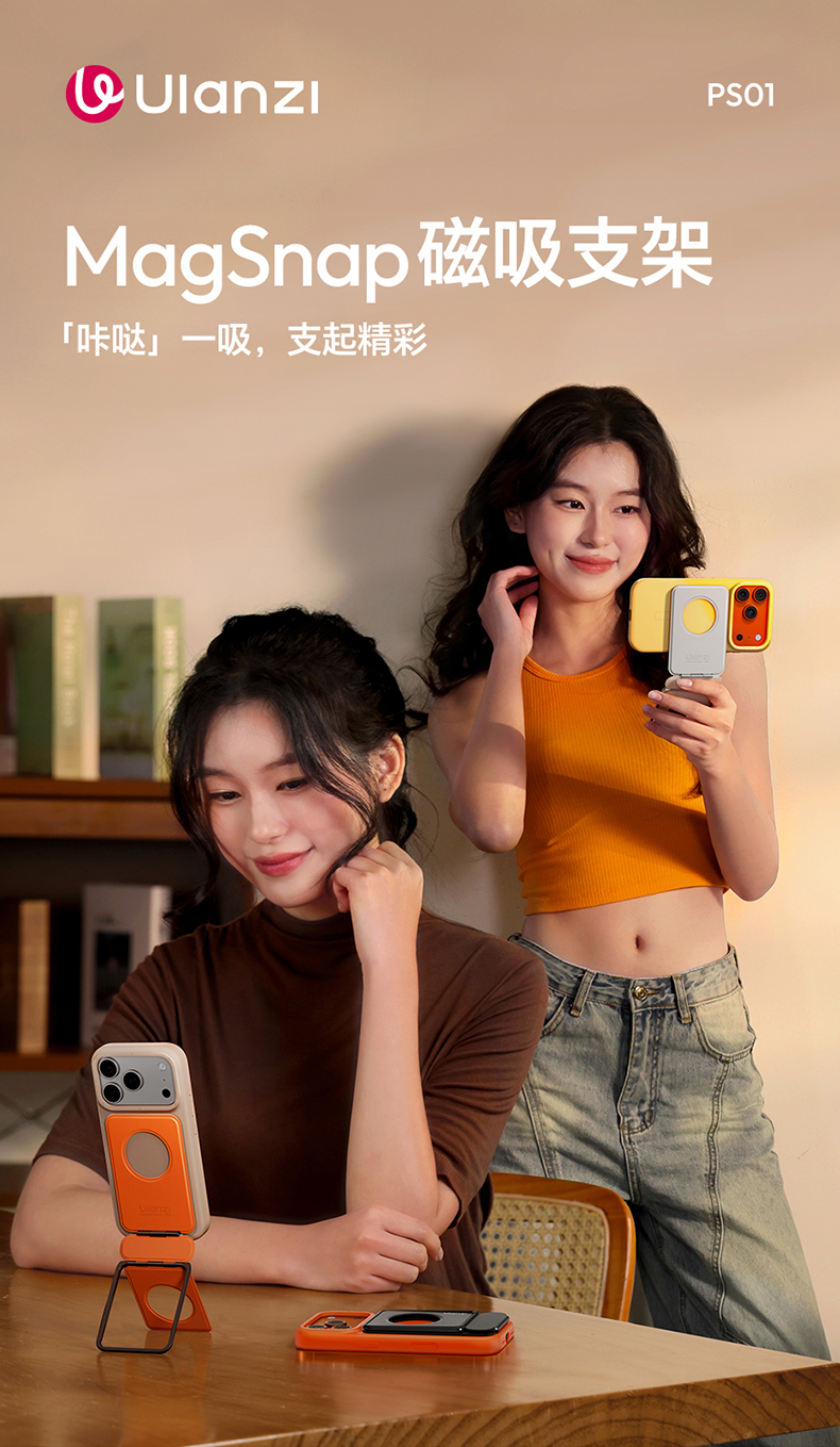 Ulanzi优篮子 PS01磁吸手机架支架便携桌面支撑magsafe背贴吸磁适用苹果iPhone17懒人自拍拍摄神器vlog自拍杆