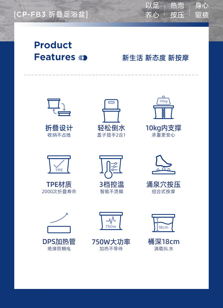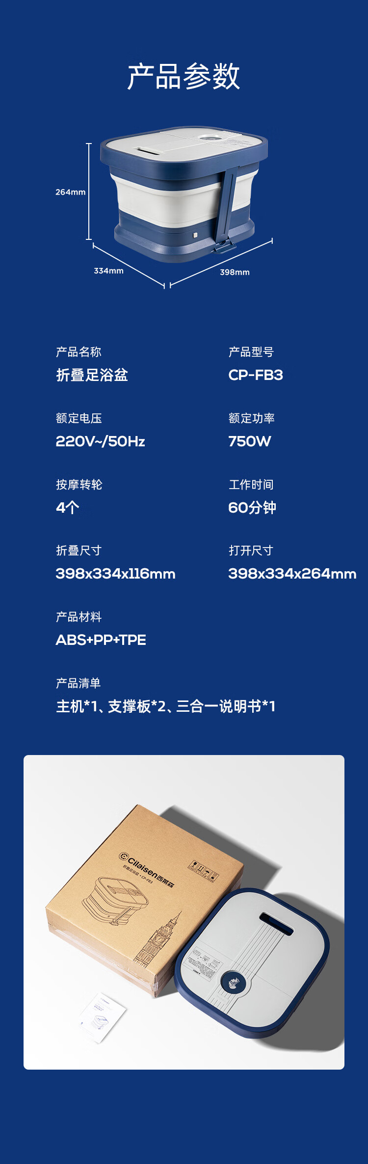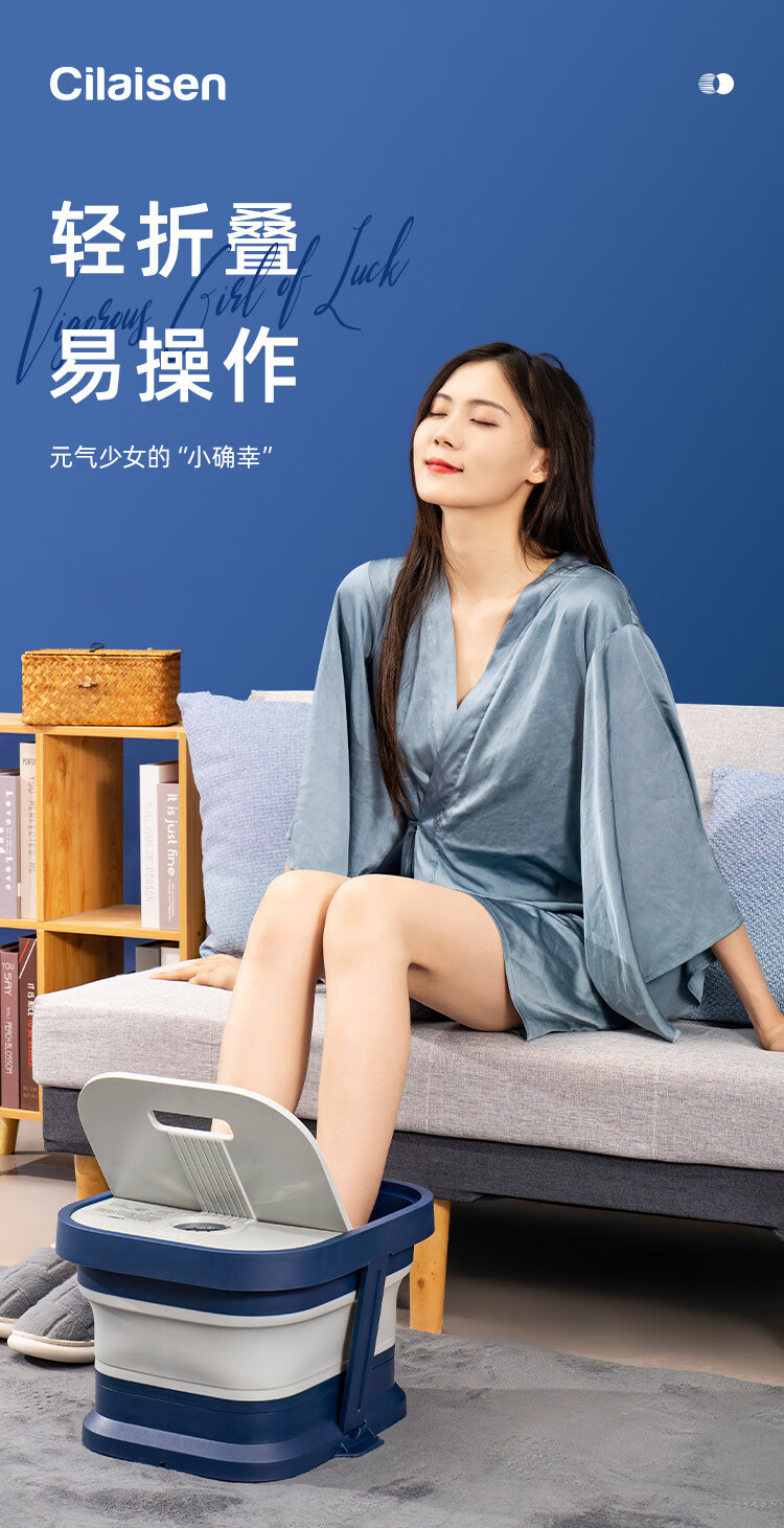 【小家电】西莱森(cilaisen)家用折叠足浴盆泡脚桶按摩足浴盆恒温加热泡脚盆CP-FB3 HF