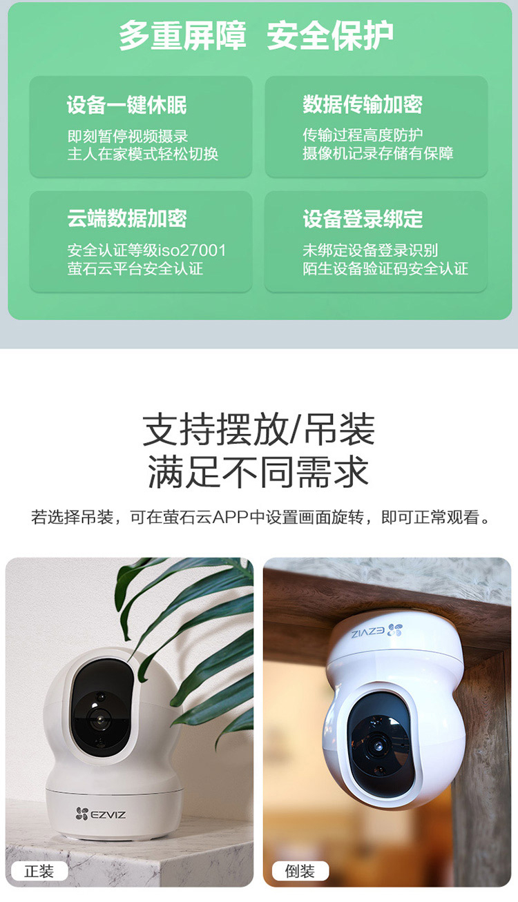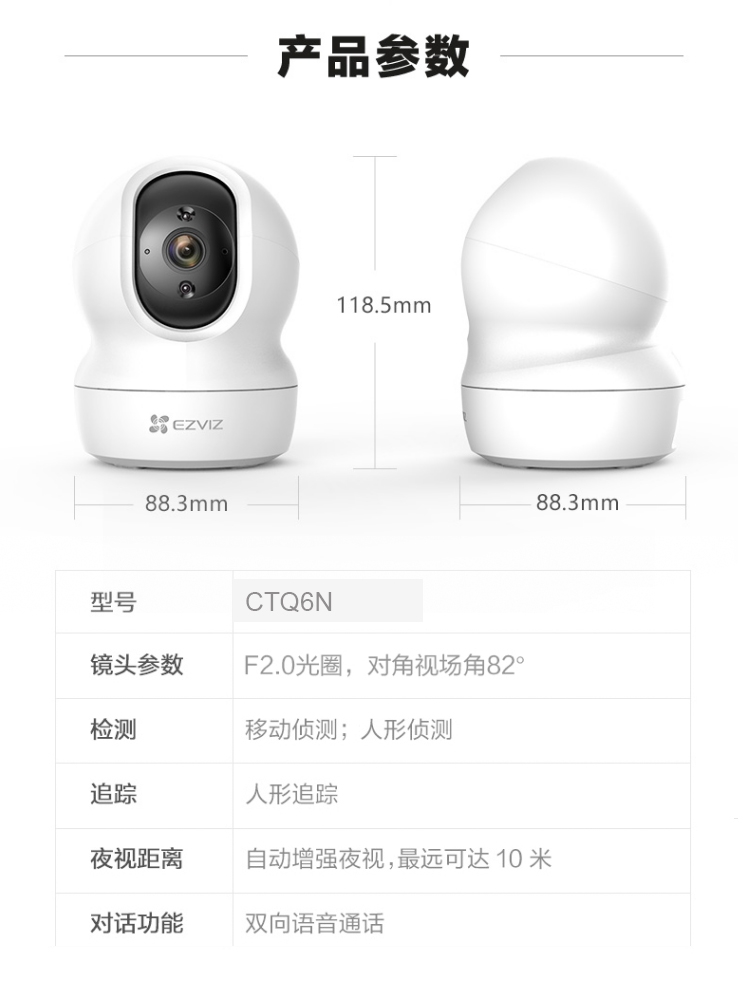 萤石 智能室内云台网络300万摄像机 CTQ6N 300W 智能家用摄像机