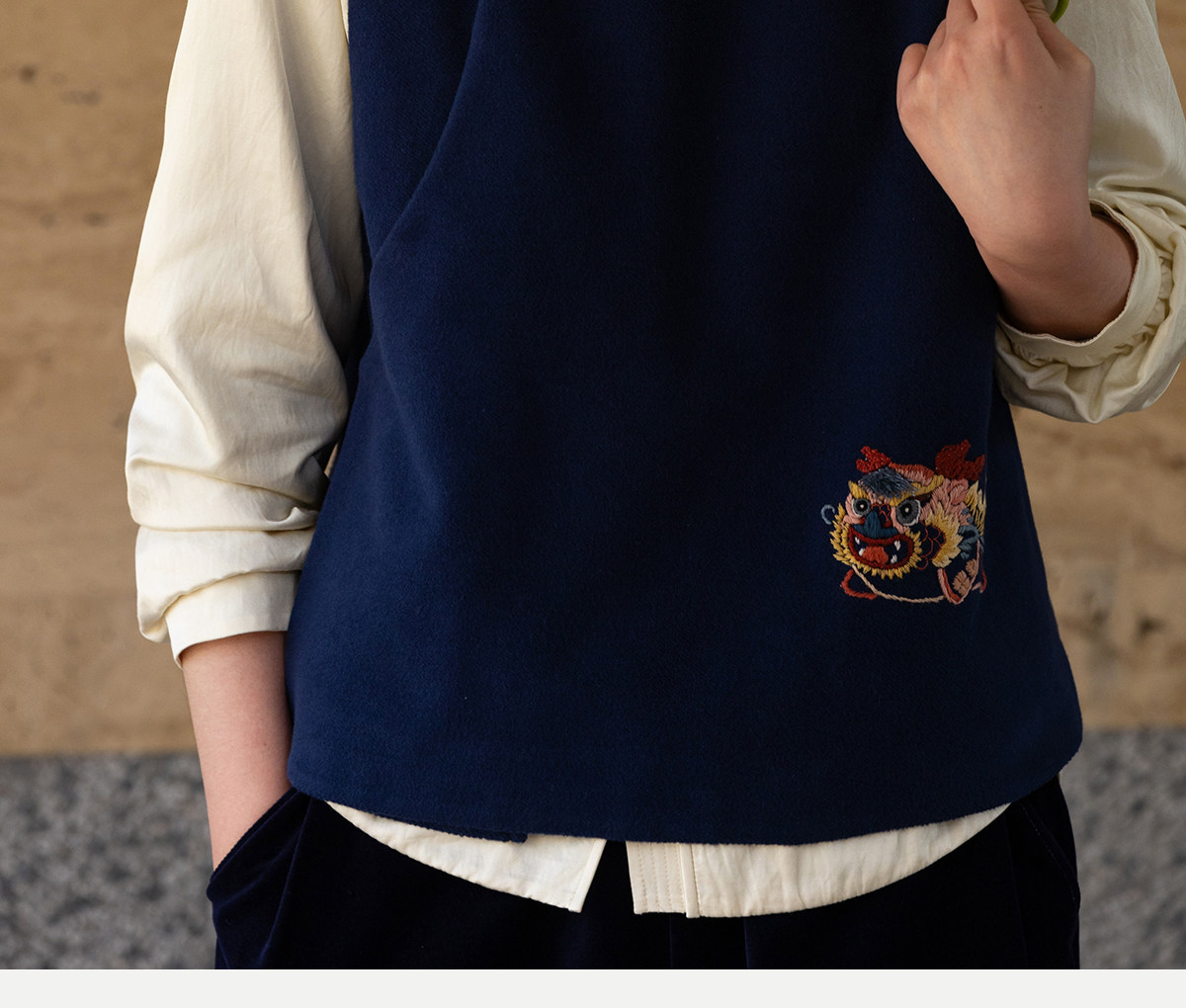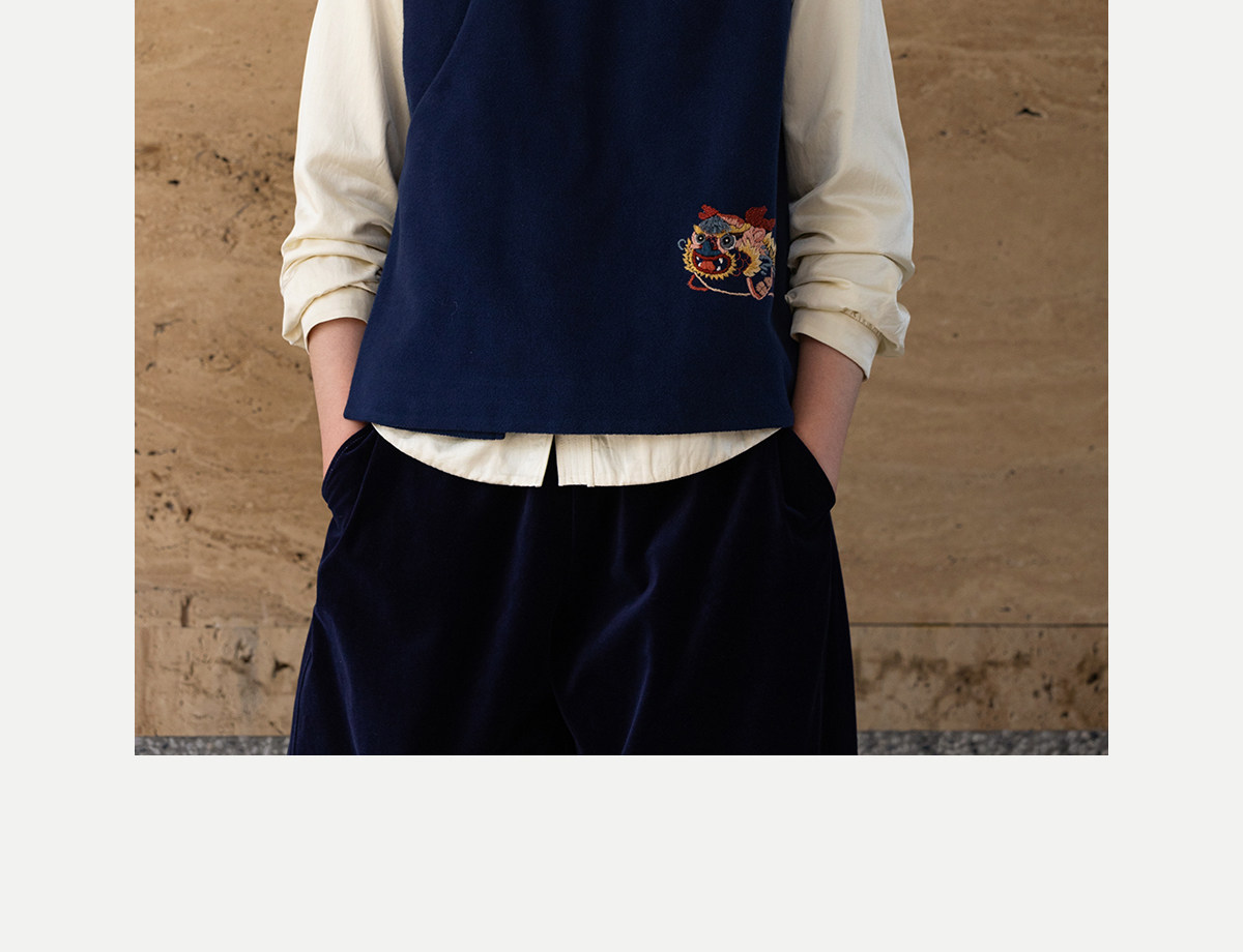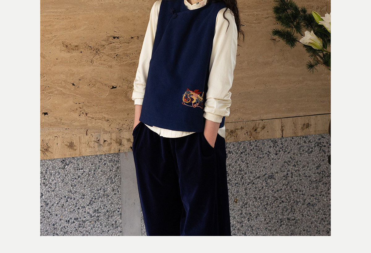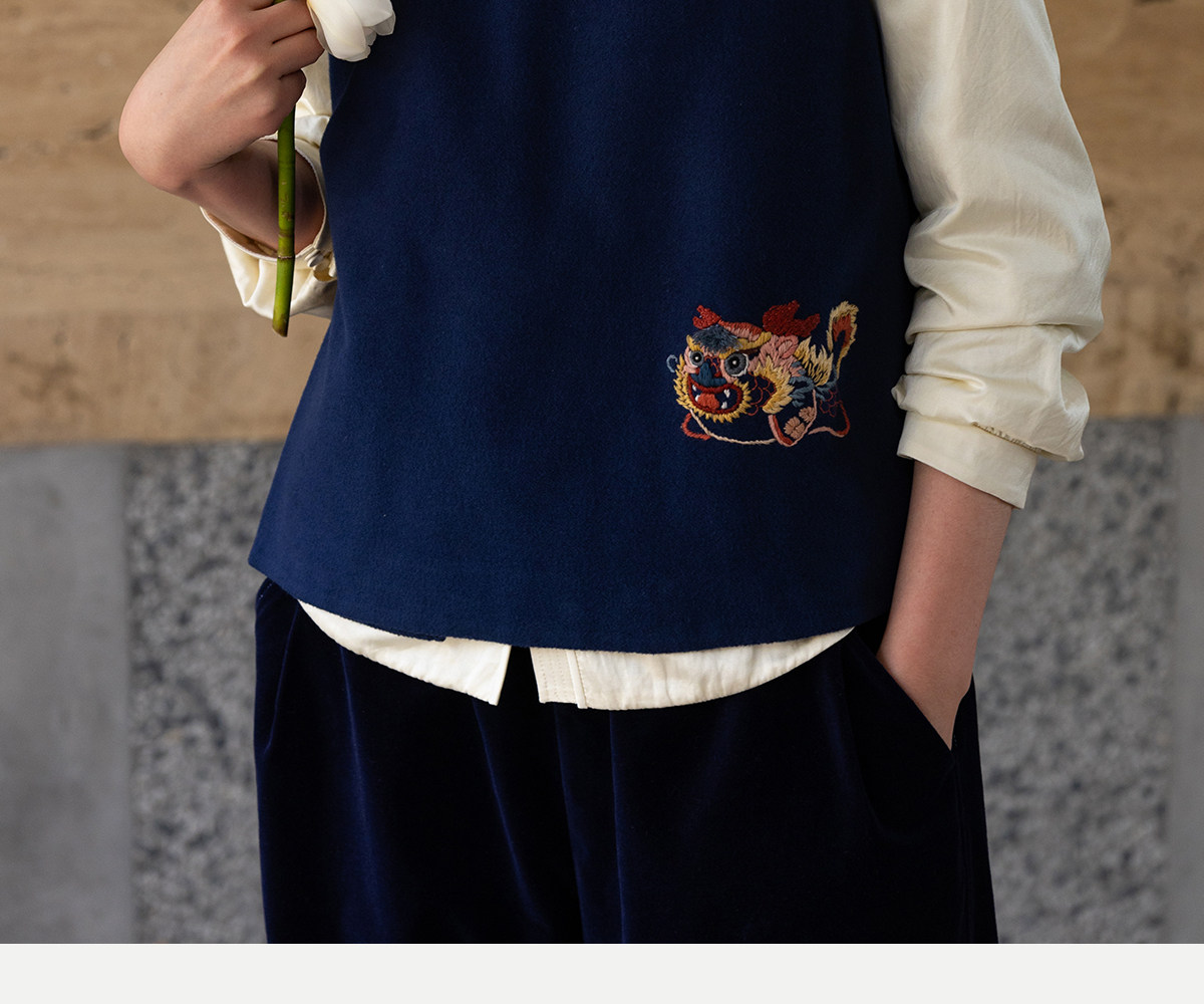 牧衣游原创 手工刺绣棉质马夹新款复古东方禅意百搭中式开衫 赤壁