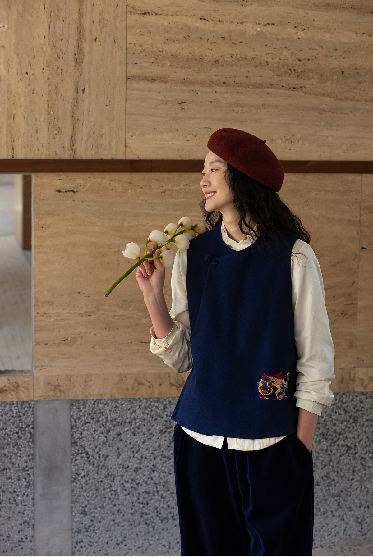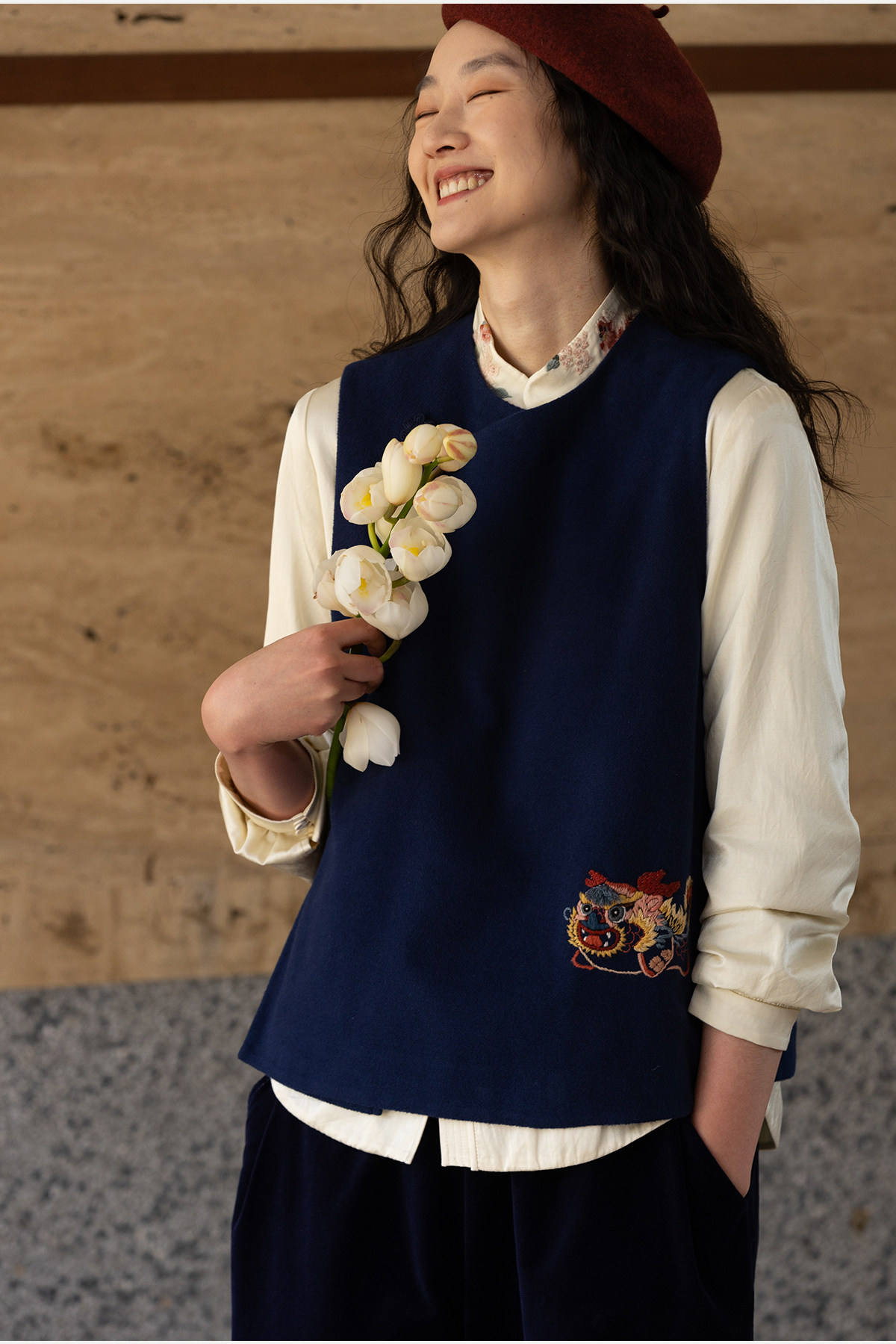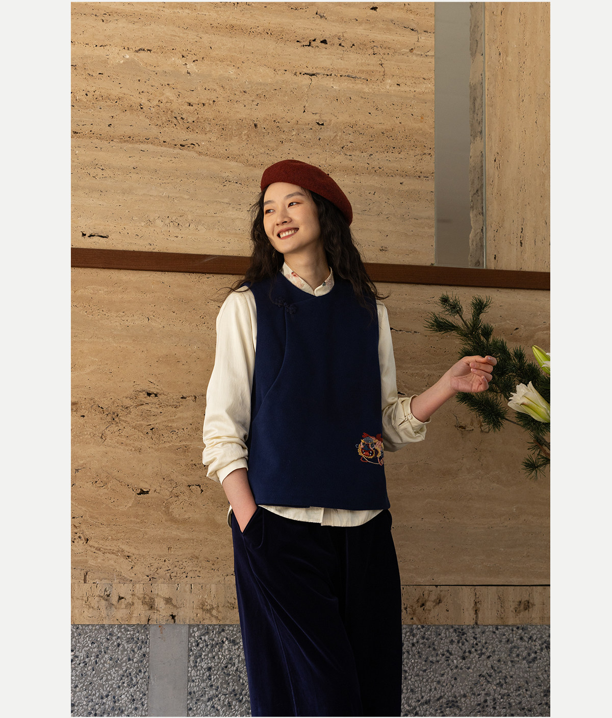 牧衣游原创 手工刺绣棉质马夹新款复古东方禅意百搭中式开衫 赤壁