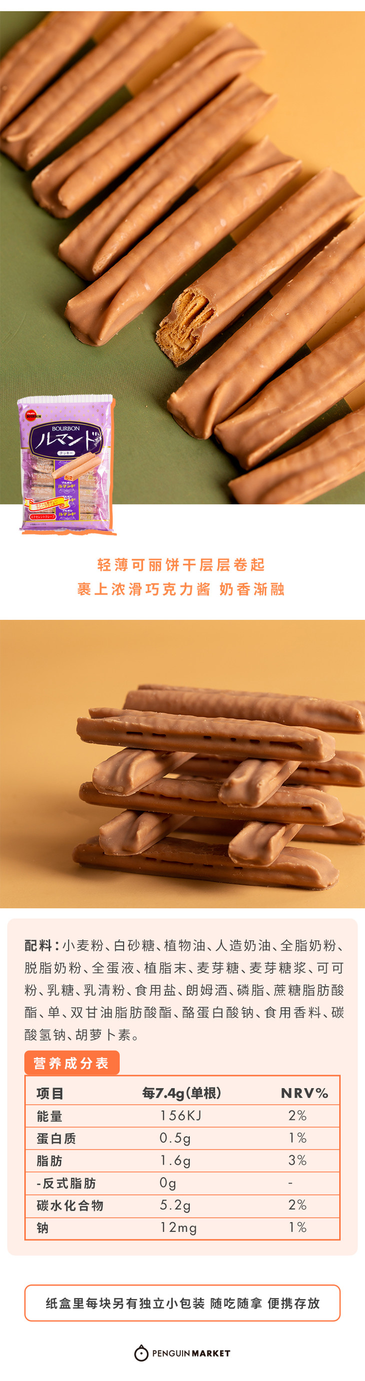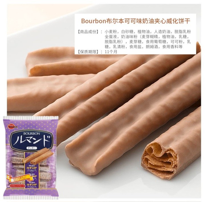 日本进口 Bourbon波路梦可可奶油味曲奇饼干棒零食 88g(12根)(335855)