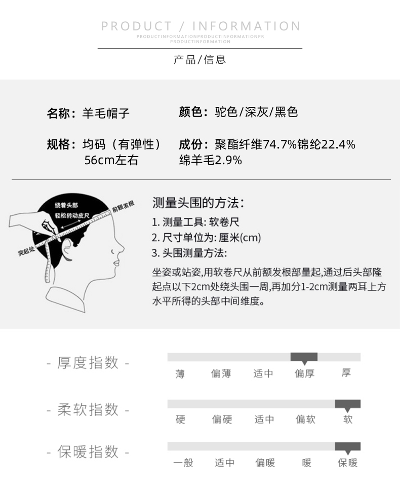 昆潮 羊毛休闲保暖帽子(多色)