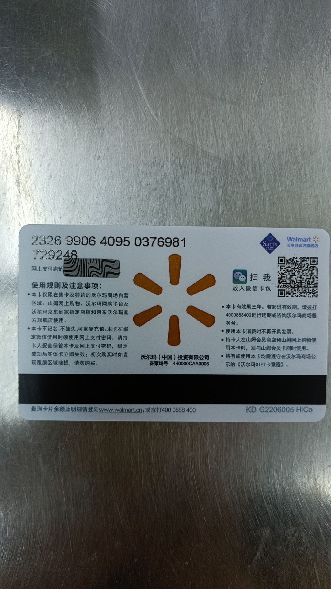 沃尔玛超市卡礼品卡购物卡消费卡1000元实体卡 全国通用