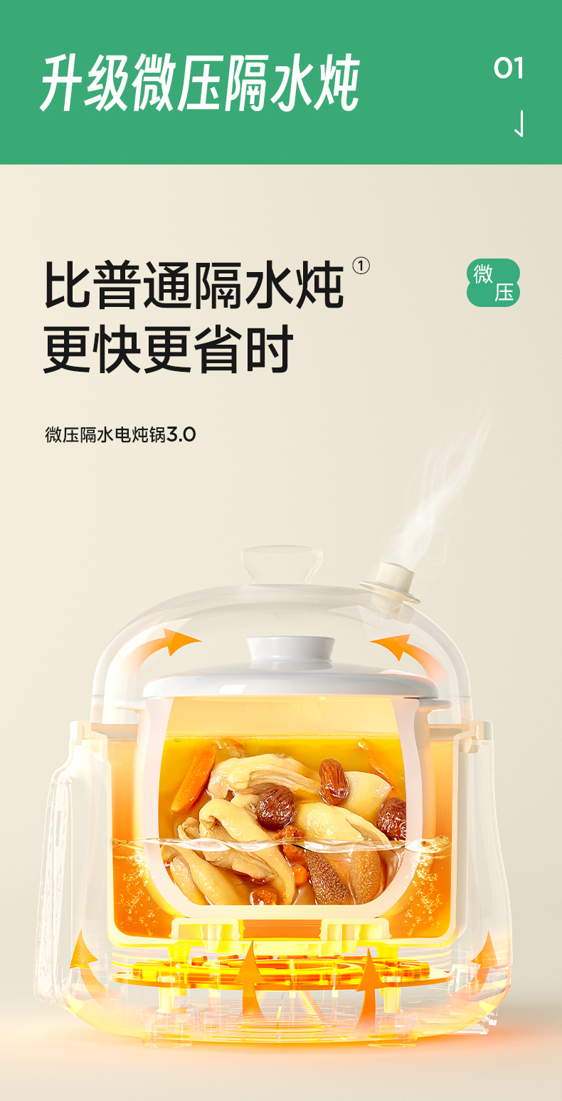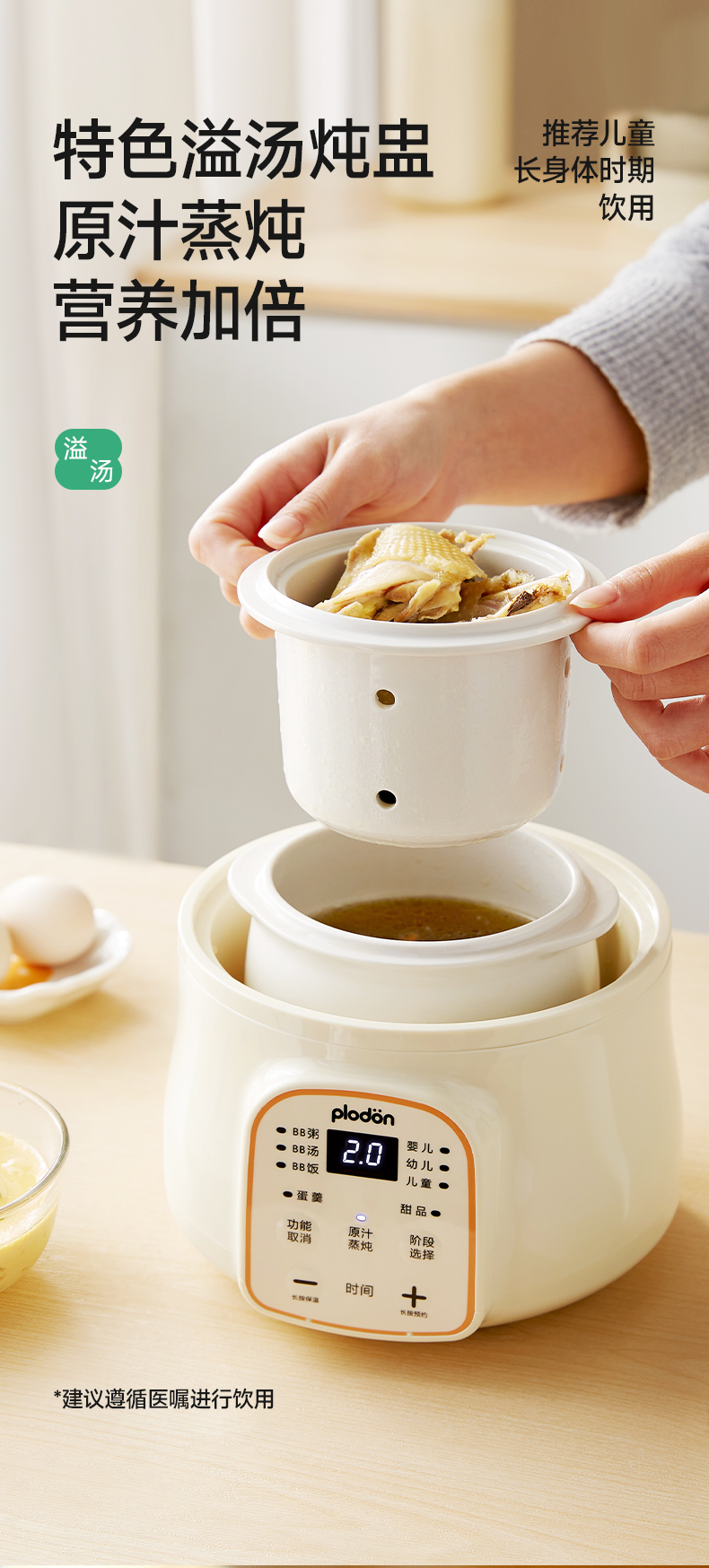 浦利顿电炖锅分月龄BB煲粥饭锅婴儿专用微压炖盅PLD-DGD8-8AWG-1