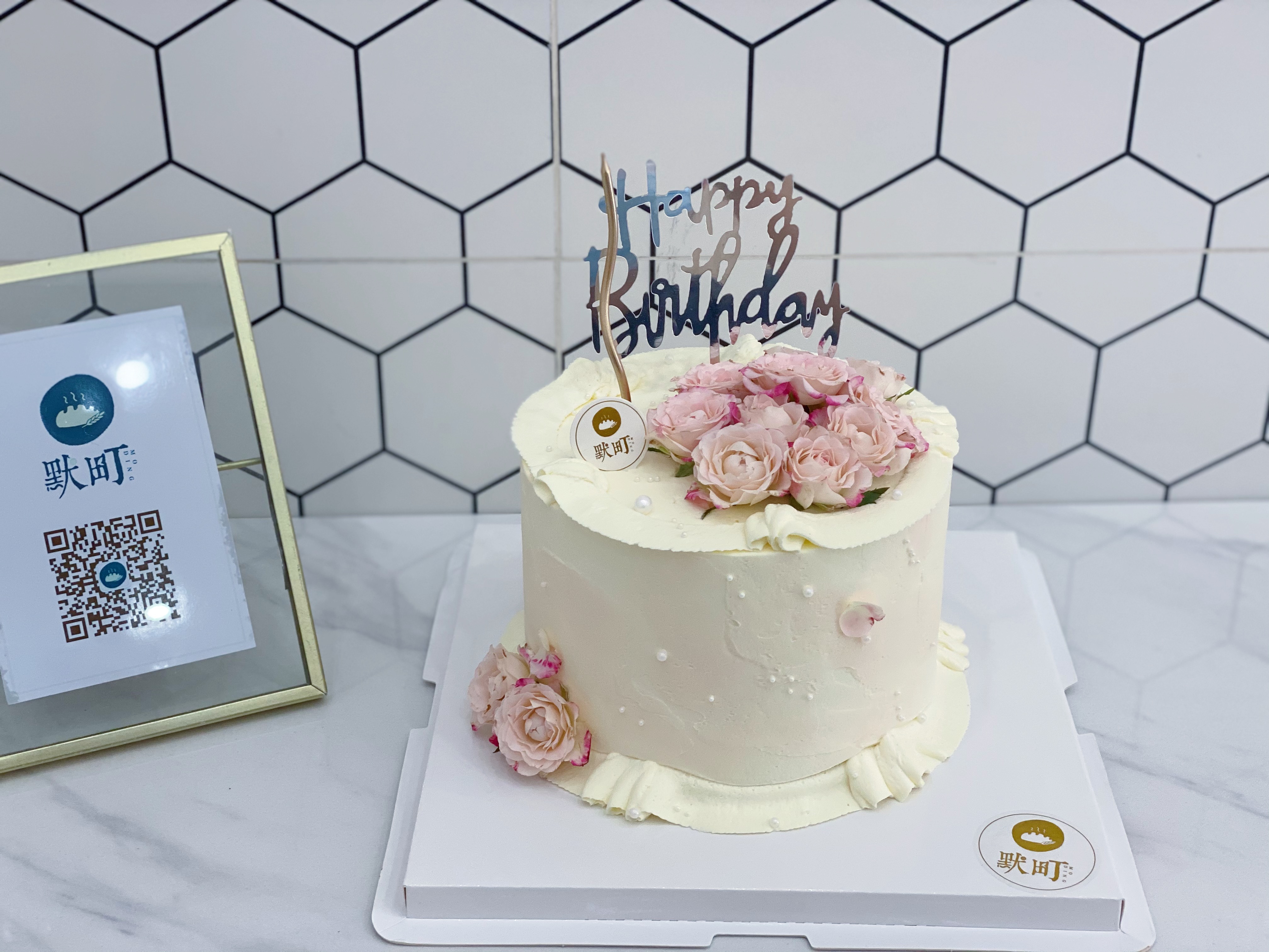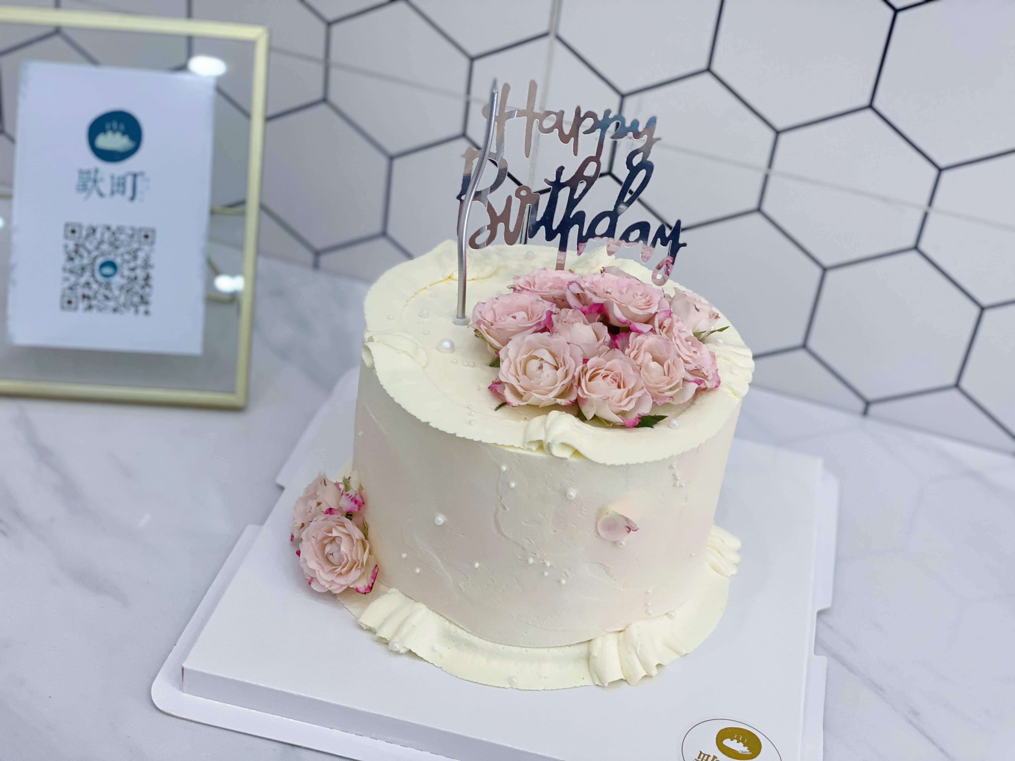 Happy birthday 纯白珍珠小粉玫瑰