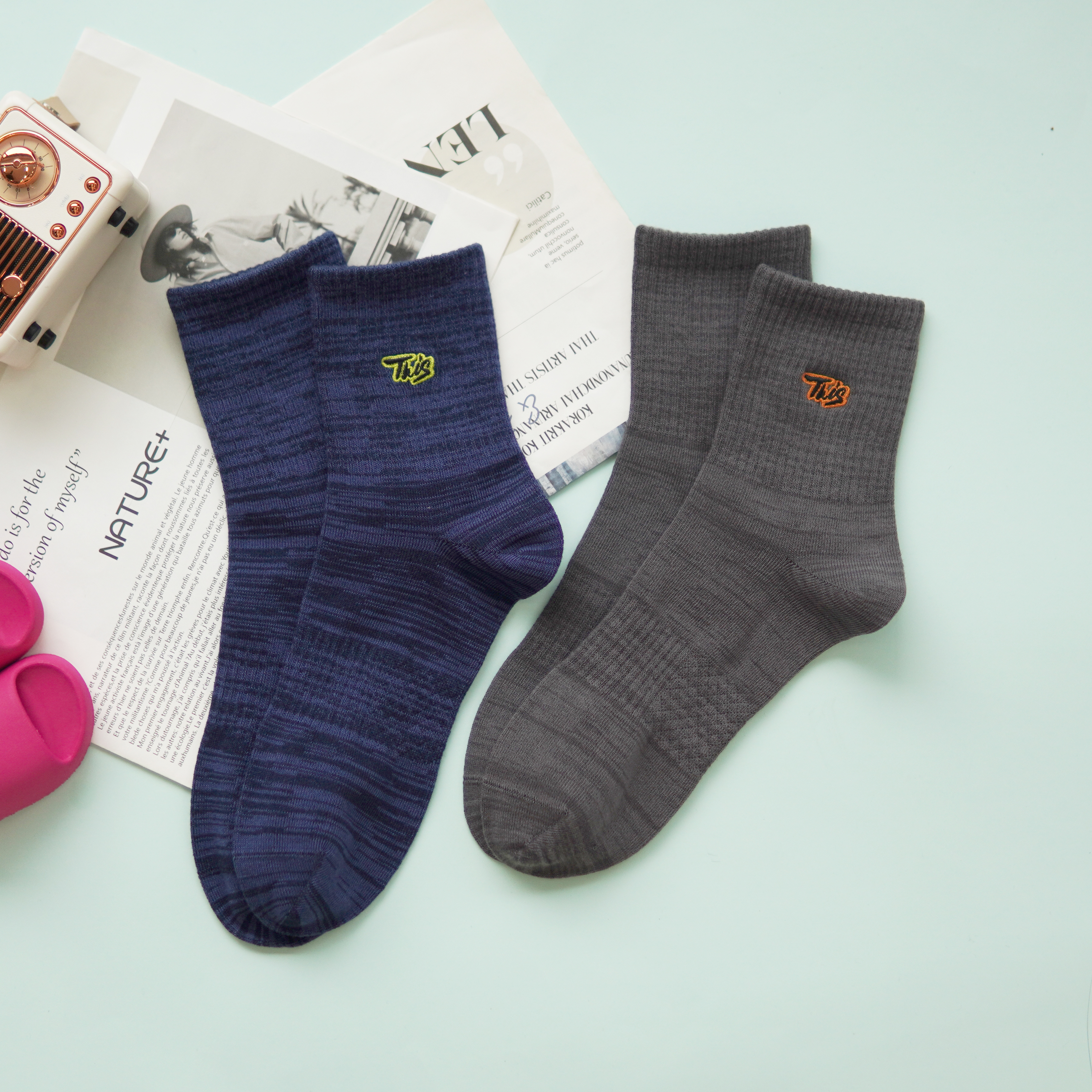 【2双装】男士时尚运动袜中长筒四季棉袜【6双6折 2521106】