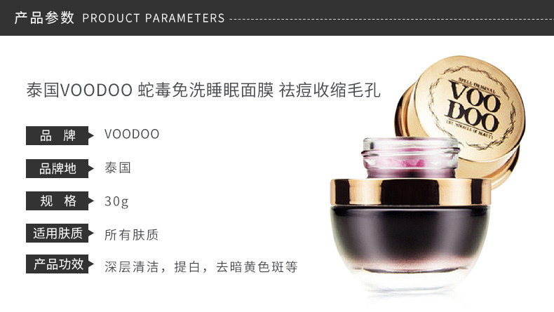 VOODOO沐朵 黑蛇毒免洗睡眠面膜 祛痘收缩毛孔 30g 泰国