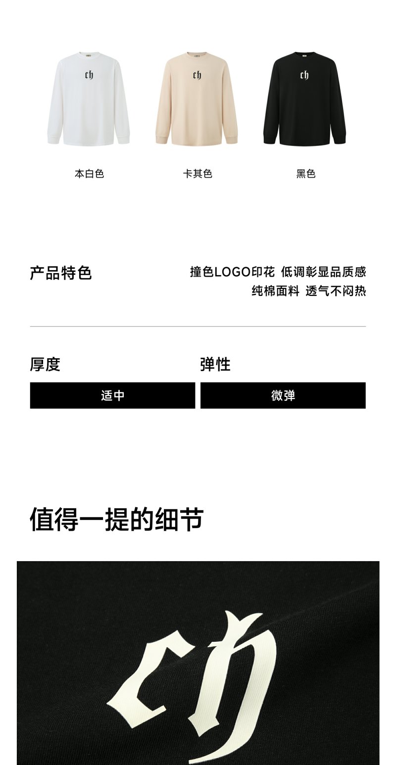 CHINISM赤尘 纯棉长袖T恤男秋季宽松简约纯色情侣打底衫男生上衣