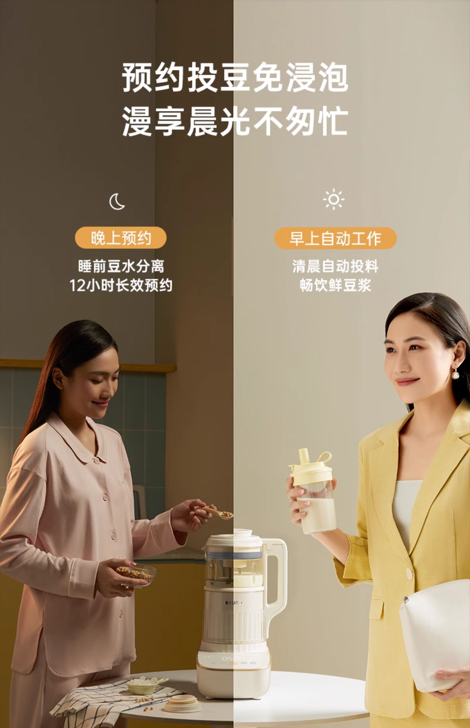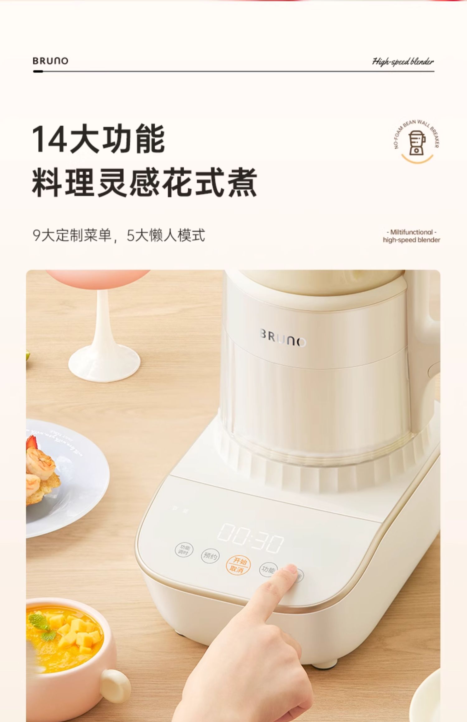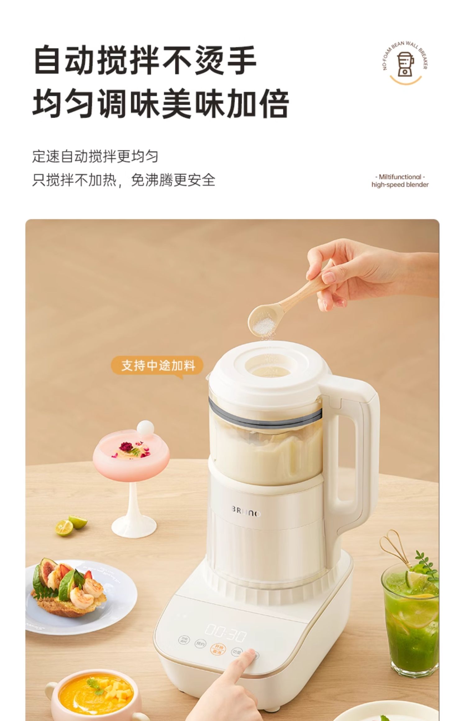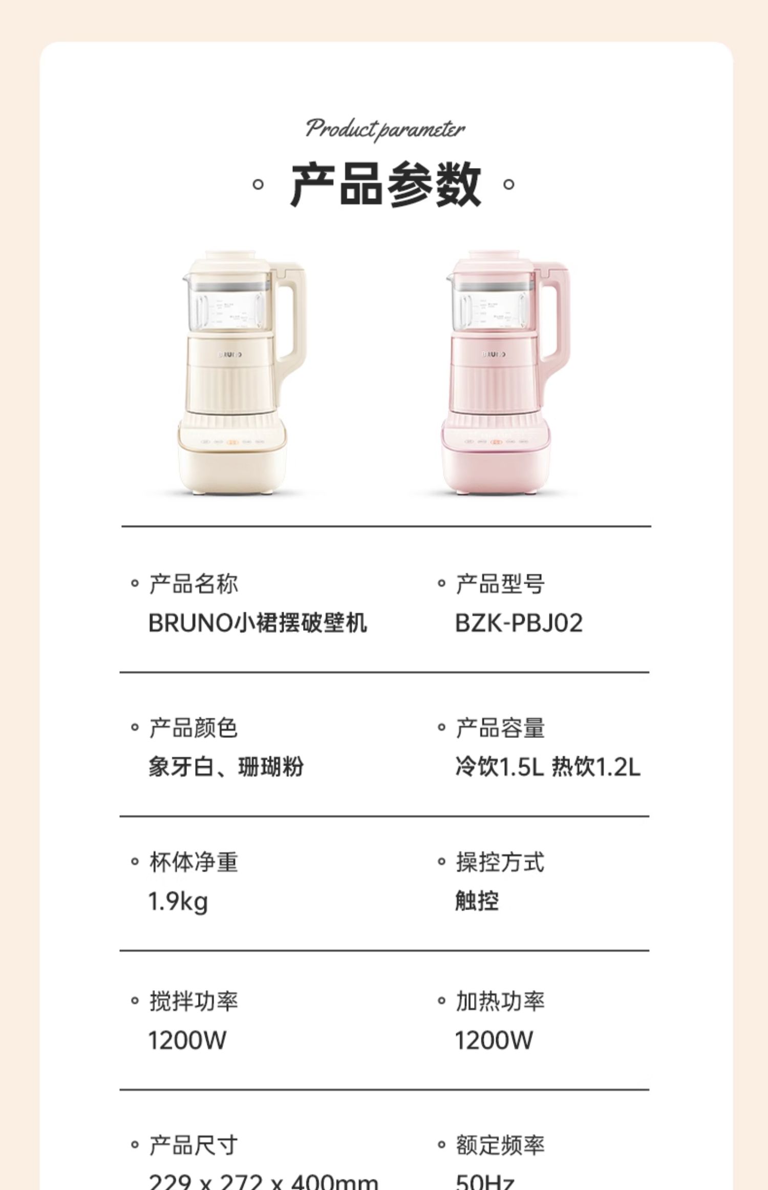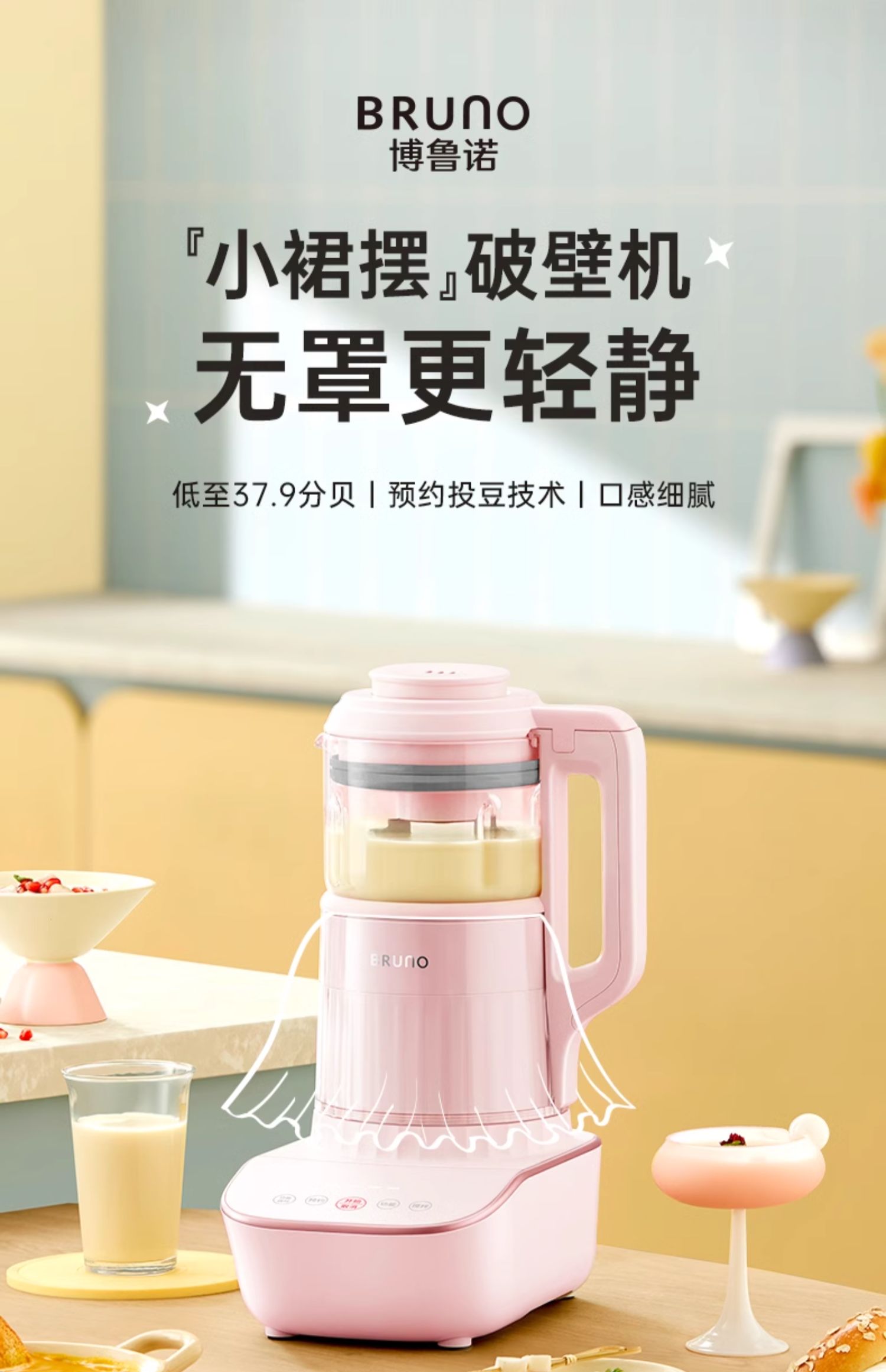 【日本小裙摆破壁机】BRUNO破壁机家用全自动豆浆机非静音多功能婴儿料理机升级新款