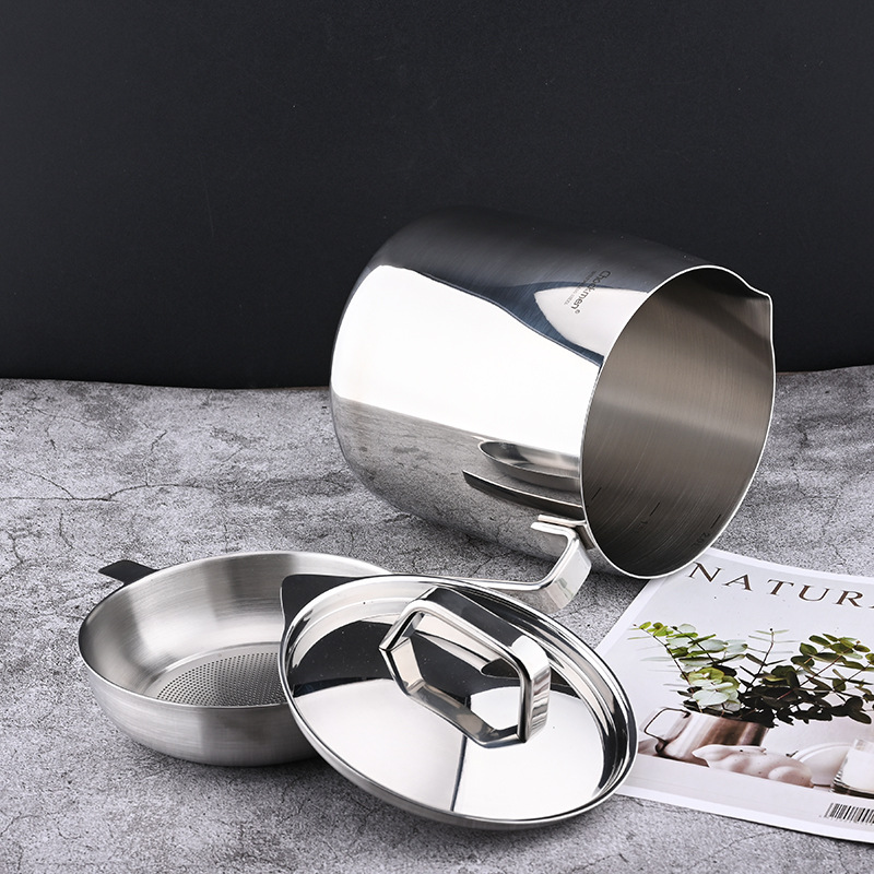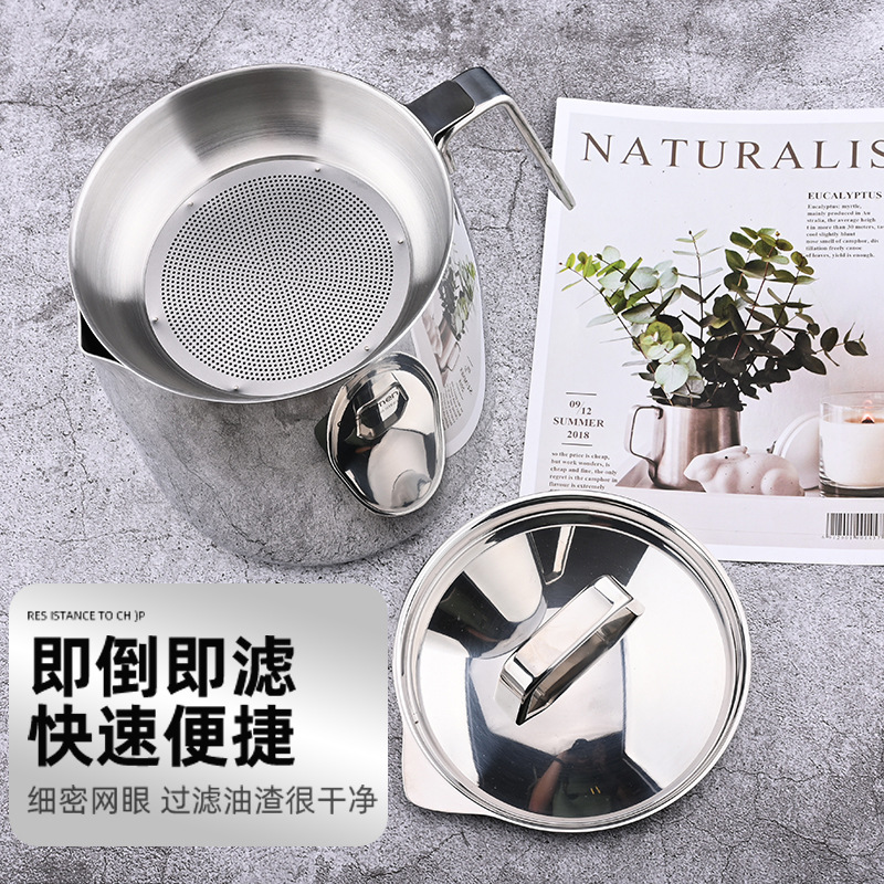 【德国贵族体验滤油壶】316不锈钢油壶猪油罐滤油壶带盖网厨房过滤油渣神器