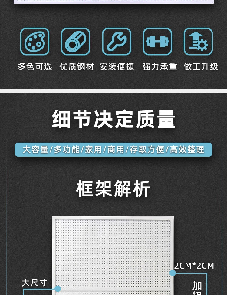 AEY洞洞板置物架厨房电竞墙上储物饰品架子 40*100带边框送挂钩20个 100033859773