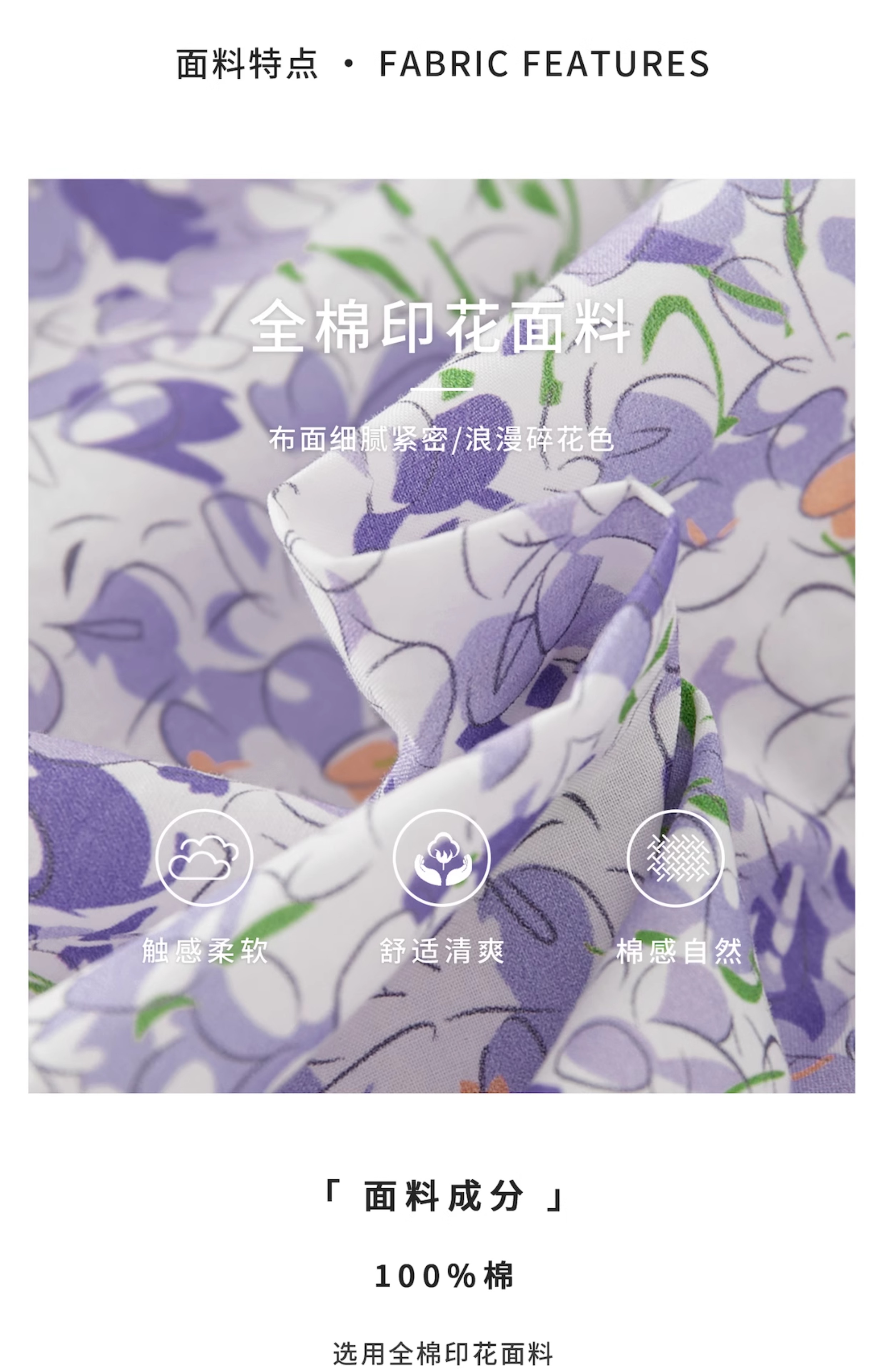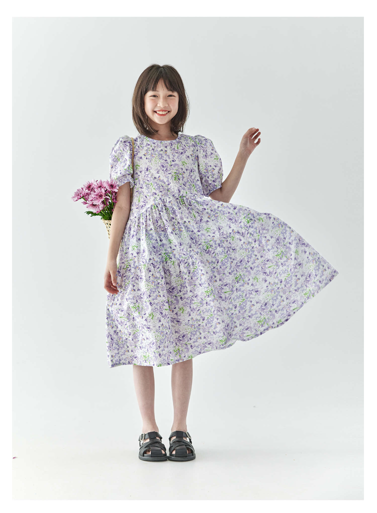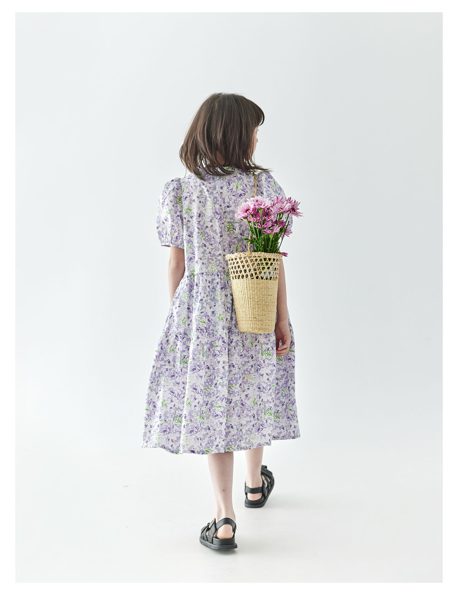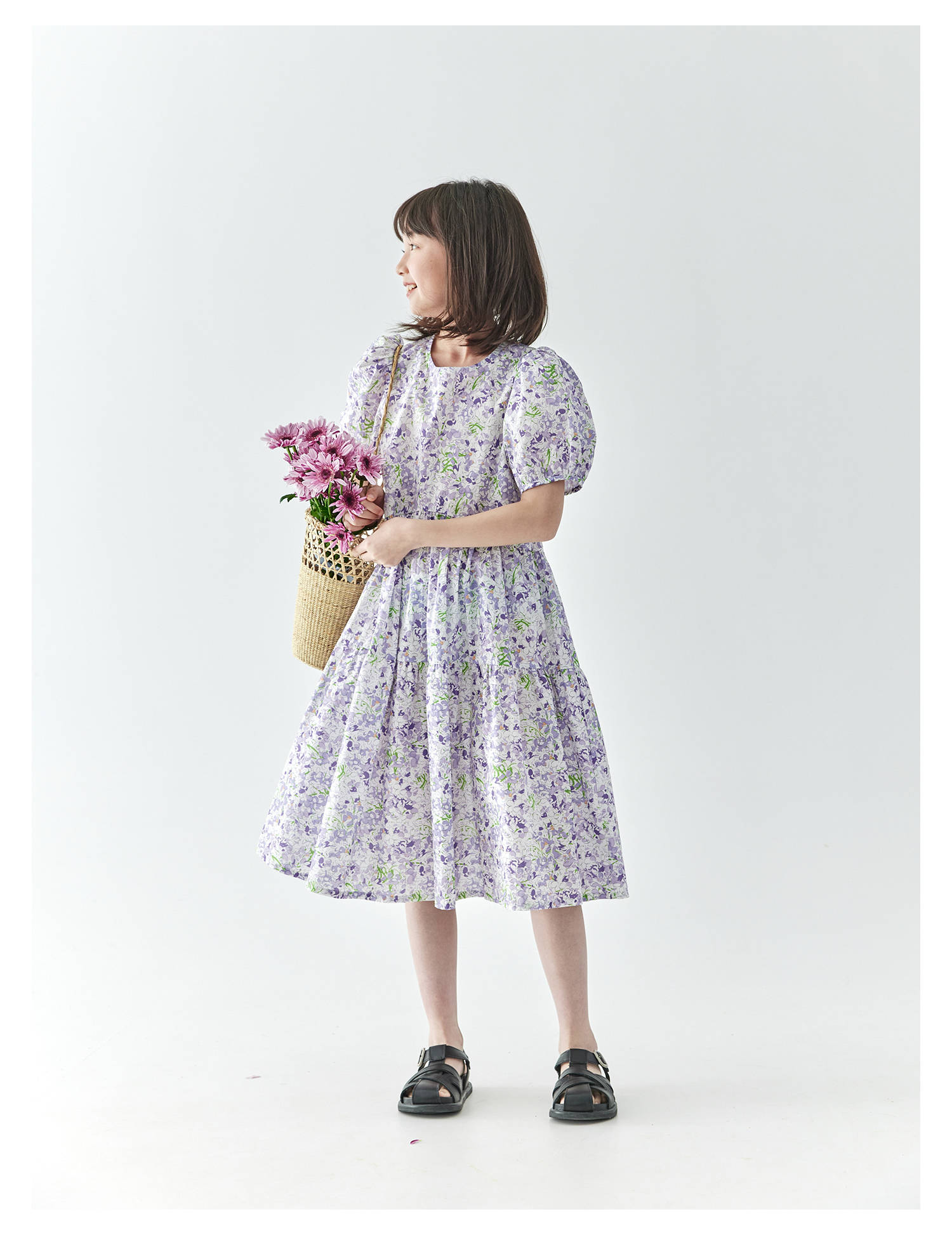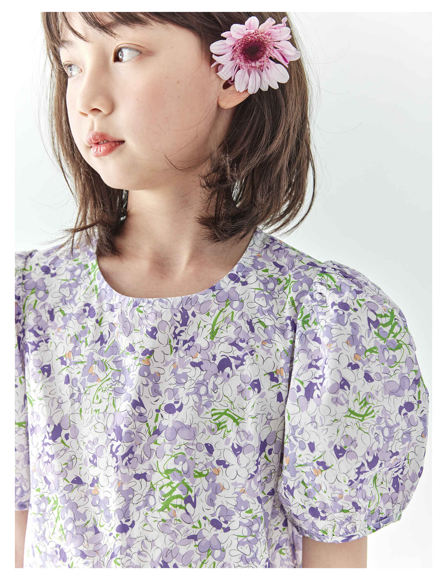 棵初2025夏季新款亲子中大女童碎花连衣裙纯棉紫色蓬蓬裙