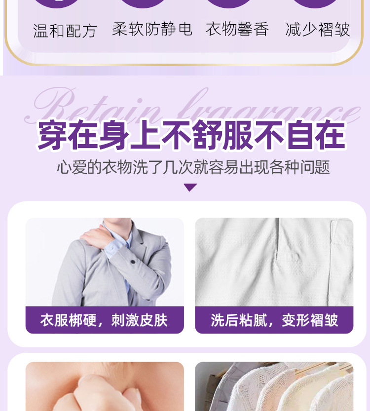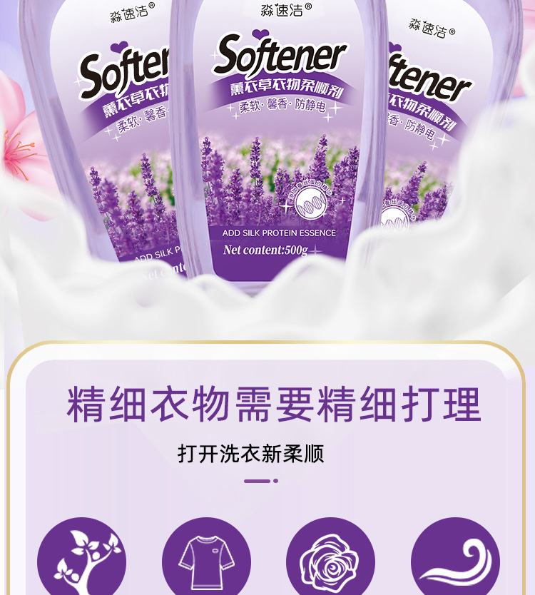 【薰衣草衣物柔顺剂】衣服留香防静电500ml衣服柔顺护理剂量