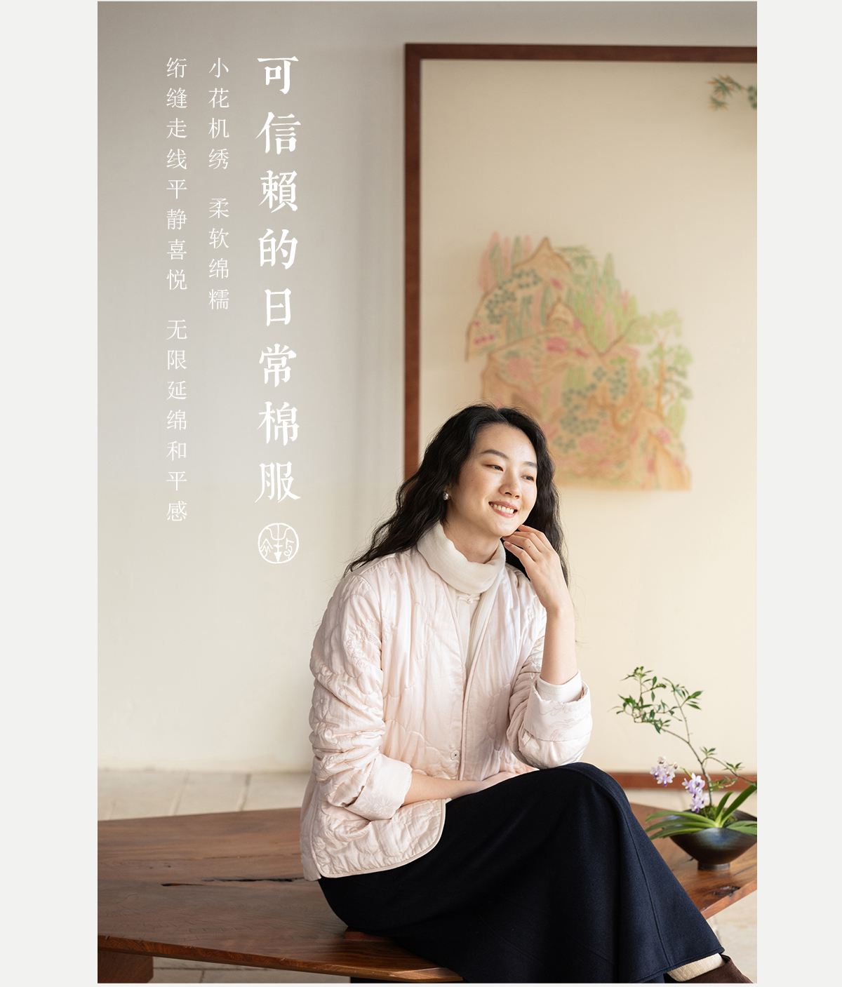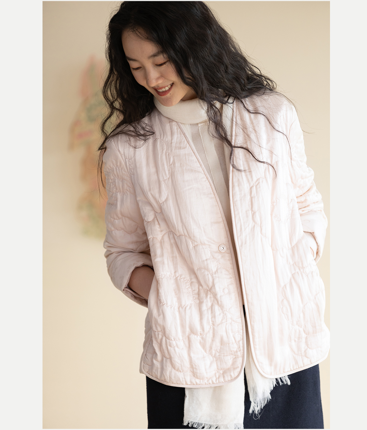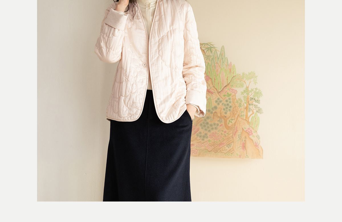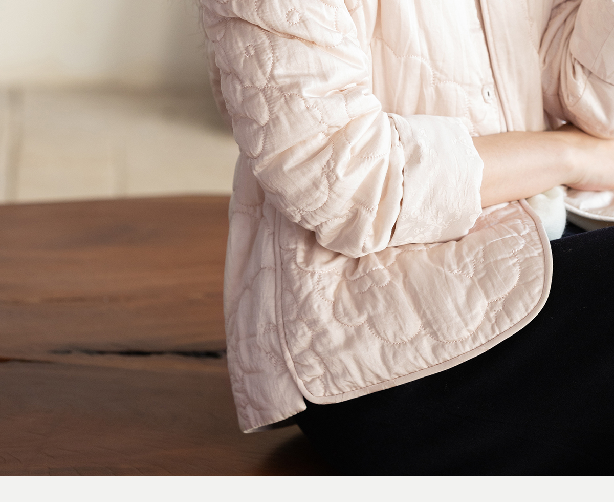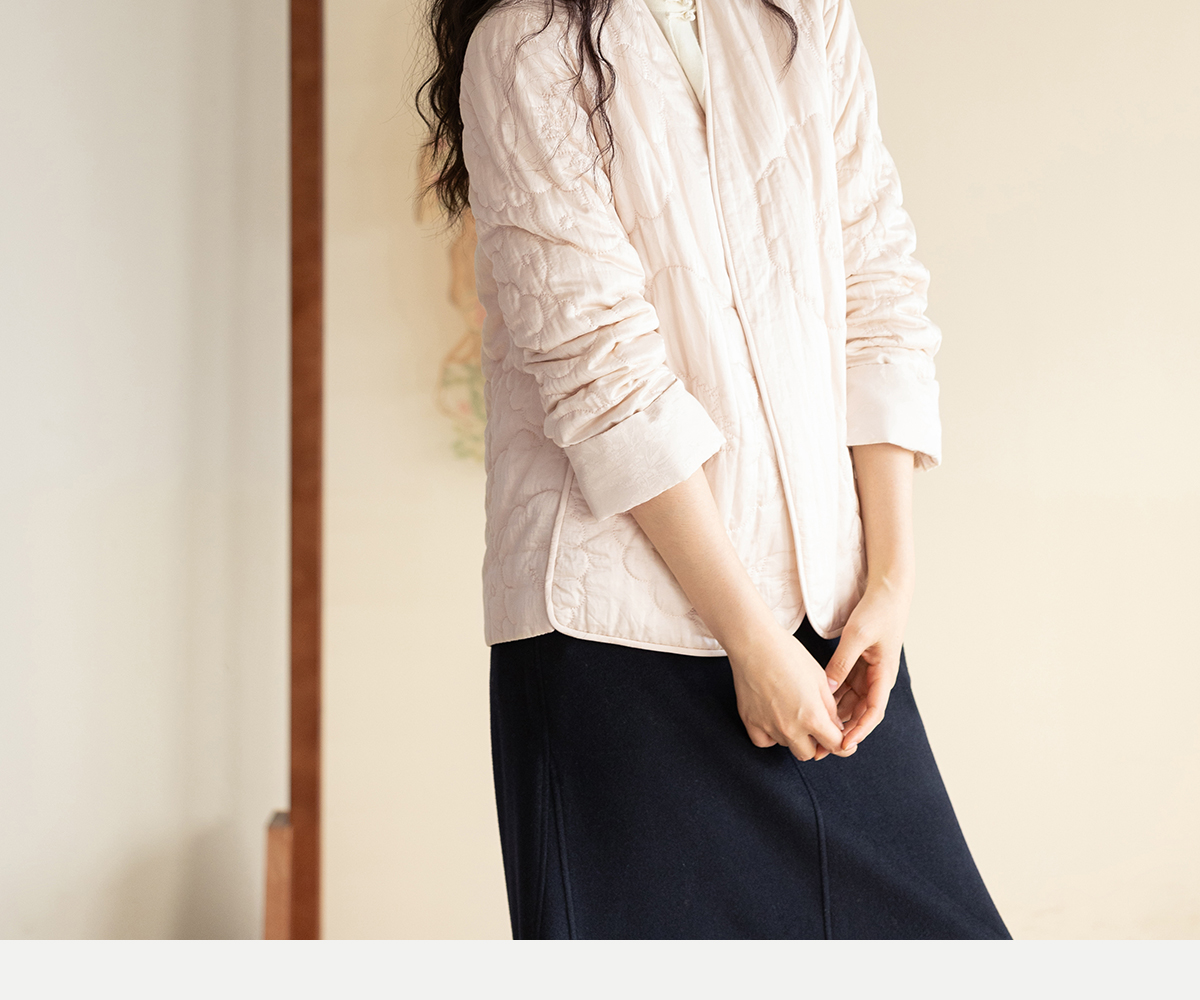 牧衣游原创 机绣丝棉棉衣新款素雅粉色宽松百搭文艺棉服 烟霞渺