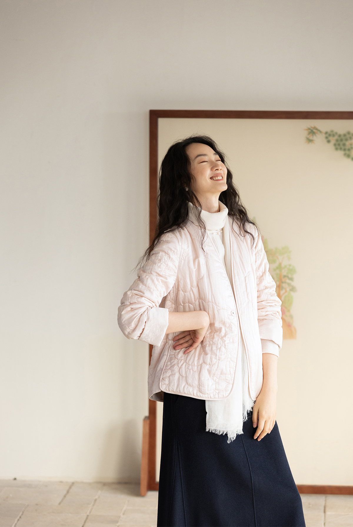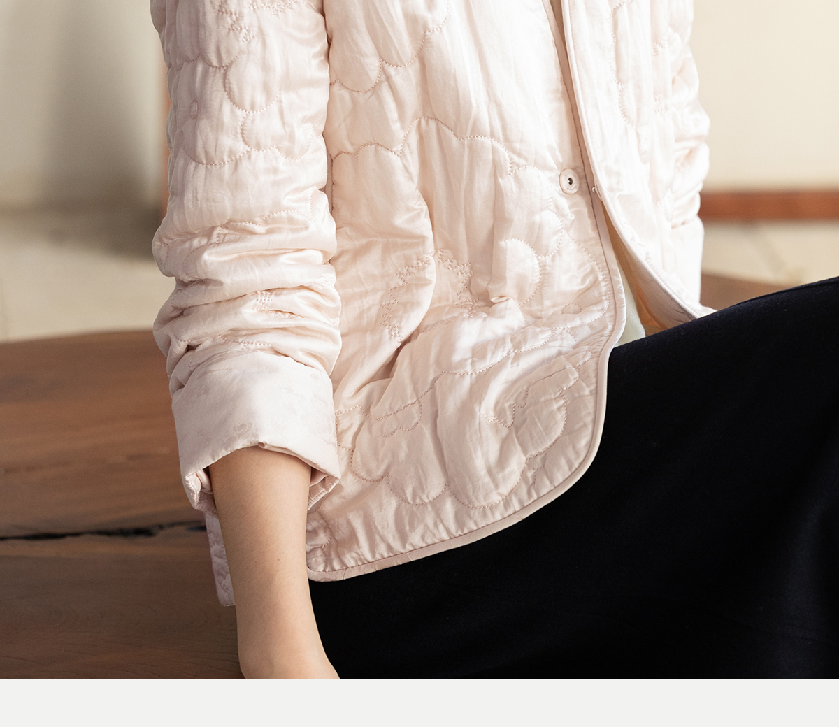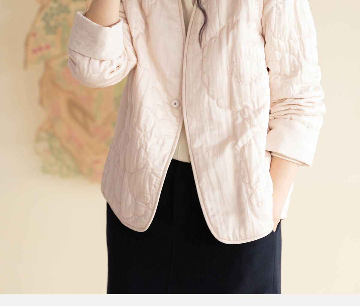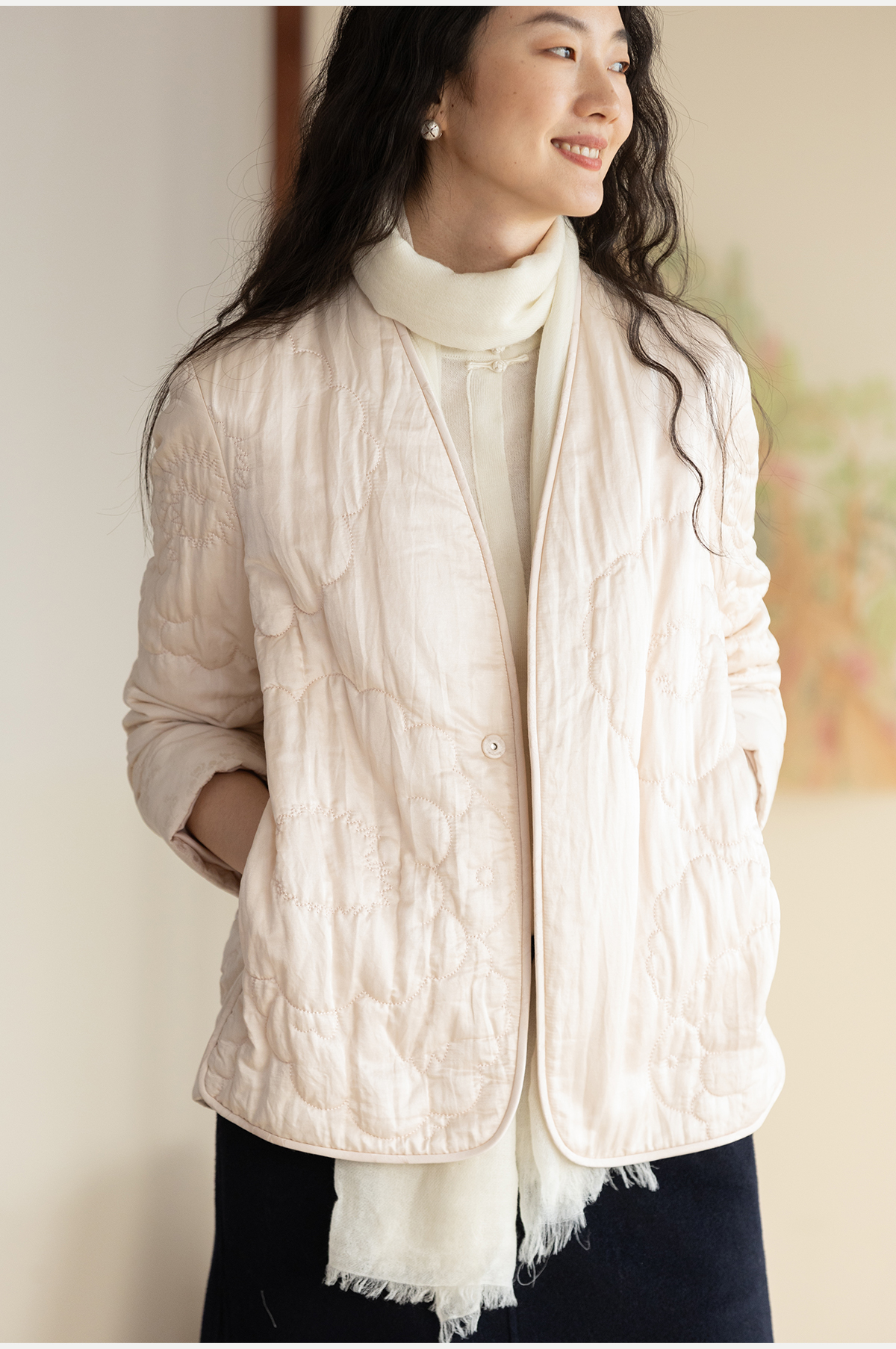 牧衣游原创 机绣丝棉棉衣新款素雅粉色宽松百搭文艺棉服 烟霞渺