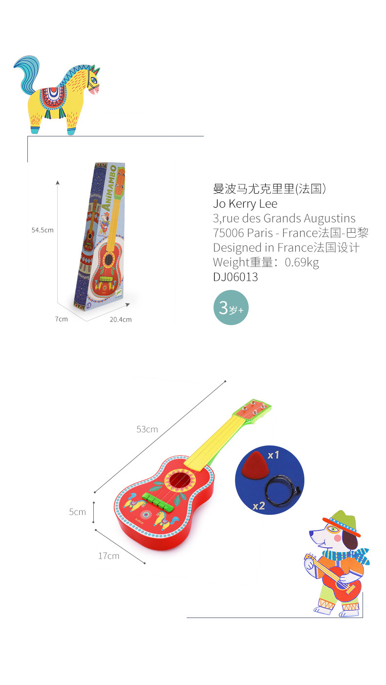 DJECO当家花旦曼波马尤克里里儿童音乐启蒙玩具尤克里里