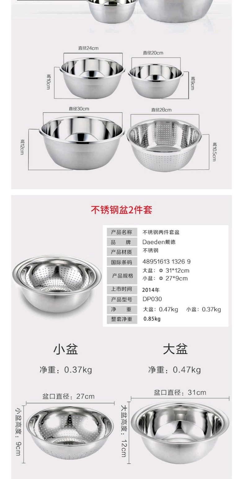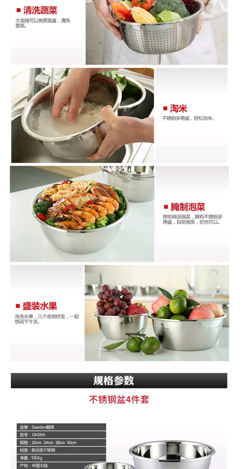 德国戴德不锈钢盆套装家用加厚厨房多用盆洗菜盆沥水盆打蛋和面盆4件套
