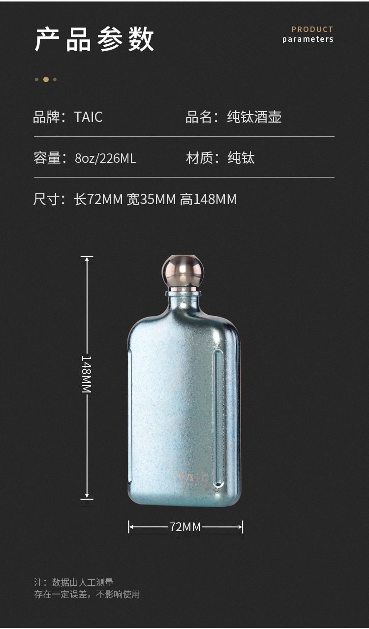 TAIC太可纯钛小酒壶随身迷你外带户外高档家用白酒壶便携式226ml
