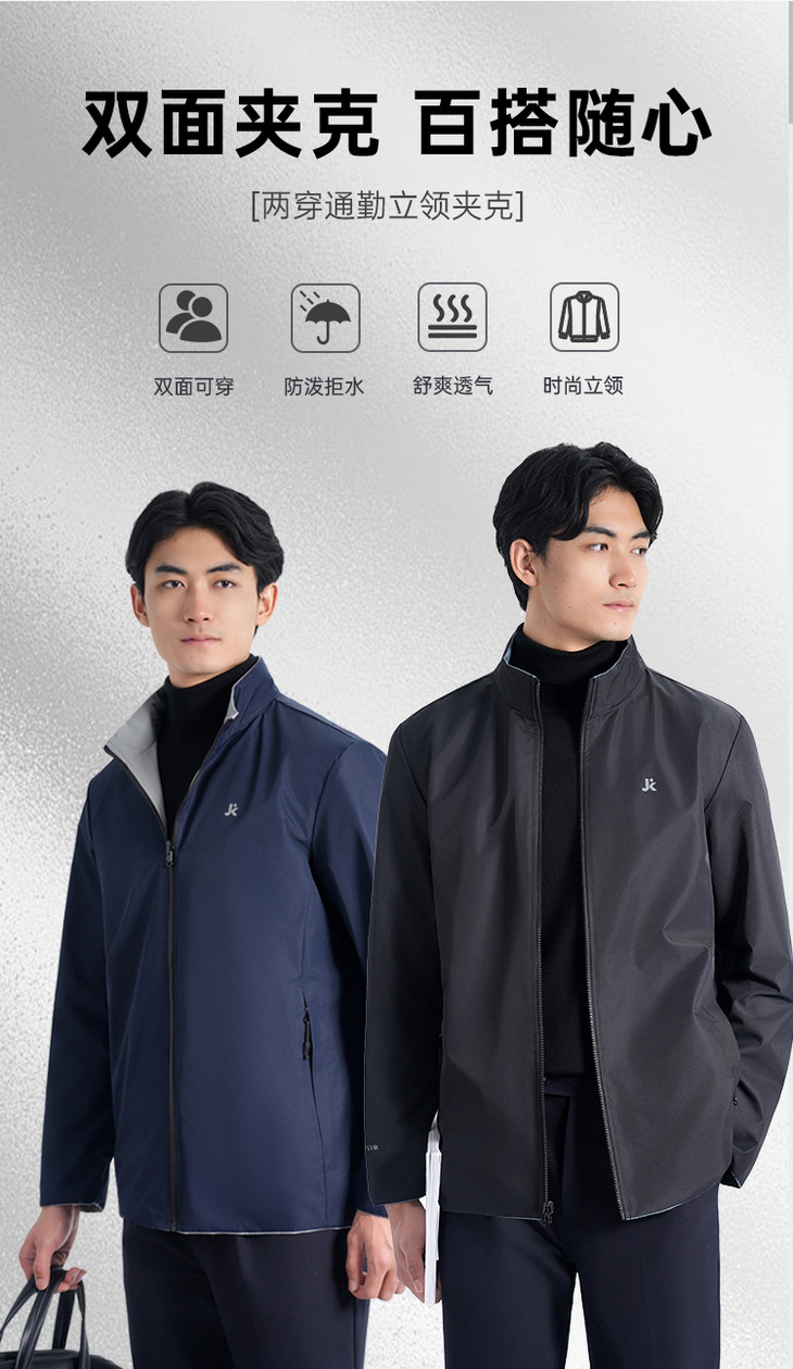 【两穿通勤立领夹克/清仓】防泼水双面穿商务夹克通勤休闲上衣外套