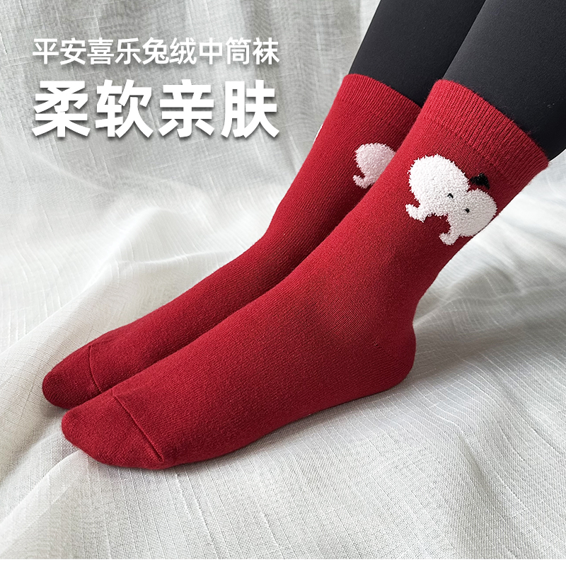 壁虎瑜伽【2510WZ439】平安喜乐兔绒中筒瑜伽袜【5天发货】
