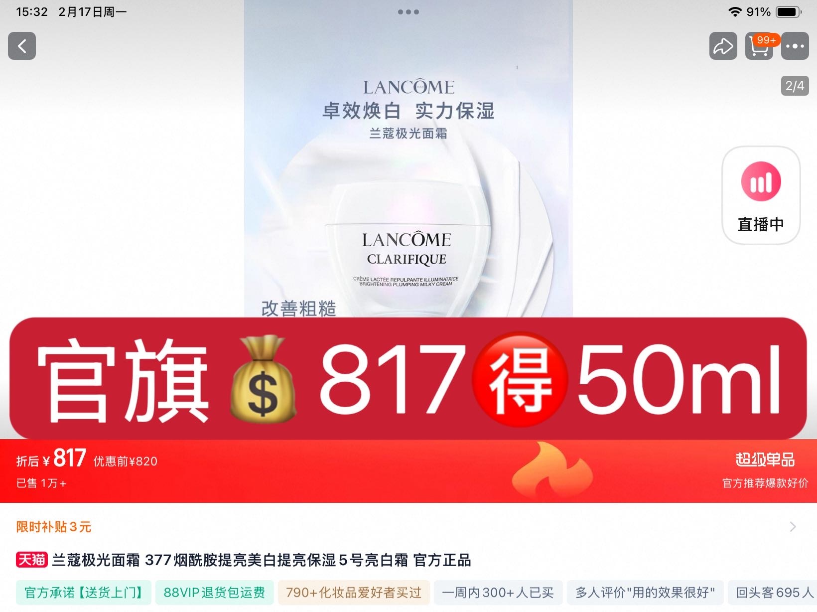 【9.7王炸割肉价】兰蔻极光面霜15ml*3(效期至26.7-27年随机发)