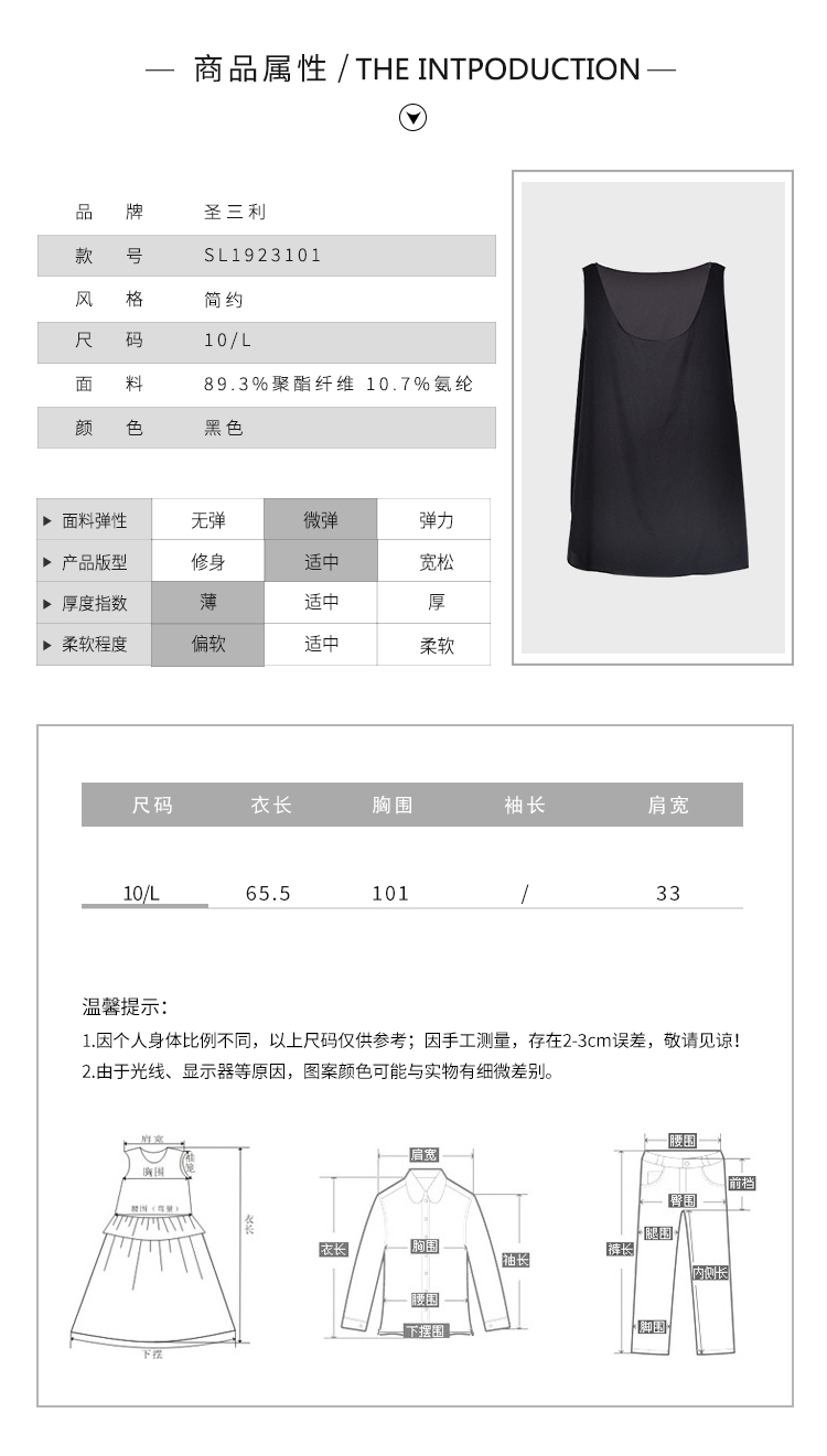 圣三女装 百搭纯色圆领吊带背心上衣SL1923101