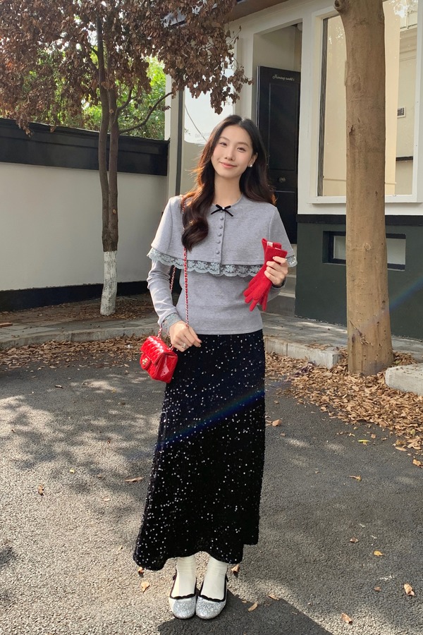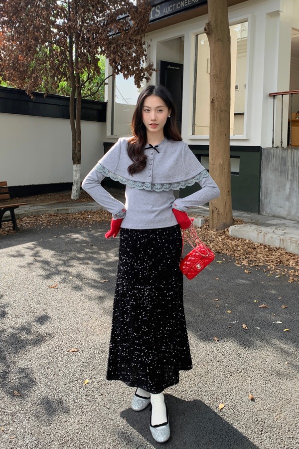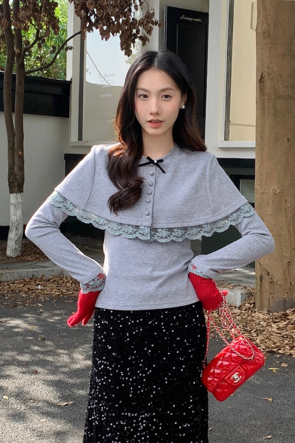 amadella 温柔风拼接蕾丝斗篷+内搭针织上衣 21983