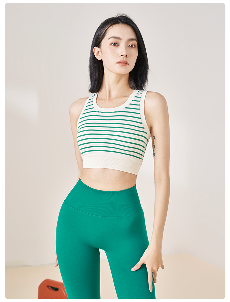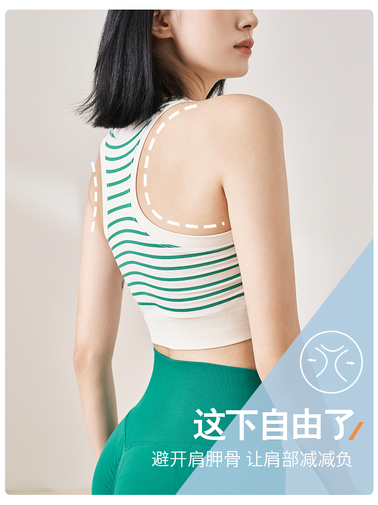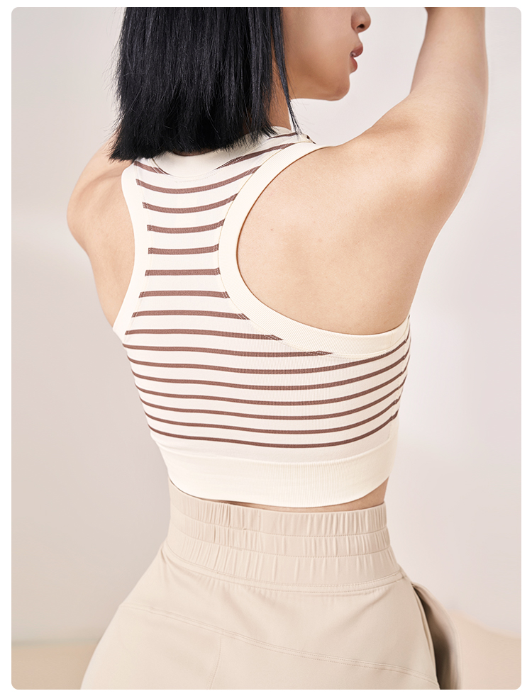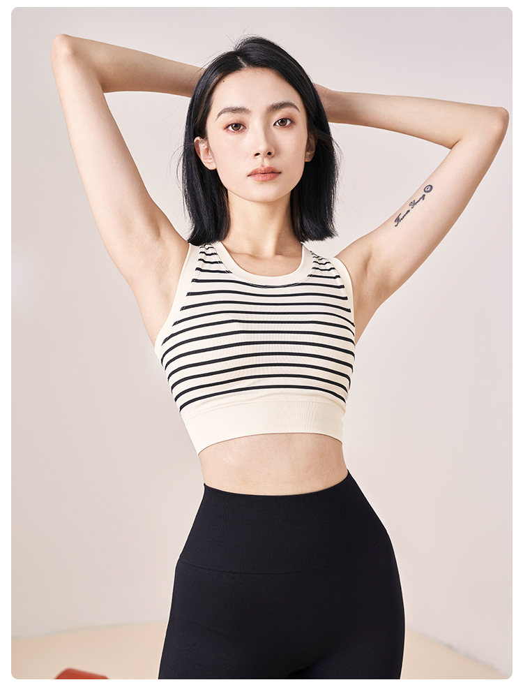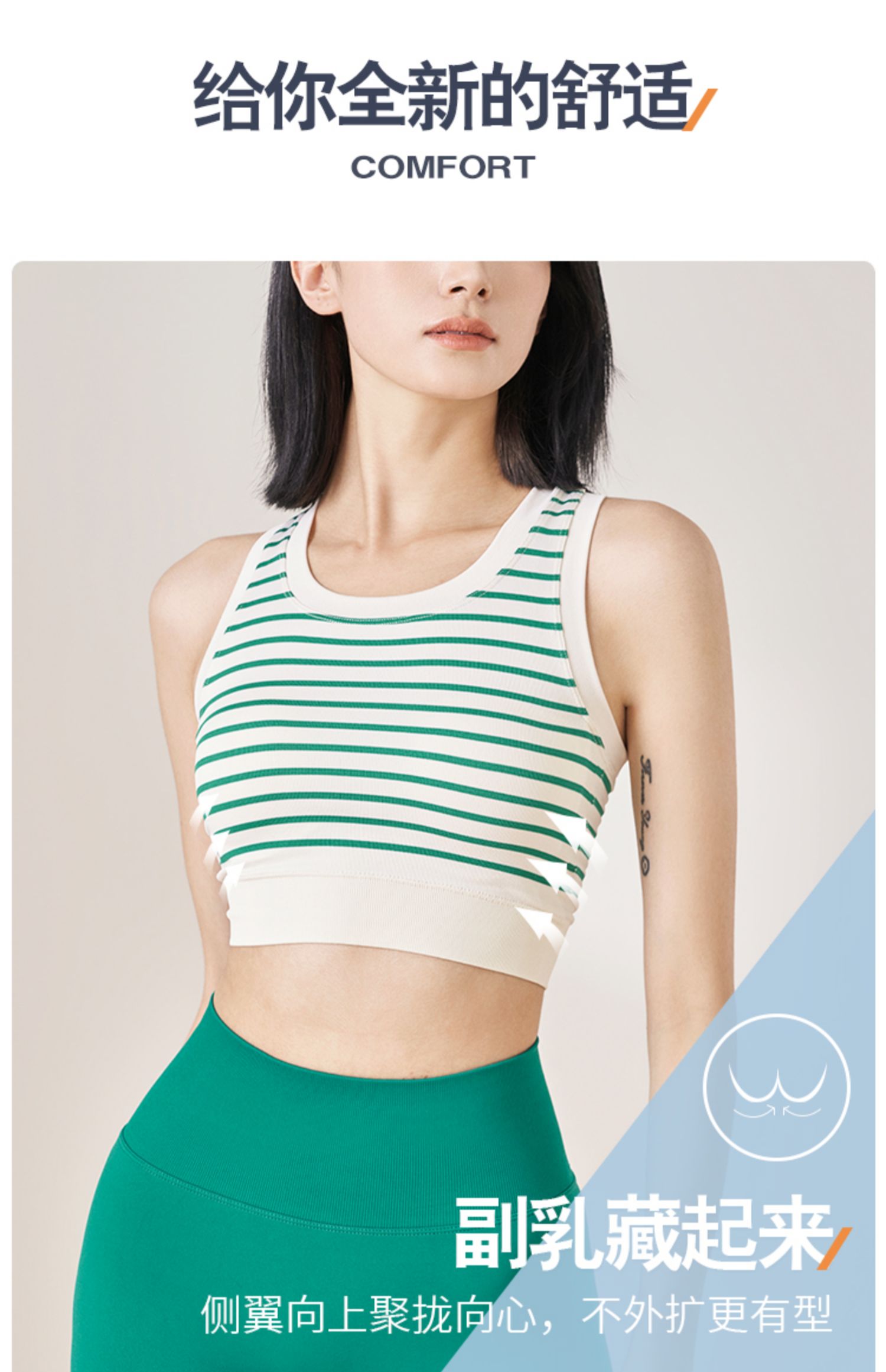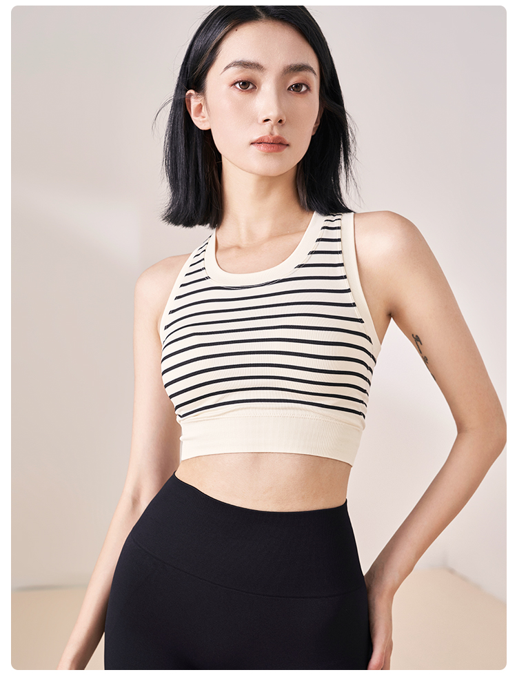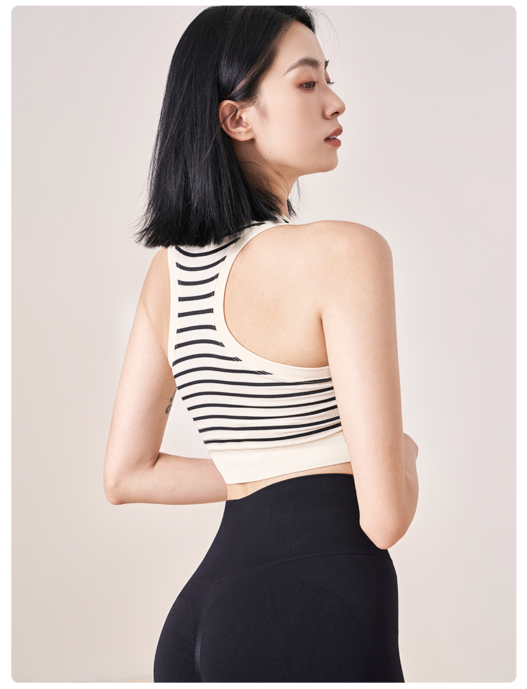beemen运动内衣女夏季薄款一体式防震跑步健身高级弹力条纹瑜伽背心外穿 只穿一件 固定车缝杯 运动不移位