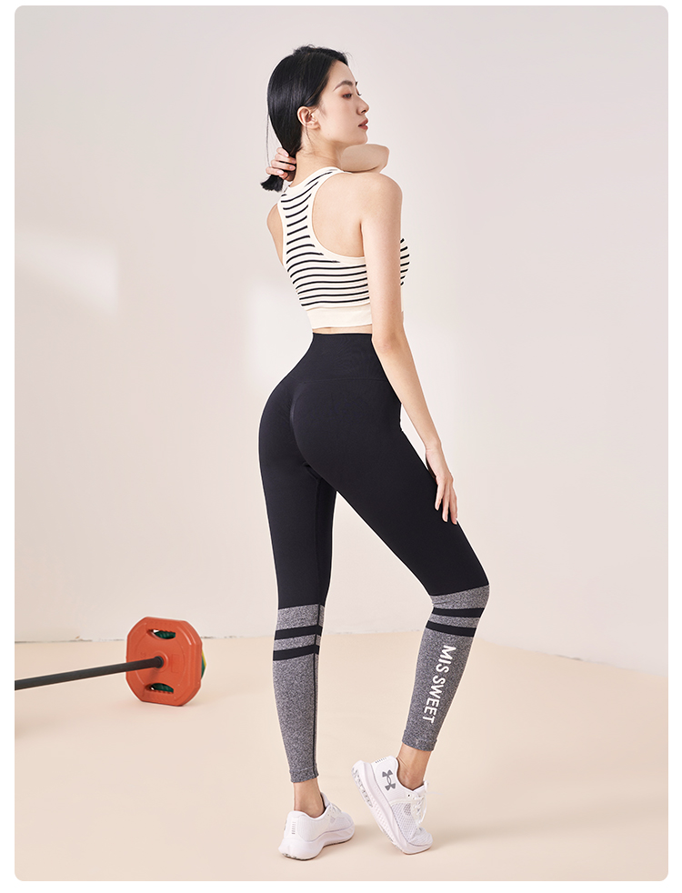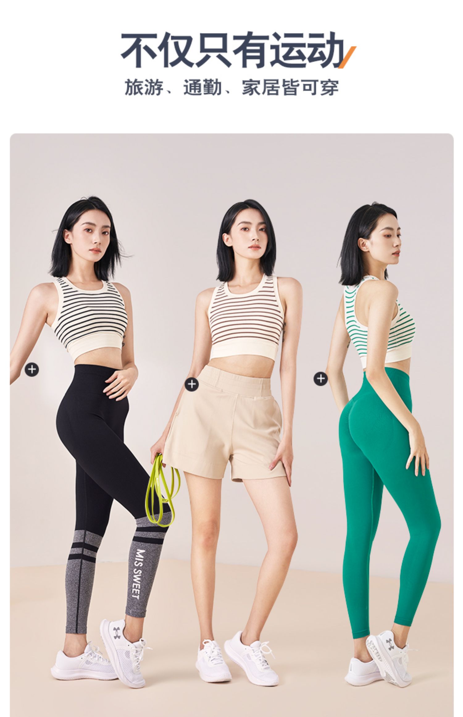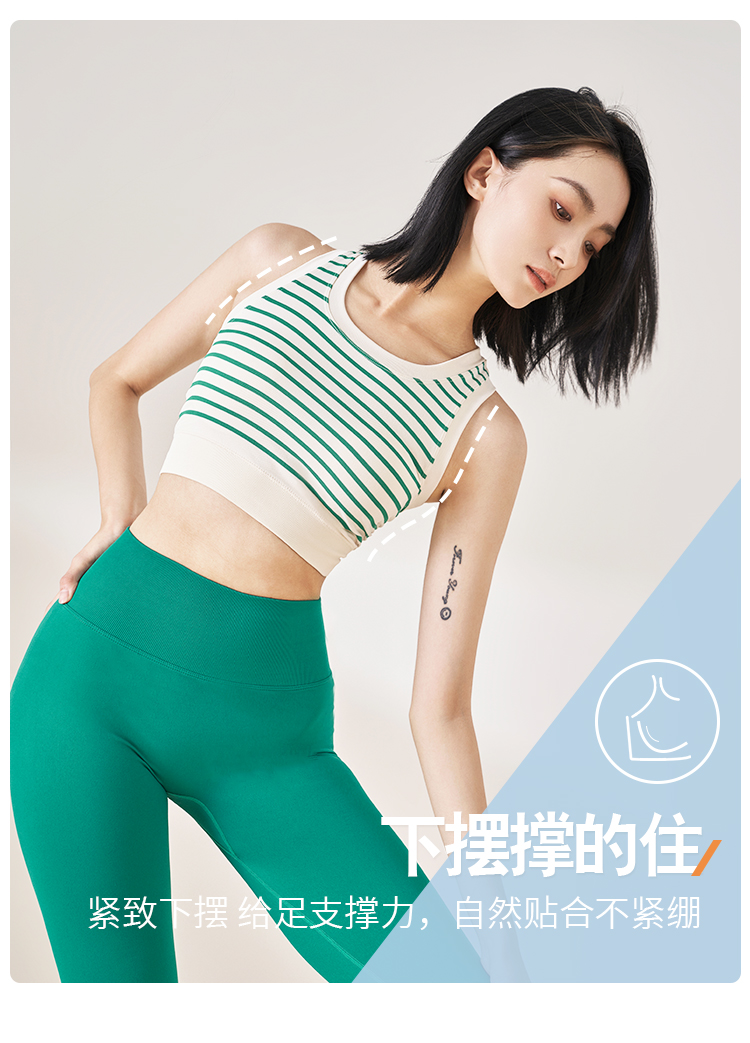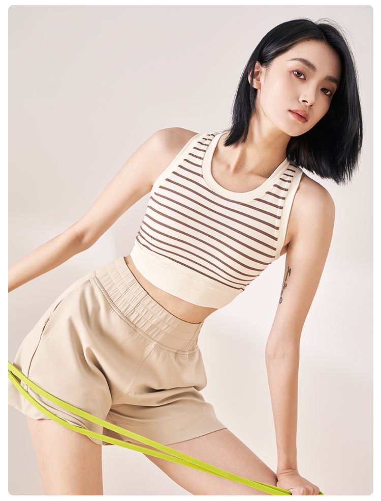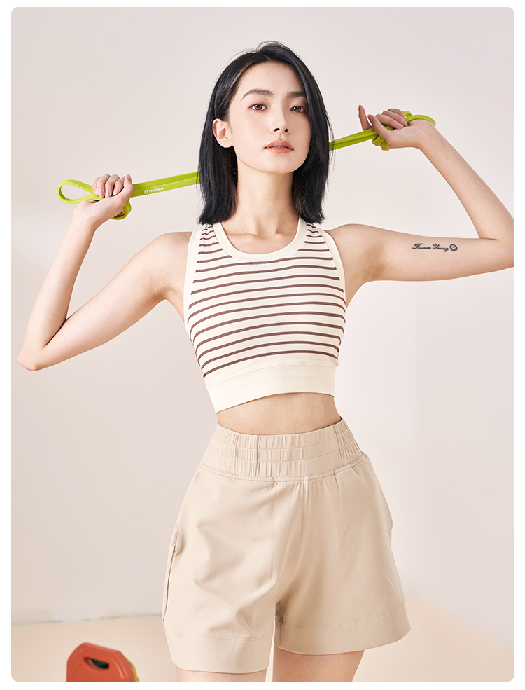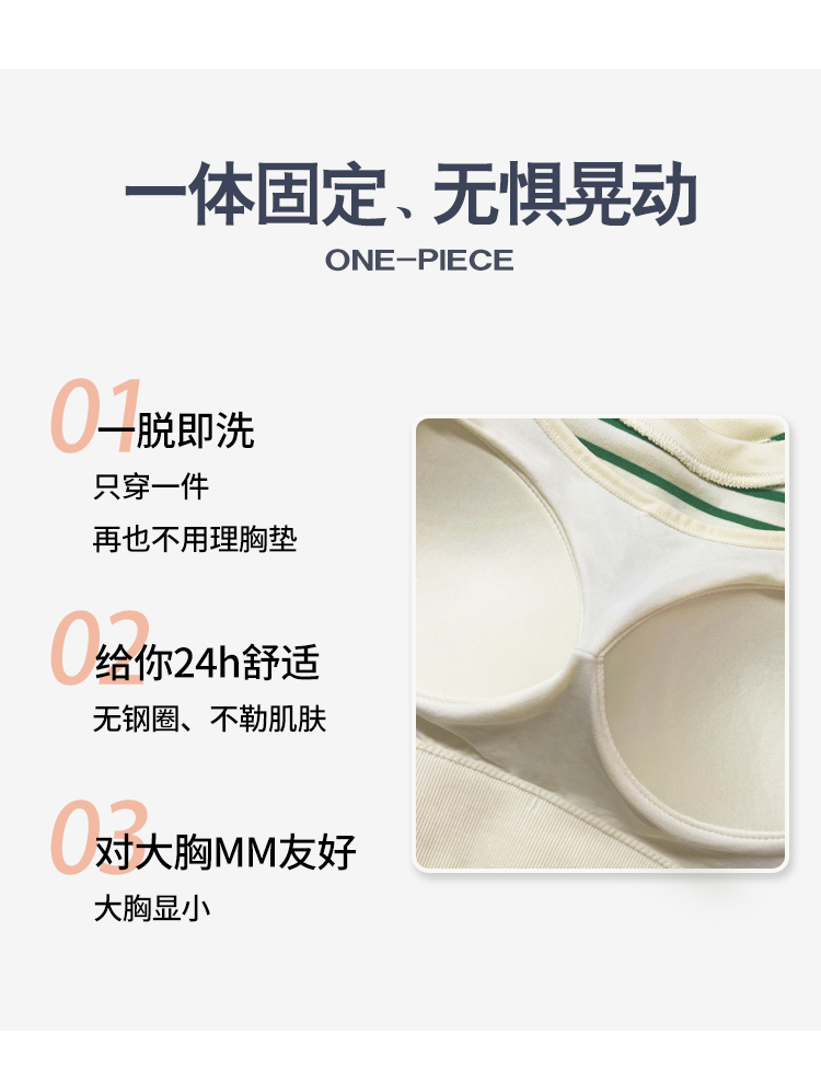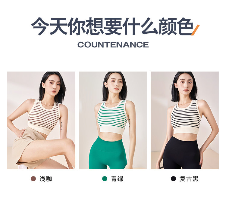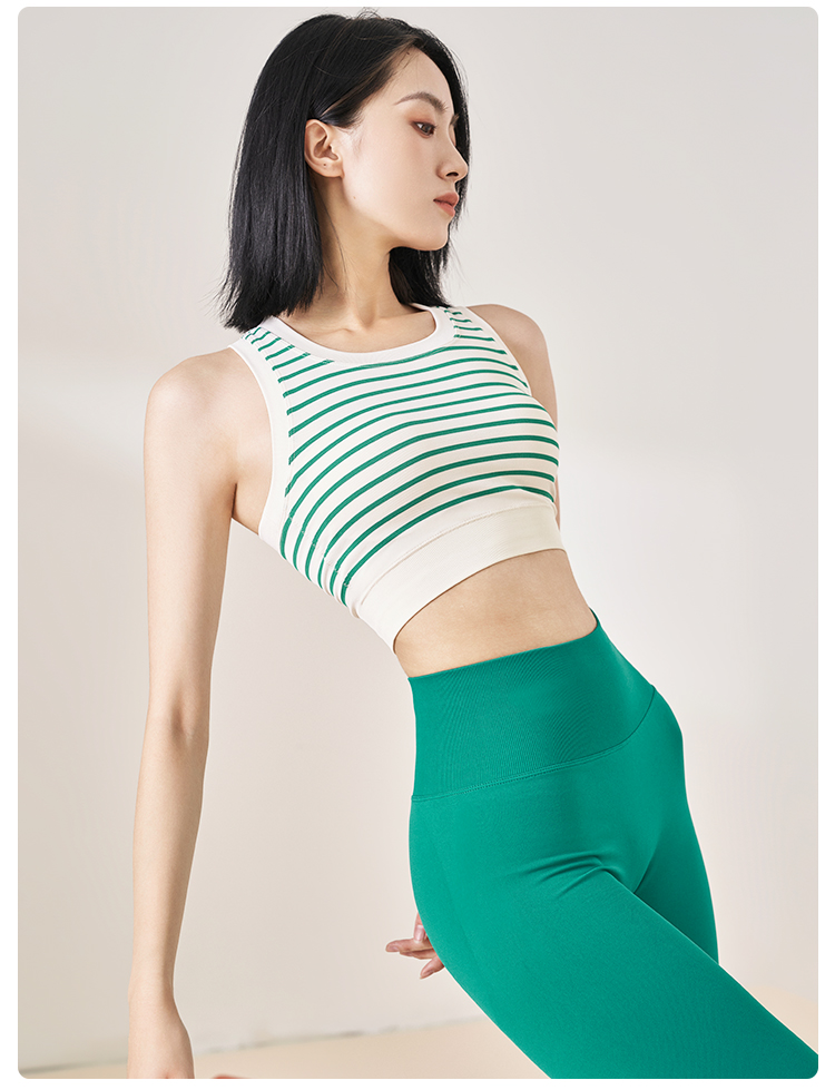 beemen运动内衣女夏季薄款一体式防震跑步健身高级弹力条纹瑜伽背心外穿 只穿一件 固定车缝杯 运动不移位