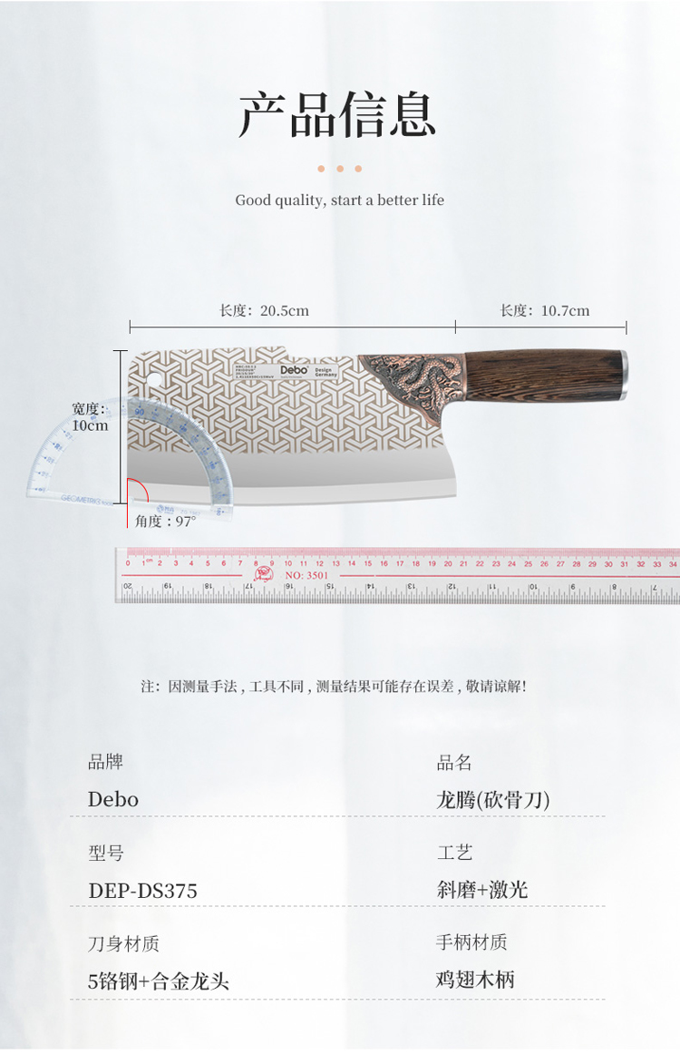 材质:5铬钢+合金龙头+鸡翅木柄