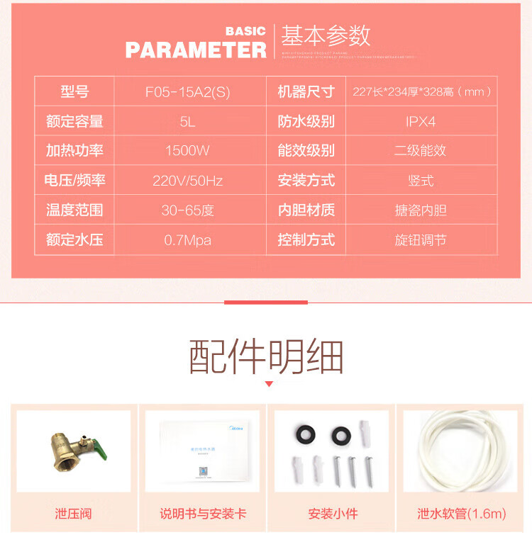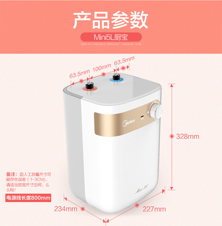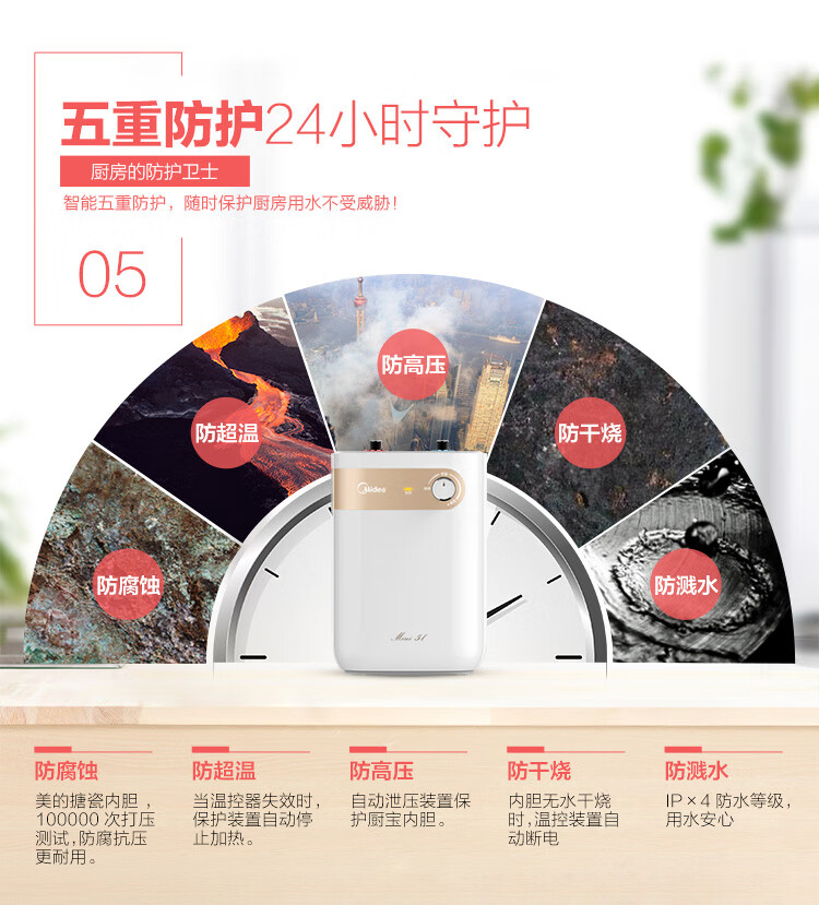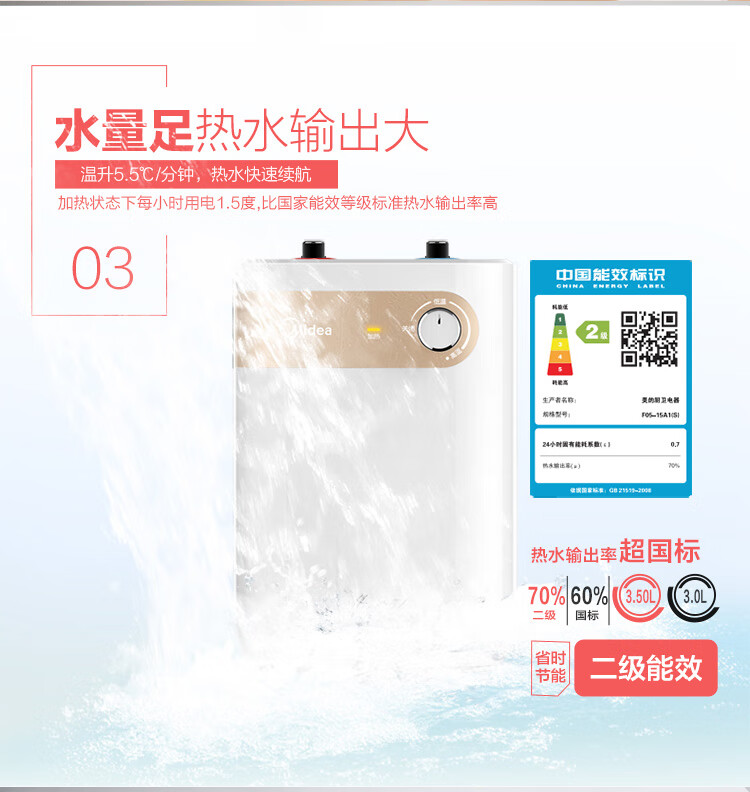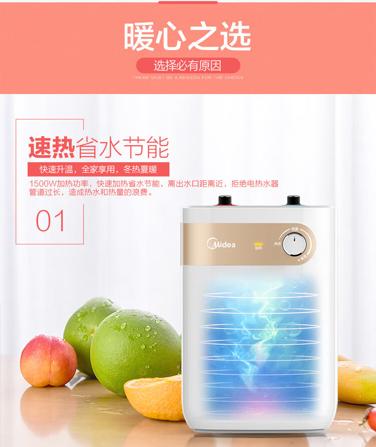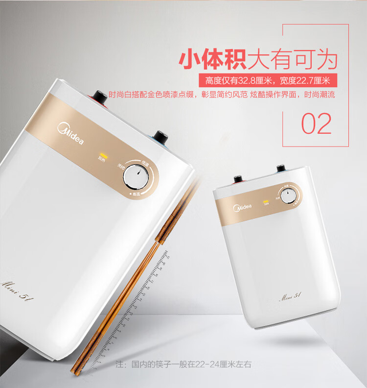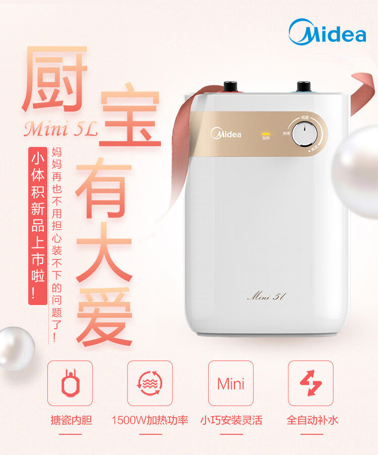 【门店同款】美的小厨宝5升迷你上出水小厨宝 蓝钻内胆安全防护 小尺寸1500W速热 全自动补水 F05-15A2(S)