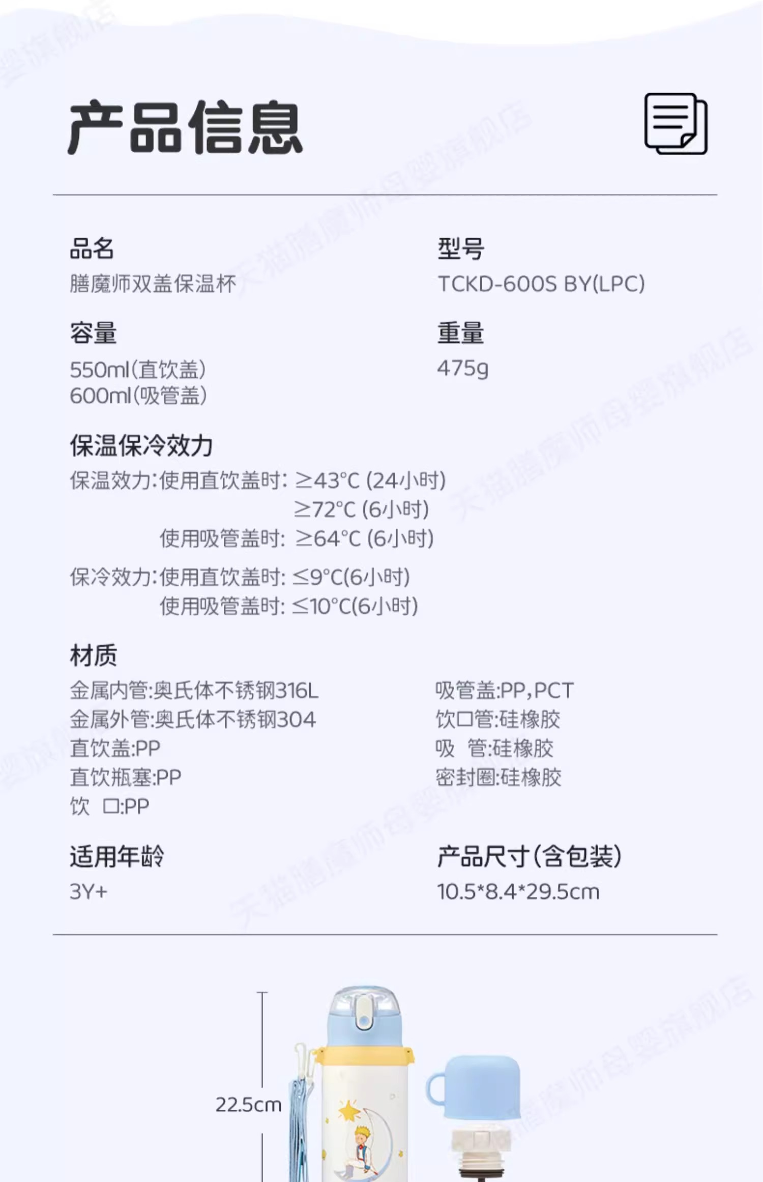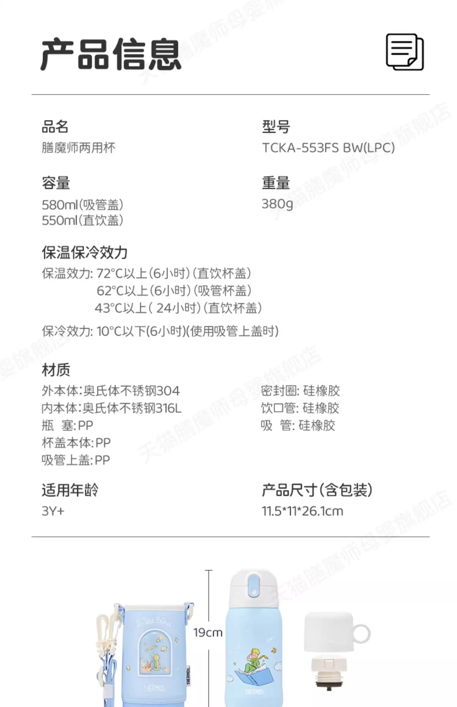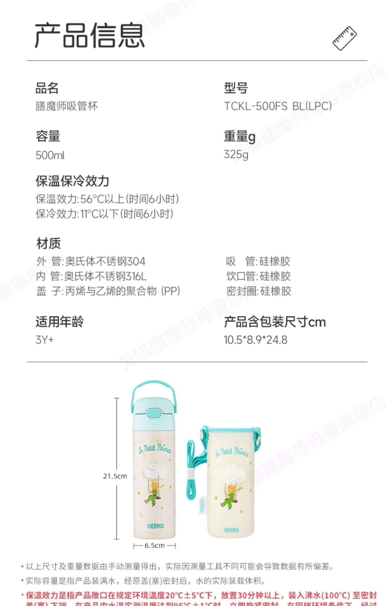膳魔师高真空不锈钢小王子系列保温保冷吸管杯500ml【不支持补差,非质量问题不退不换】S