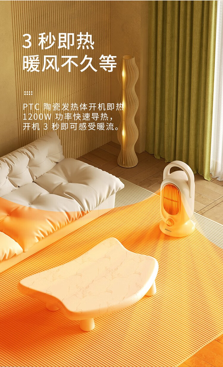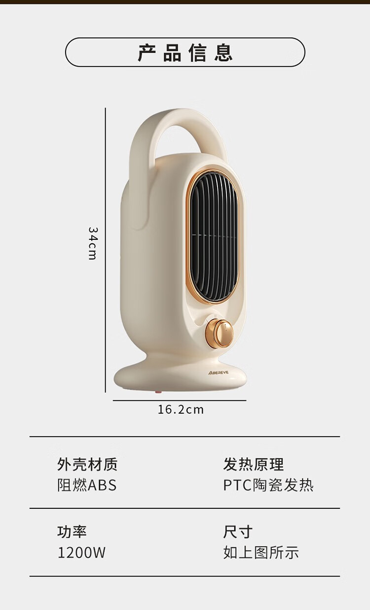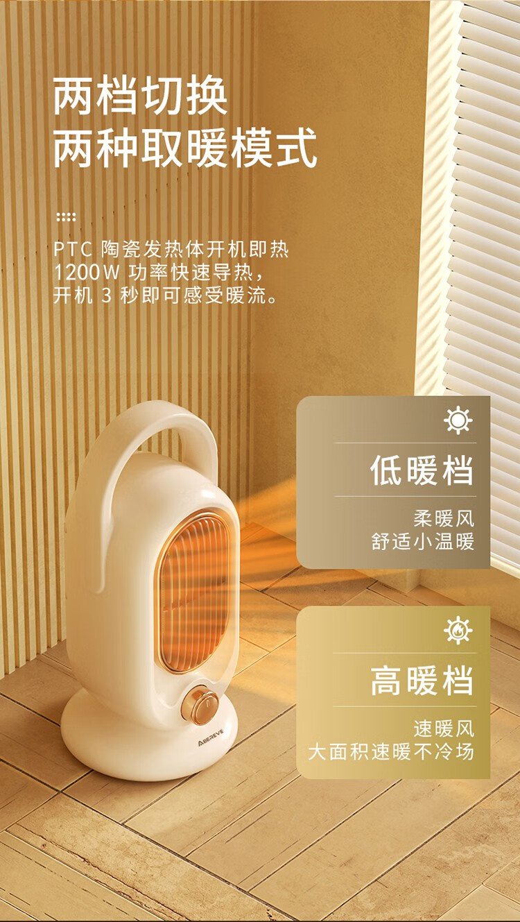 【多样屋专柜】艾贝丽桌面暖风机浅黄色台式