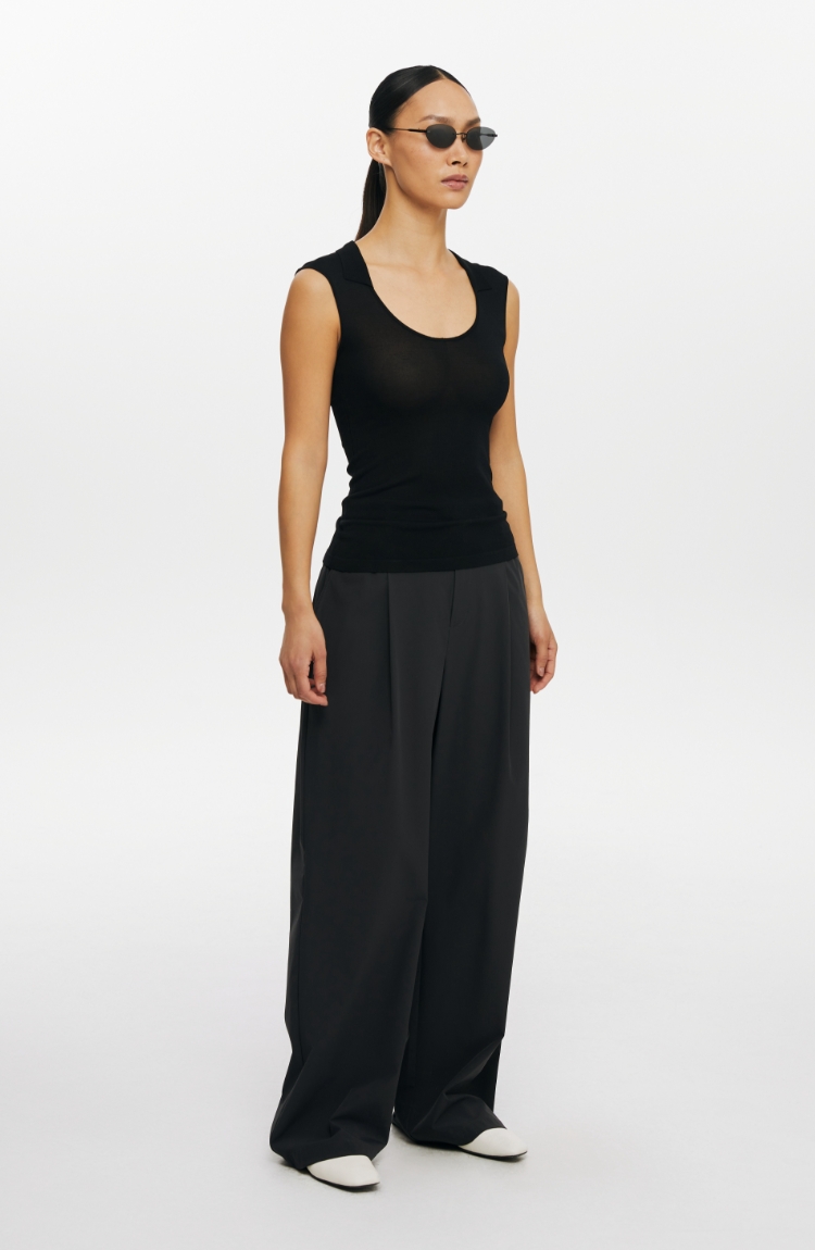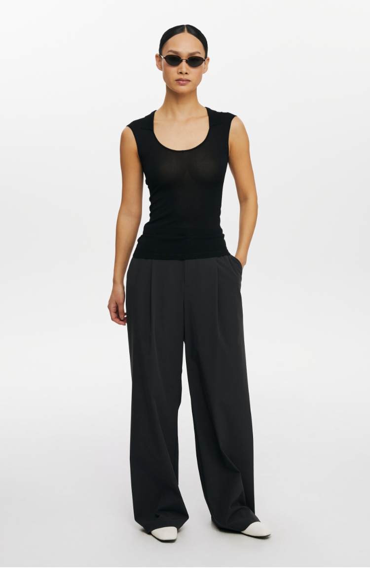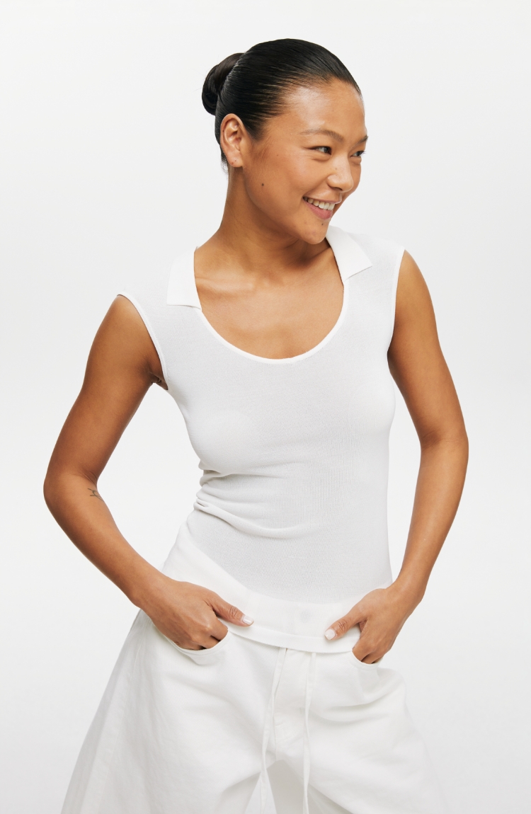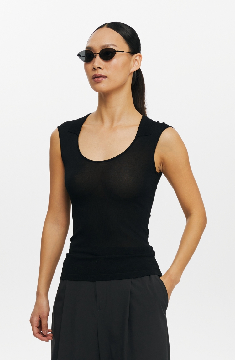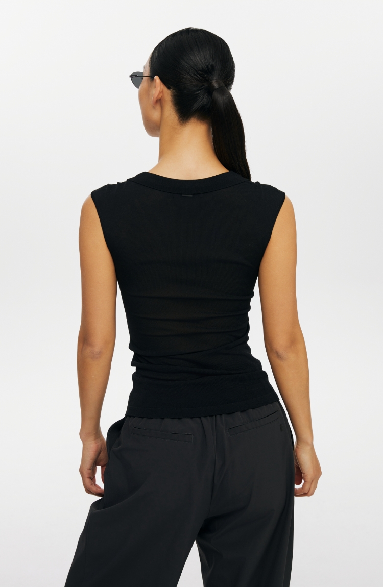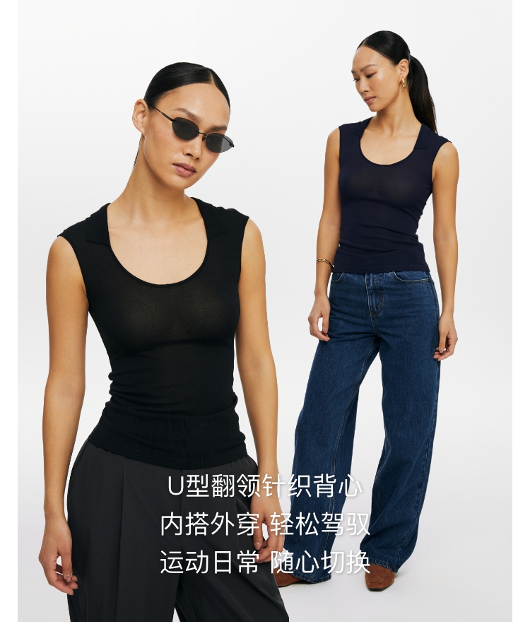 oneup弹力U型翻领针织背心